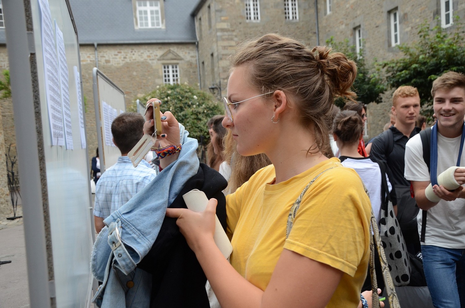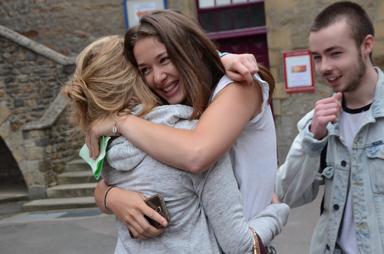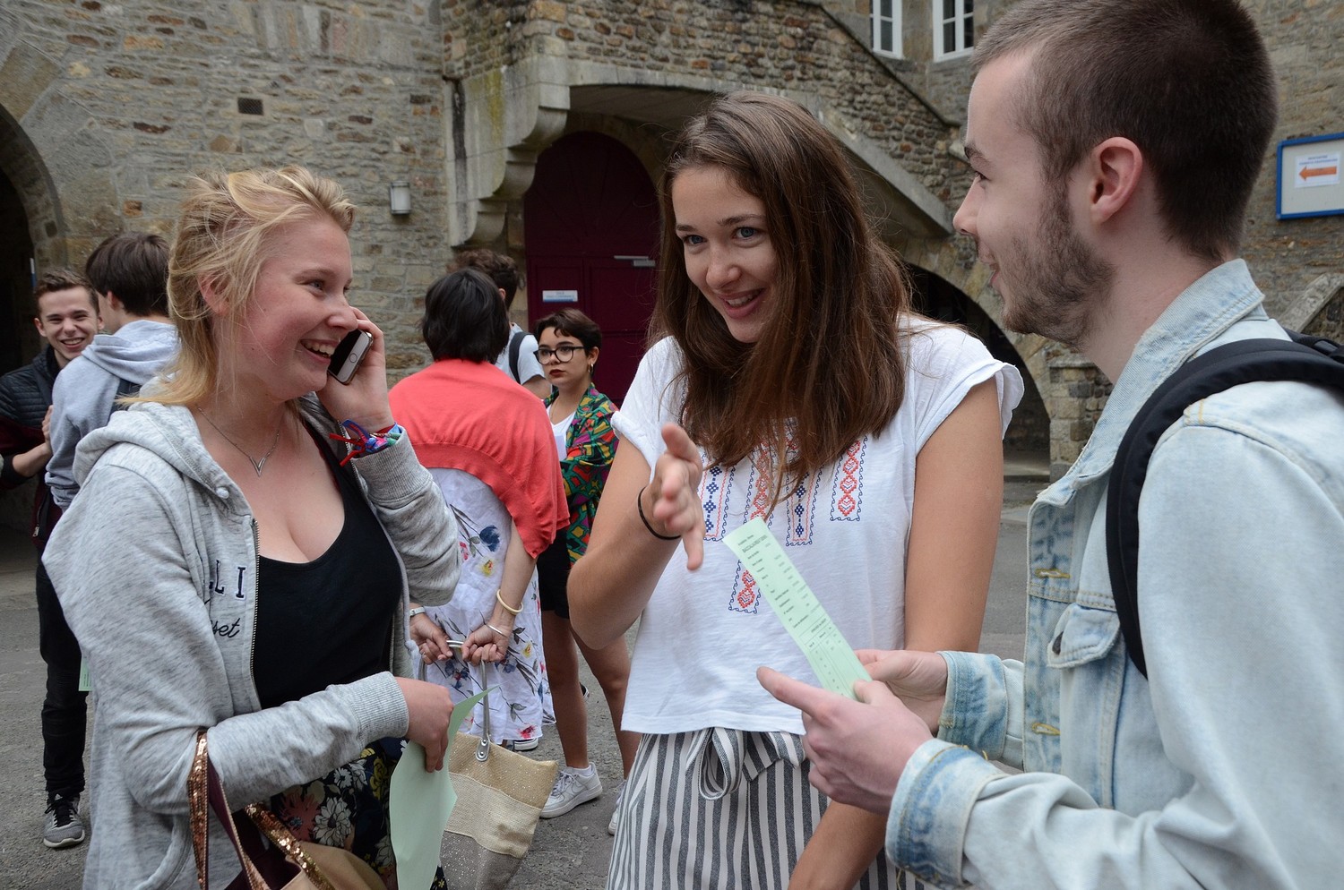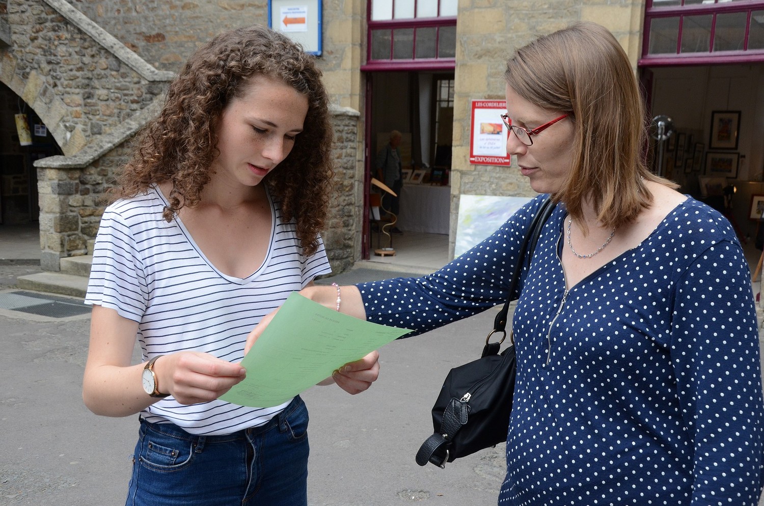 « Allô maman ? Maman, elle pleure au téléphone ! » C’est Emma, en section ES, qui annonce sa réussite au bac, mention bien. Il est un peu plus de 9 h, dans la cour intérieure sur le site des Cordeliers où viennent d’être affichés les résultats, ce vendredi 6 juillet. A un peu de distance, Léopold toise les listes, légèrement inquiet. Ce sera mention très bien. « L’an prochain je vais en PACES. » Le sésame est largement acquis. Loezig, observe un peu déçu ses notes : « J’ai 13,60. J’aurai aimé la mention bien. À cause de la physique, j’ai 12, je pensais 14 ou 15. » Ce vendredi soir, ce sera direct Bobital avec sa playlist de concerts affichés sur le téléphone portable. « Manquait que le bac ! » Avant il y aura le match de foot France-Uruguay pour le quart de finale de la coupe du monde.