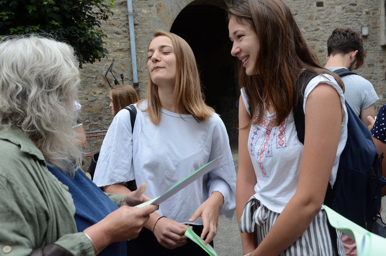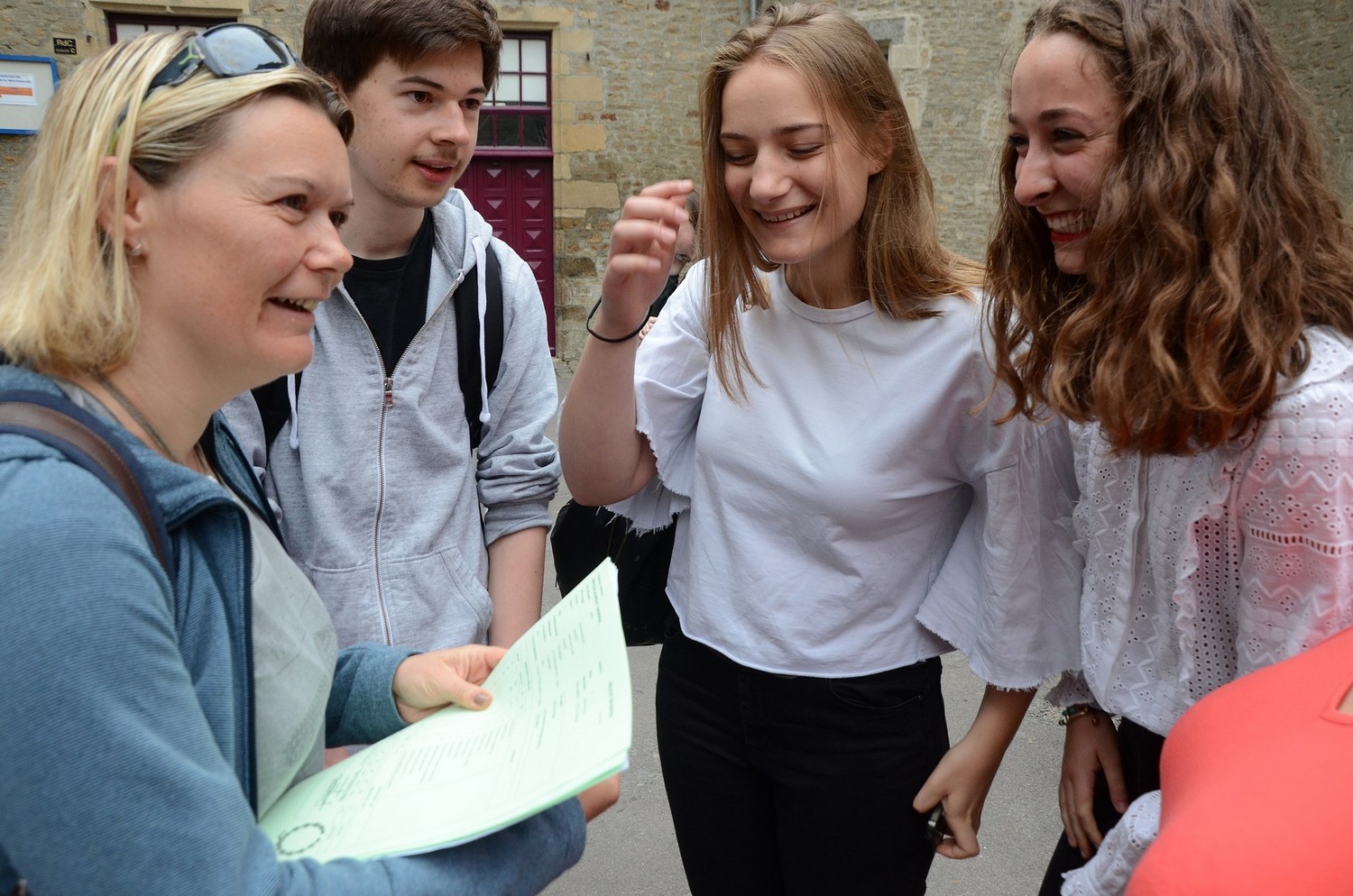 Toute la matinée, les commentaires sont allés bon train devant les relevés de notes distribués aux élèves par les enseignants. On compare. On s’esclaffe. On s’embrasse. On appelle les parents ou les grands-parents. Un grand moment de réjouissance collective pour les 172 candidats sur 199 reçus. « Ça représente près de 87 % » commente le directeur Philippe Gerbel. « C’est une année plus normale que les précédentes où les scores étaient très élevés. Un seul élève est collé, le reste va à l’oral avec des rattrapages à quelques points. Un élément intéressant : il y a 68 % de mentions sur les reçus. »