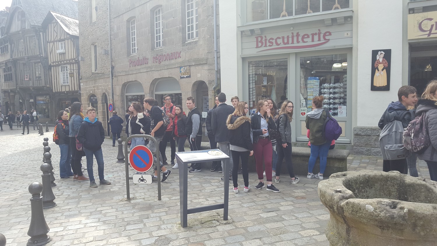 Vendredi 5 mai, les 3èmes du site de Dominique Savio ont accueilli les élèves de 3ème du lycée Xavier Grall de Loudéac. En effet, dans le cadre d’un EPI, ils ont organisé l’accueil de cette journée. Tout d’abord, ils se sont entraînés à se présenter en anglais. De plus, ils ont élaboré en histoire-géographie un diaporama pour présenter la ville de Dinan d’un point de vue historique, géographique, culturel… Pour faire découvrir le cœur historique de la ville de façon ludique, les élèves ont élaboré un jeu de pistes. Au cours de la journée, ils ont également fait découvrir à leurs camarades le patrimoine gastronomique de la ville par la dégustation de produits locaux tels que les incontournables Gavottes, les Craquelins de St-Malo et avaient confectionné pour l’occasion des amuse-bouches et des crêpes. Le 16 juin, c’est aux élèves du lycée Xavier Grall de nous recevoir à leur tour pour nous faire découvrir la ville de Loudéac.