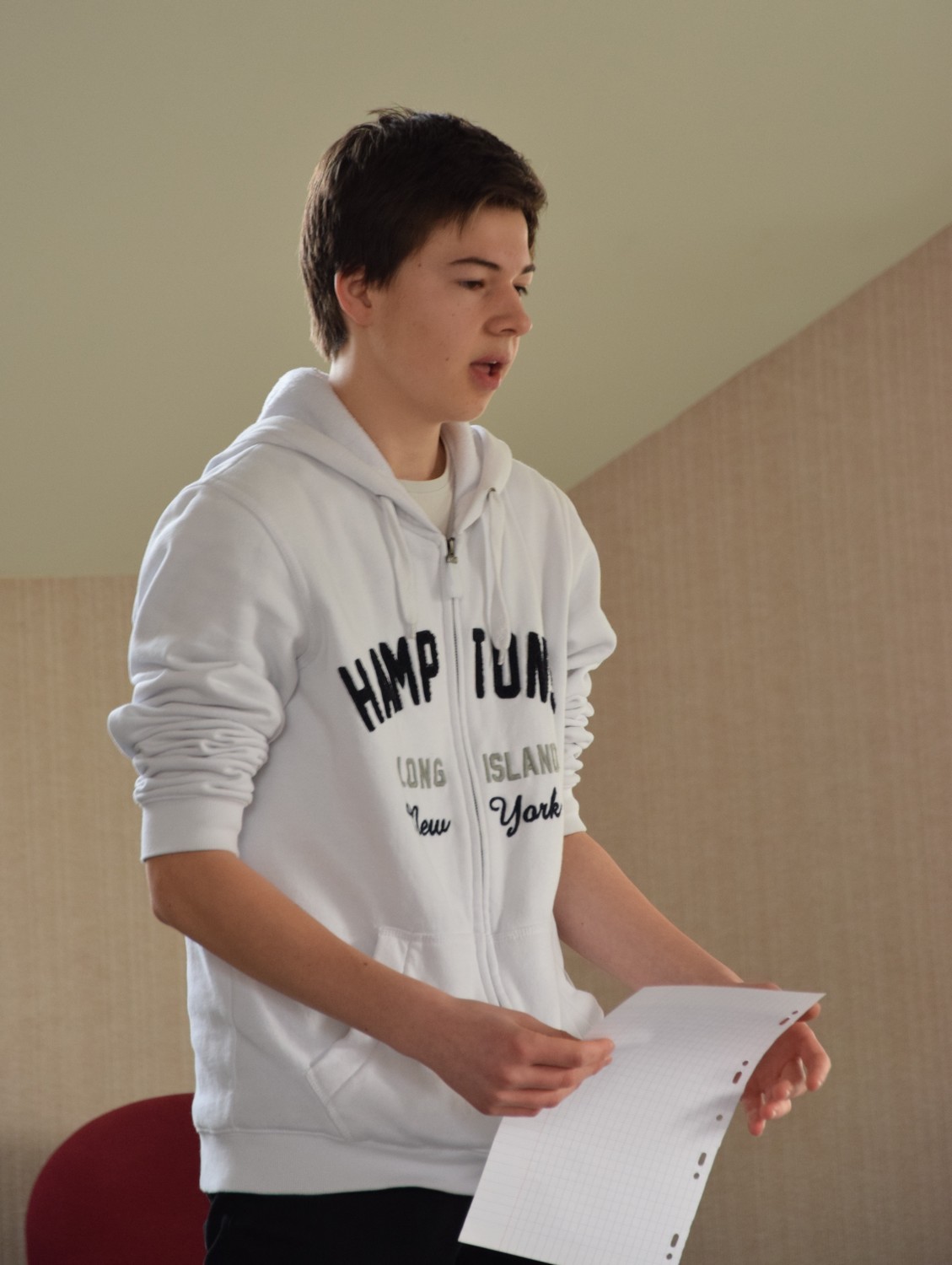 A partir d’une citation de Marcel Proust : « Il est peu de réussites faciles et d’échecs définitifs », chacun d’entre eux avait dix minutes pour convaincre un jury de six personnes. Ils ont fait preuve d’enthousiasme, d’énergie, de talent et de volonté. Ce fut un très bon moment pour tous.