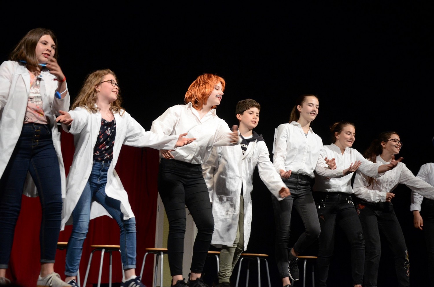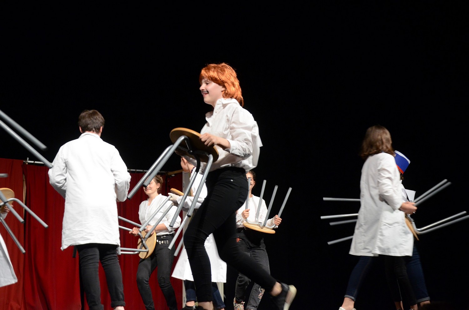 Le mardi soir 25 avril, c’était le tour des autres niveaux du site des Cordeliers de la cinquième au lycée. Le spectacle qui a repris le titre de « Coupe de la Joie », traditionnellement dédié au théâtre, a donné davantage dans la variété cette année, avec du chant et de la danse. Des prix ont été attribués aux meilleurs numéros des élèves. Les enseignants sont aussi montés sur scène au sein du groupe « La compagnie de l’Estrade » en interprétant « On purge bébé » de Georges Feydeau.