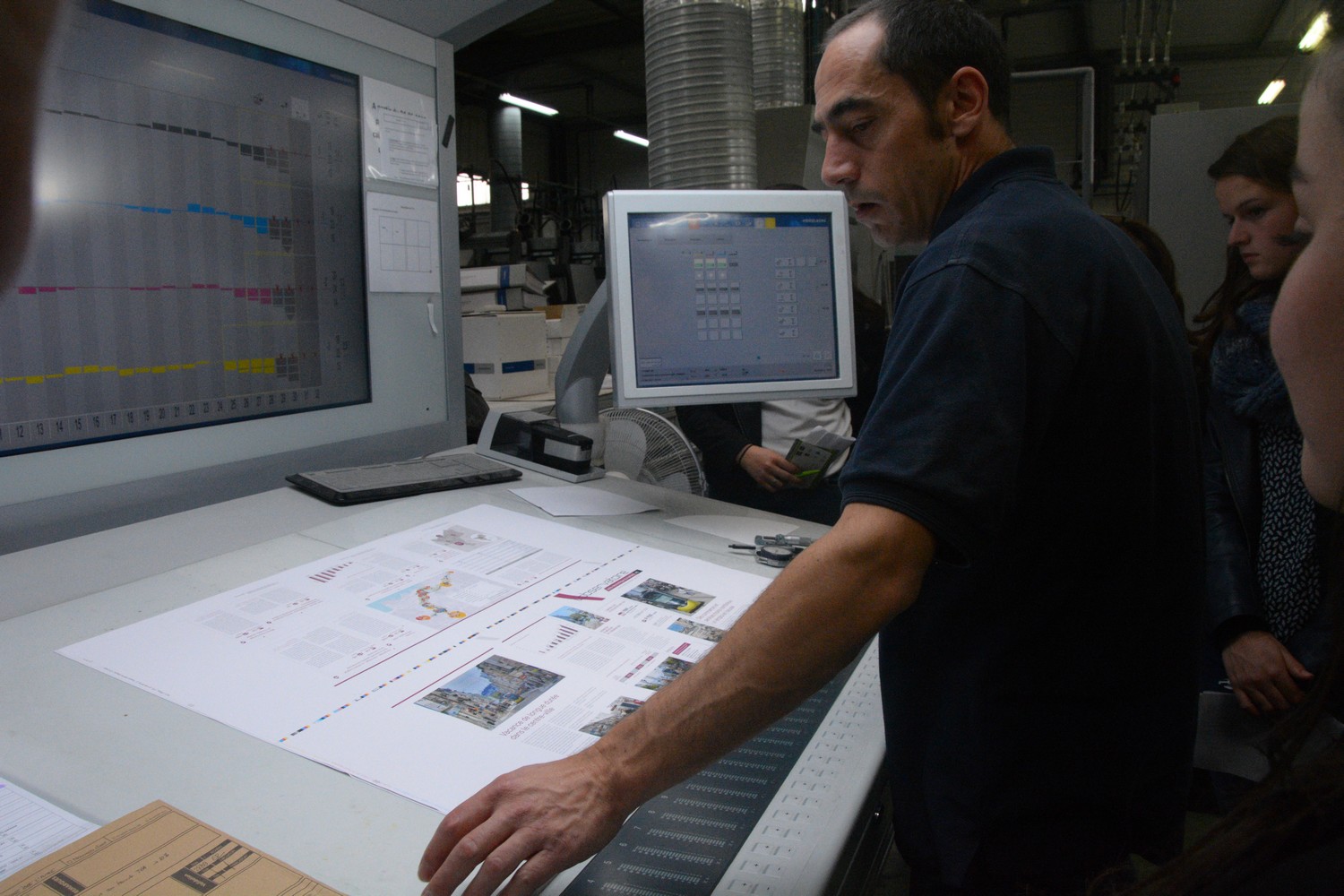 Après une pause repas à Landerneau, ils ont visité l’imprimerie Cloitre. Durant cette visite, ils ont découvert l’activité de la première imprimerie de Bretagne ainsi que toutes les étapes de la chaine graphique. Cette découverte professionnelle leur a permis de mieux cerner certains aspects de leur formation.
