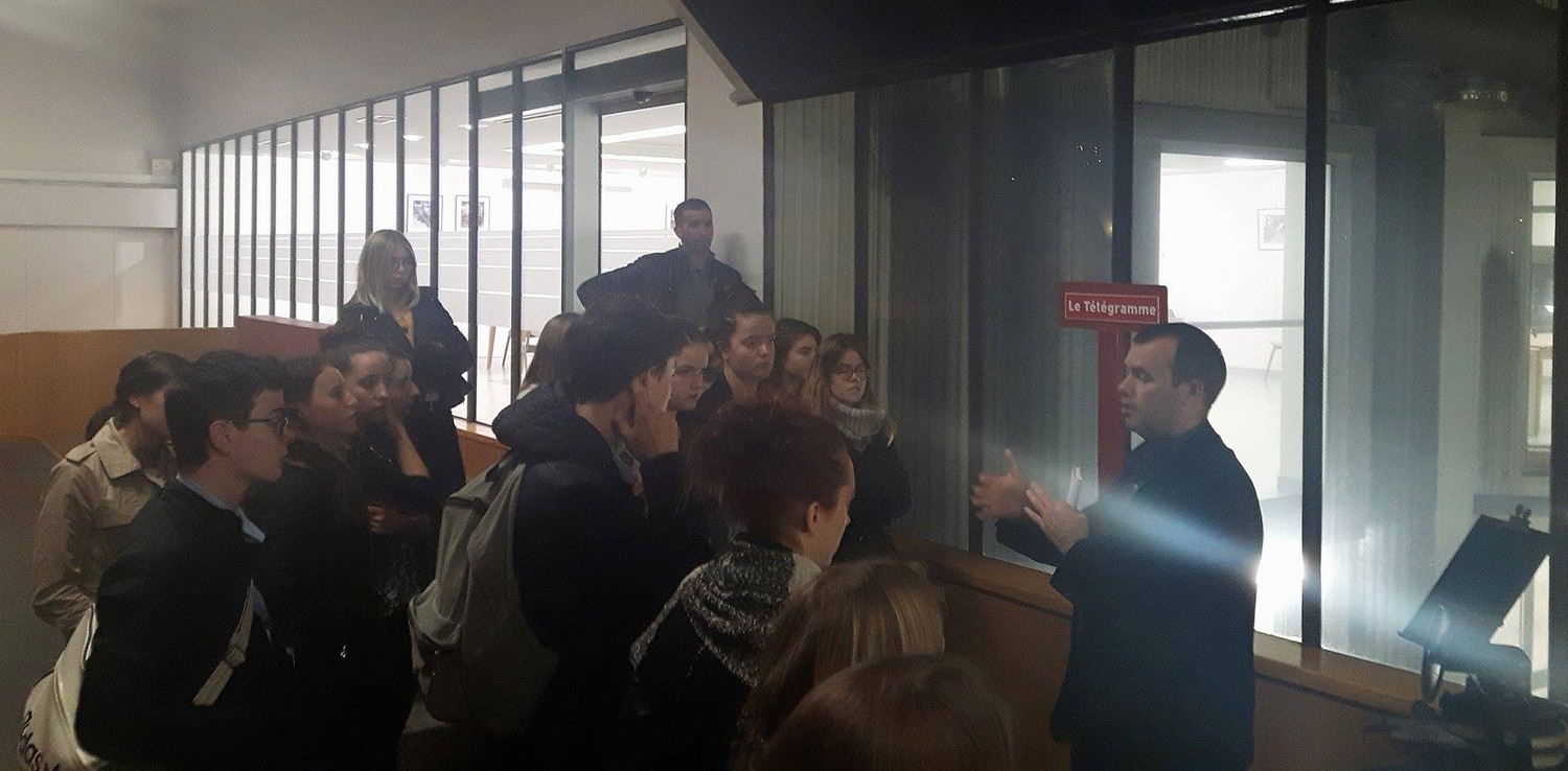 En fin d’après-midi, le périple s’est poursuivi jusqu’à Brest, pour visiter les locaux de Tébéo, la chaine télévisée du groupe Télégramme. Ils ont ainsi visité les différents plateaux de la chaîne mais aussi assisté à deux émissions.