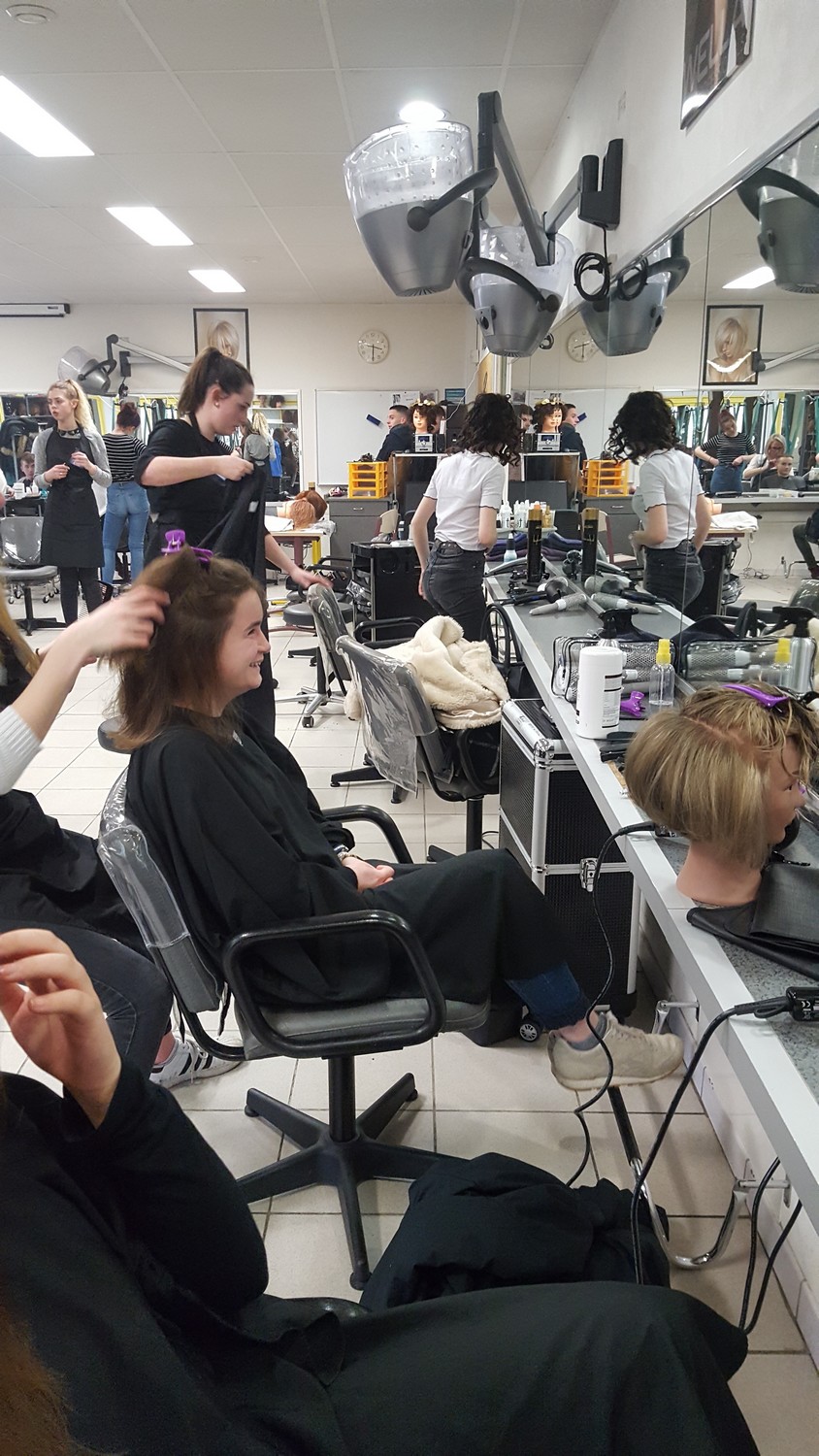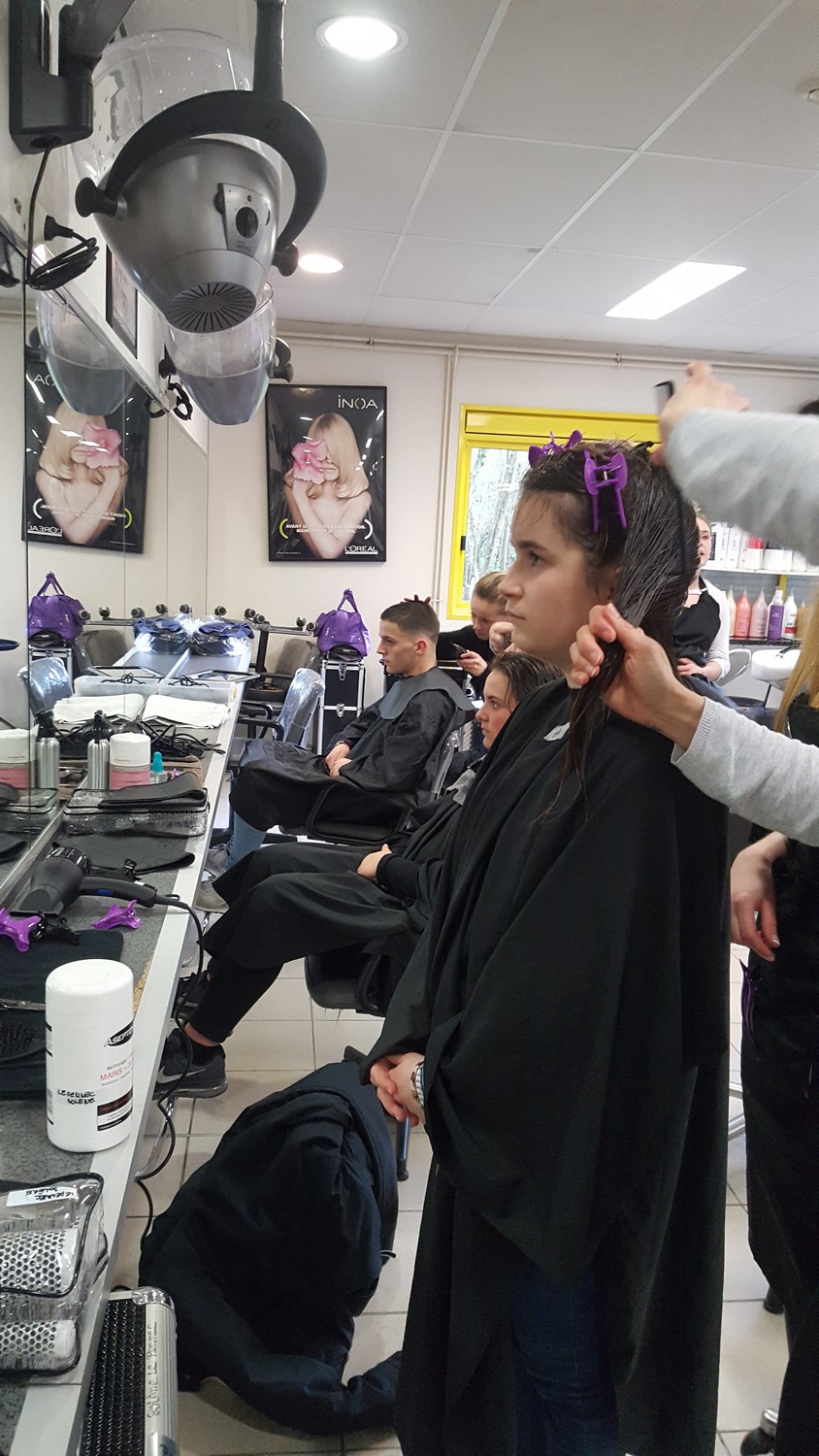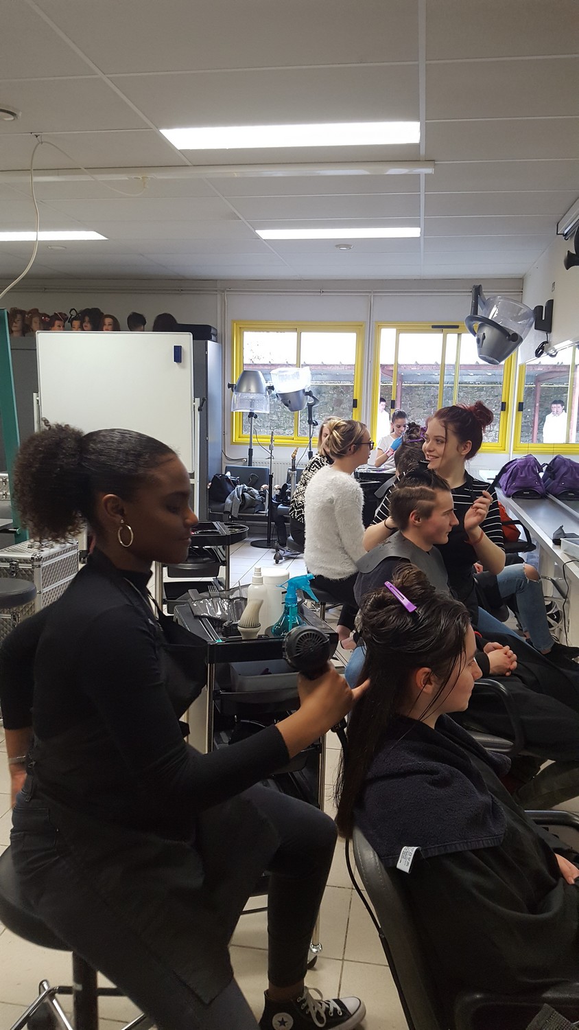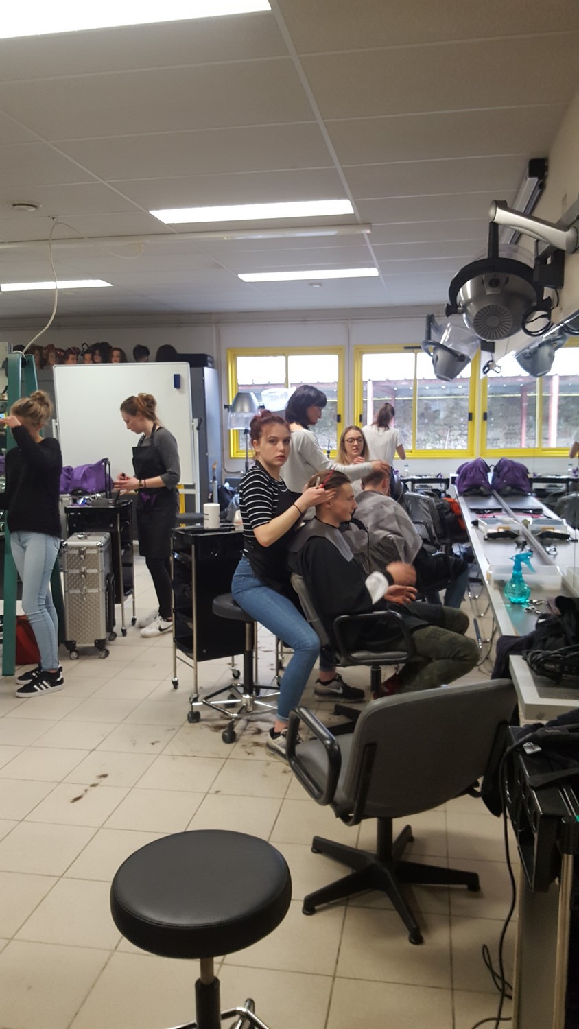 - Un déplacement au lycée Montbareil de Guingamp où les élèves ont été pris en charge par des lycéens de 2ème année CAP coiffure et Bac Pro Esthétique-Cosmétique-Parfumerie