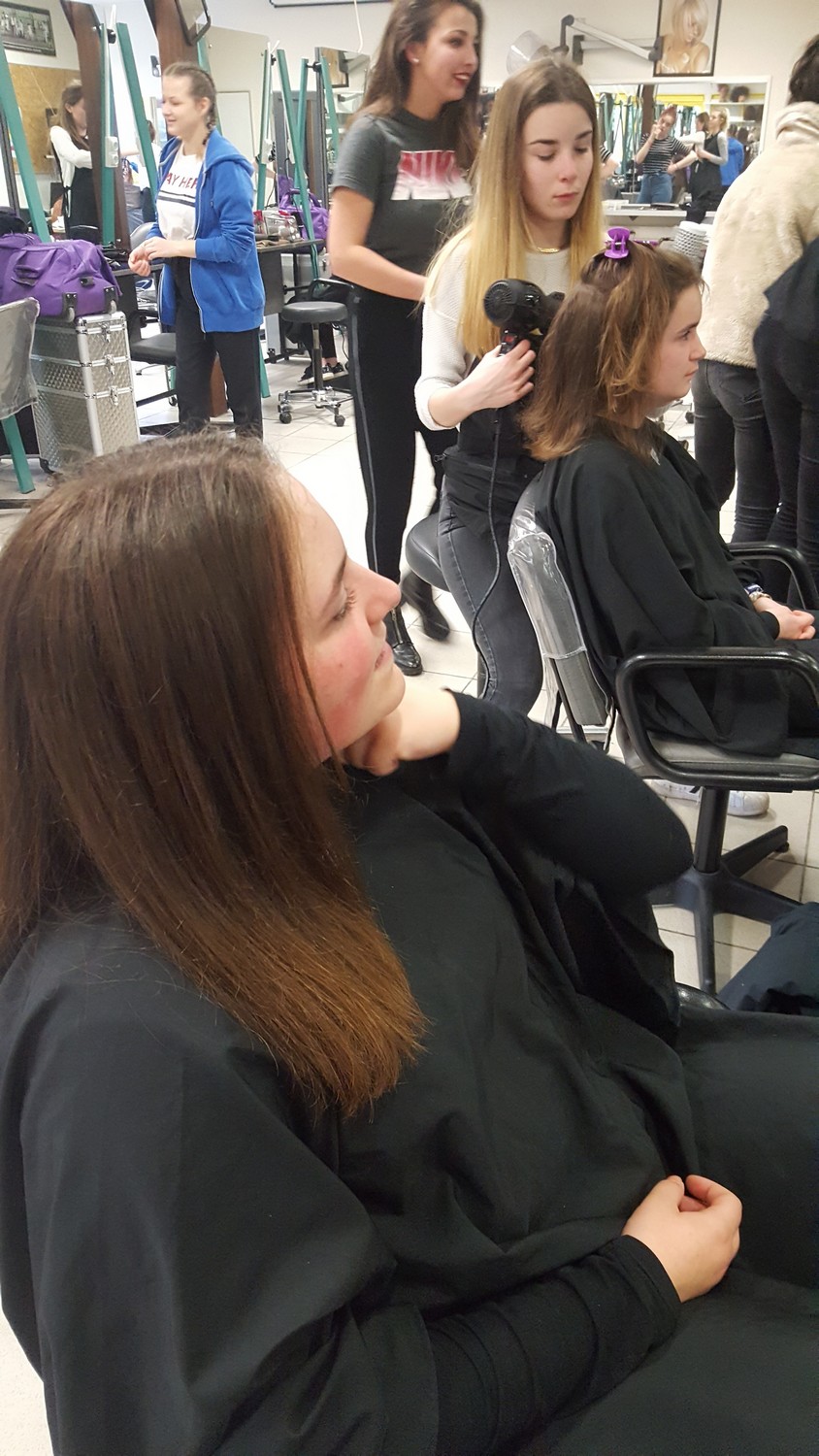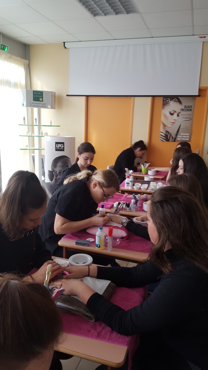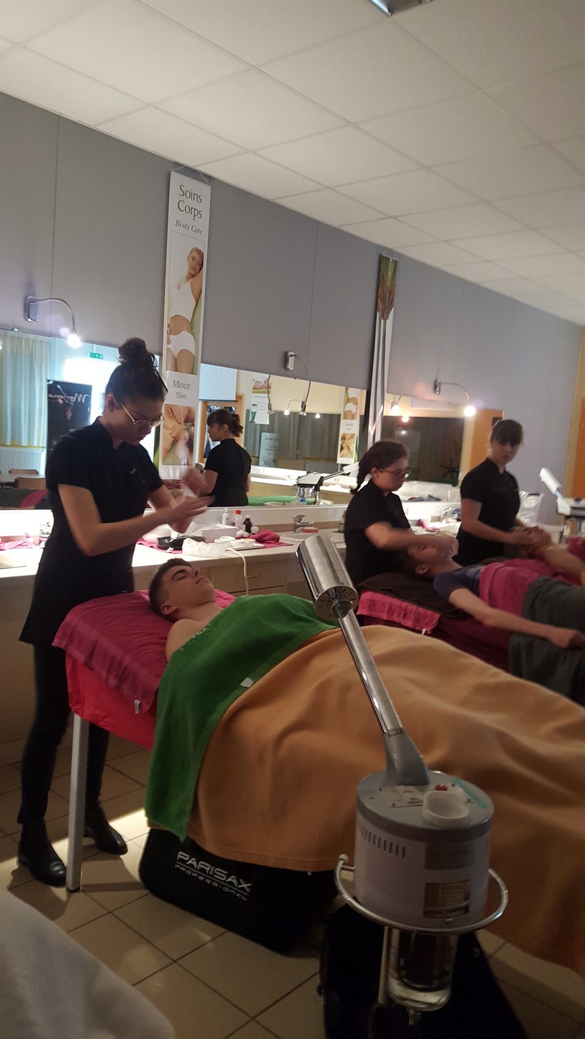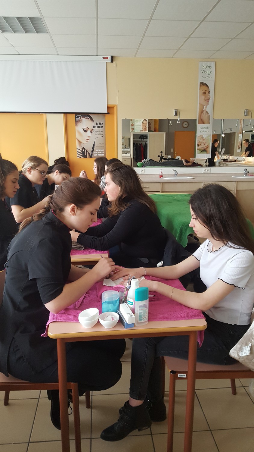 - Un déplacement au lycée Montbareil de Guingamp où les élèves ont été pris en charge par des lycéens de 2ème année CAP coiffure et Bac Pro Esthétique-Cosmétique-Parfumerie