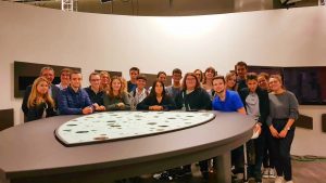 Suite à cela, nos étudiants ont poursuivi avec la visite de la chaîne de télévision Tébéo, appartenant au Télégramme. Cette dernière, créée il y a 8 ans, est basée à Brest ; elle émet dans le Finistère et les Côtes d’Armor. La chaîne est aujourd’hui regardée par 66 000 téléspectateurs par jour, sur un programme d’environ 26 minutes, et emploie 15 personnes.
