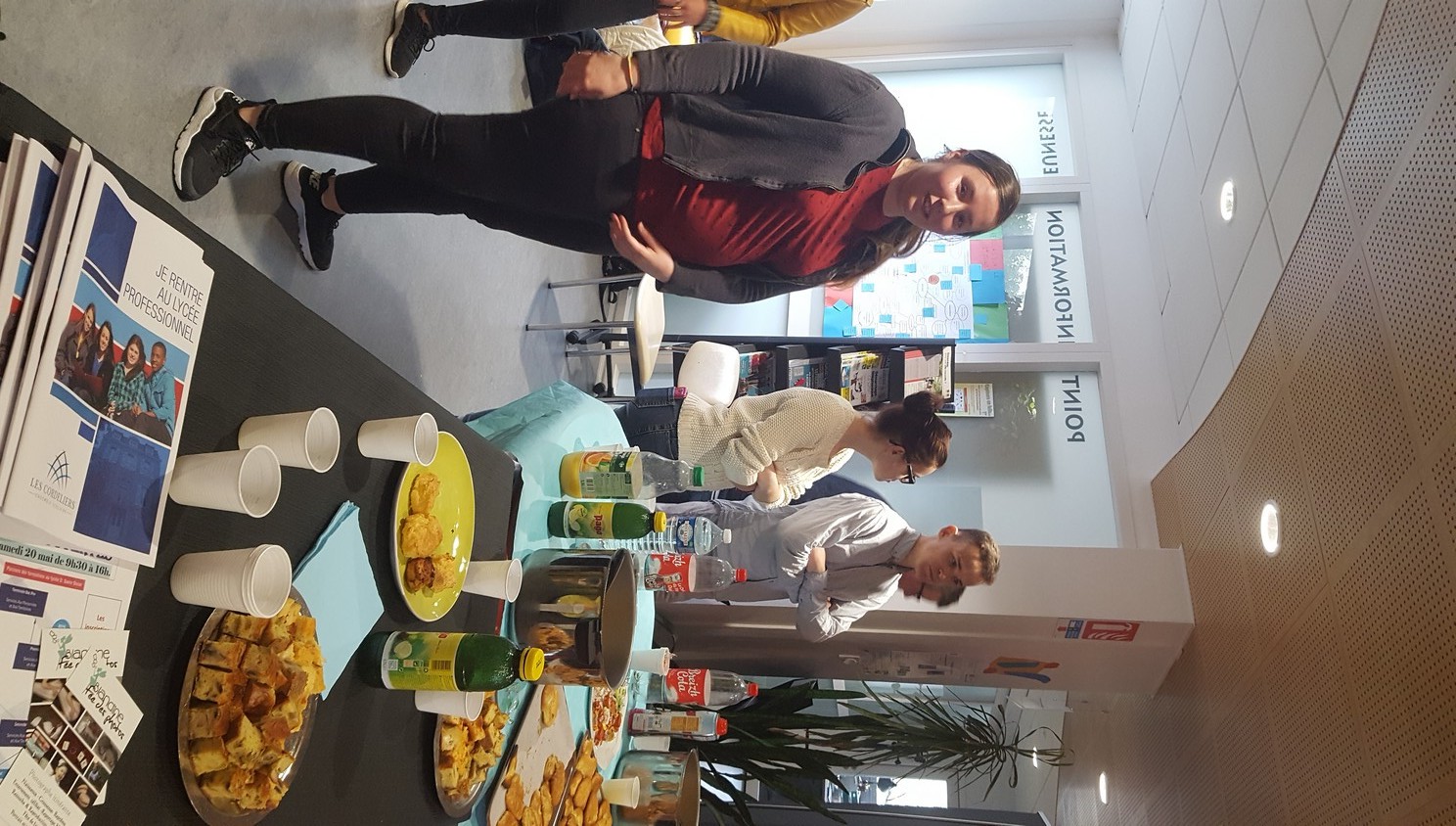 Un pot préparé par les élèves a ensuite été offert aux personnes présentes : M. Lechien, maire de Dinan,, Mme Balay Mizrahi, vice-présidente au conseil départemental en charge de l’éducation, Mme Desprès, élue à Dinan Agglomération en charge de la culture, Mme Loisel, directrice adjointe de l’atelier du 5 bis et quelques membres du personnel, M. Gerbel, directeur de l’ensemble scolaire « les Cordeliers », M. Ragot, directeur adjoint, Mme Meslé directrice adjointe en charge du Lycée Dominique Savio, les professeurs et personnel du lycée, les parents d’élèves.