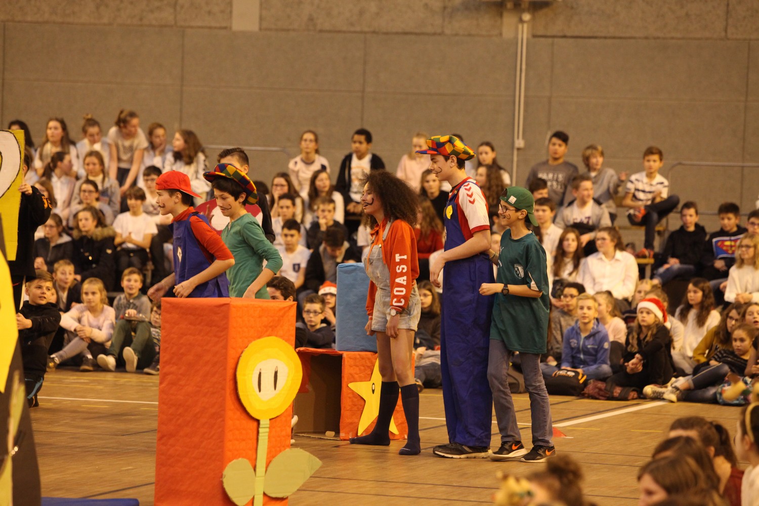 Vendredi 22 décembre, 14 heures ! Plus de 1 500 personnes sont réunies dans la salle Némée (Salle Omnisports) pour l’édition de la Fête de Noël 2017 de l’ensemble scolaire. Pendant 1h30, élèves, enseignants et personnels vont évoluer sur le parquet et ainsi faire revivre des personnages et héros imaginaires, autour du thème choisi cette année : de Super Mario aux pirates des Caraïbes, en passant par le monde Walt Disney, des héros d’antan à ceux d’aujourd’hui, nos élèves n’ont manqué ni d’inspiration, ni d’imagination !