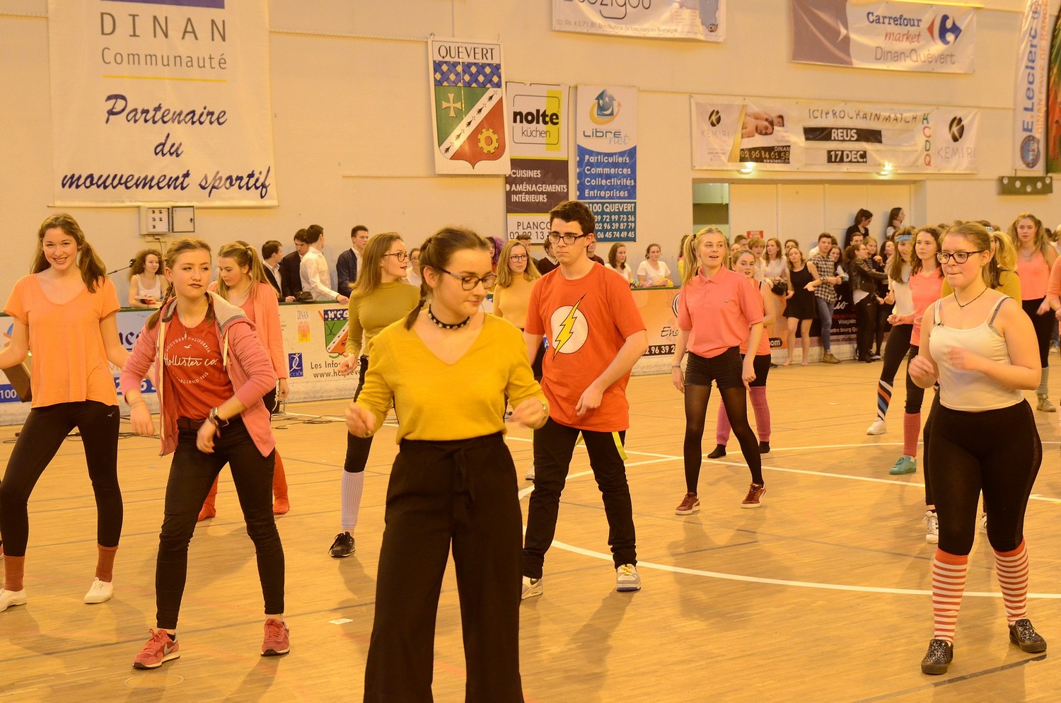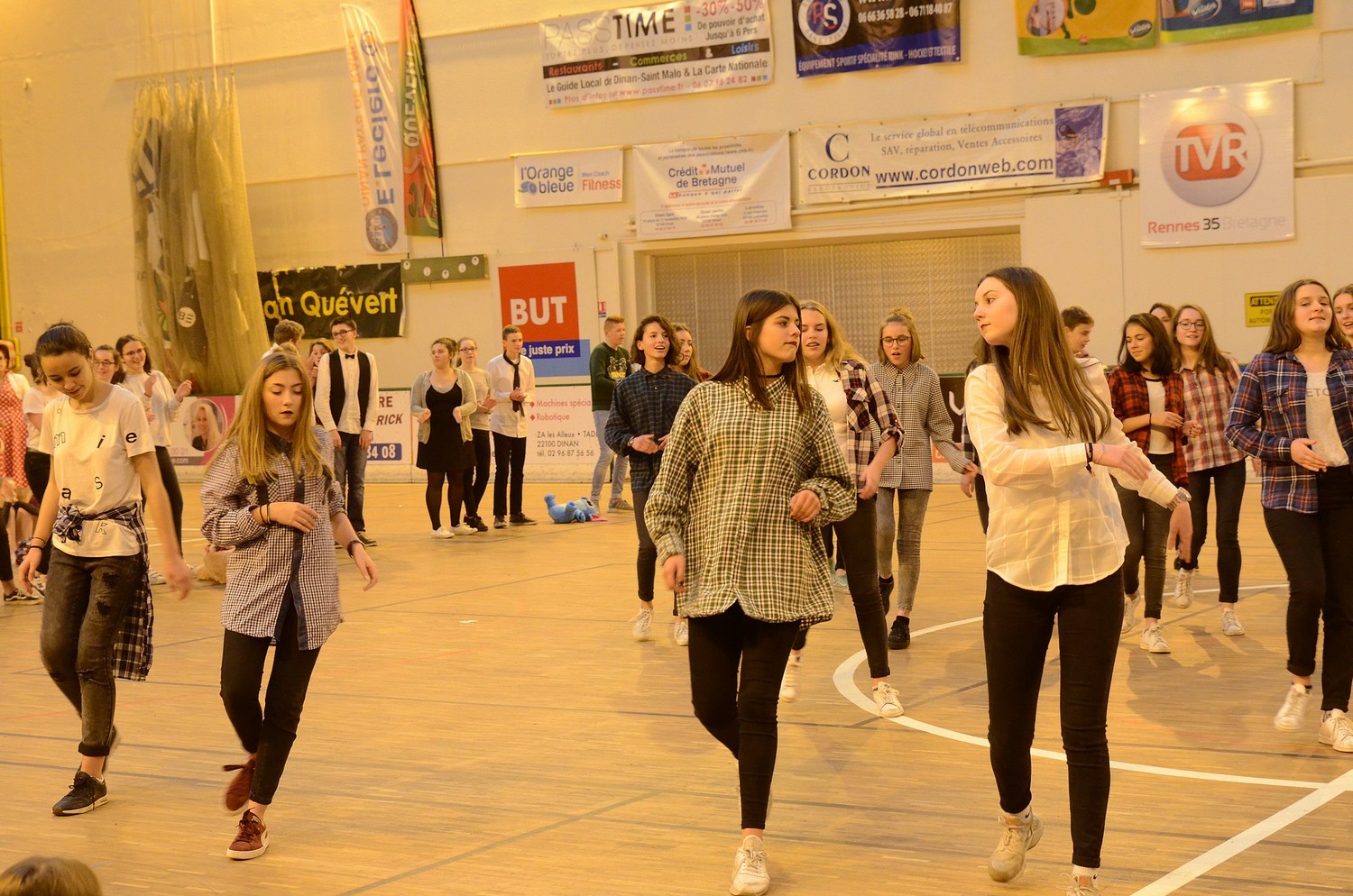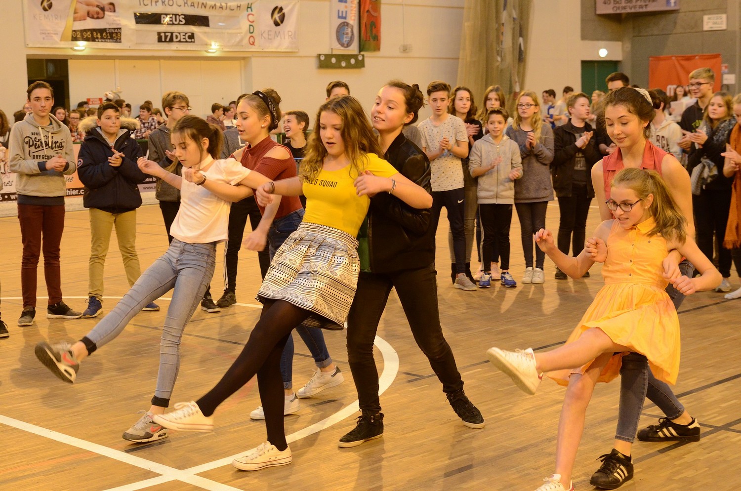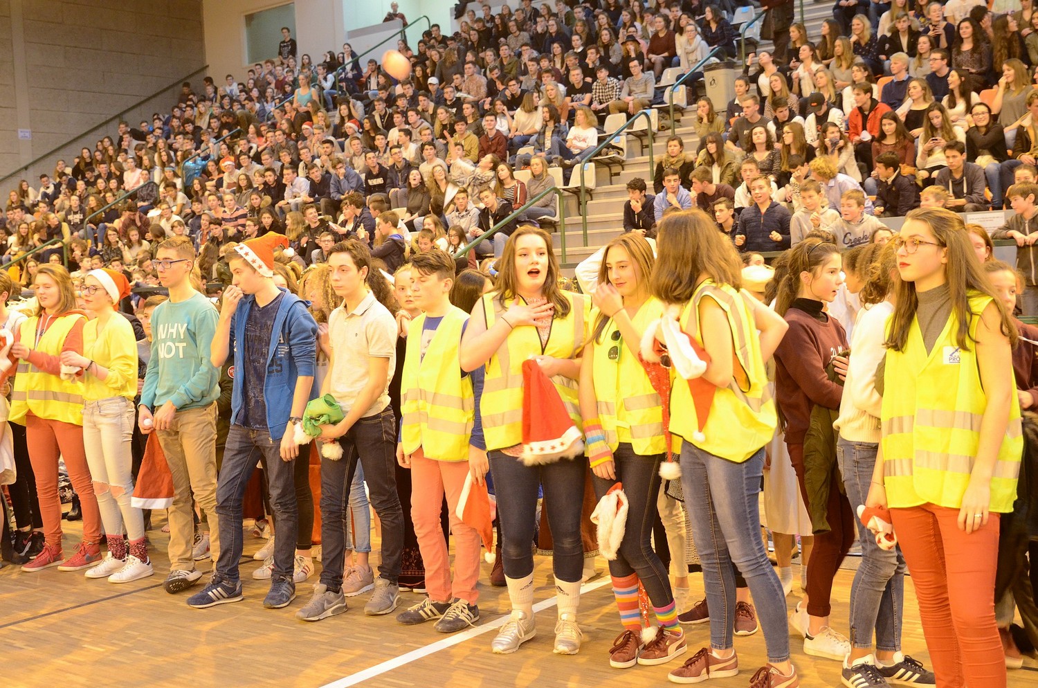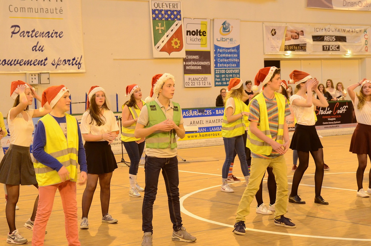 Mille cinq cents élèves se sont réunis dans la salle omnisports de Dinan le vendredi 16 décembre 2016 après-midi juste avant le départ en vacances. C’est tout ce que peut contenir la salle et c’est l’effectif réuni des lycéens et collégiens de l’ensemble scolaire « Les Cordeliers ». Tous ont vibré autour des animations prévues pour la fête de Noël : une tradition pour l’établissement scolaire. Des numéros de danse essentiellement ont été préparés par niveau pendant quelques semaines autour du thème de la « remontée du temps ». Rien de nostalgique dans les interprétations, mais bien une réactualisation des morceaux cultes du répertoire. Les enseignants et personnels se sont aussi mis en scène. Et c’était l’occasion de réaliser un « mannequin challenge ». Soudain, la musique se fige et tout le monde dans la salle en fait autant. Impressionnant. En matinée, les élèves étaient invités à participer à la chapelle à une célébration religieuse autour du mystère de l’attente de Noël.