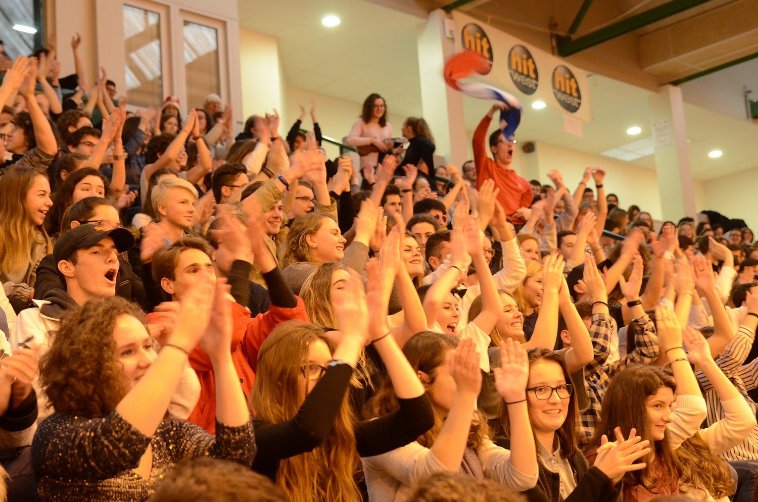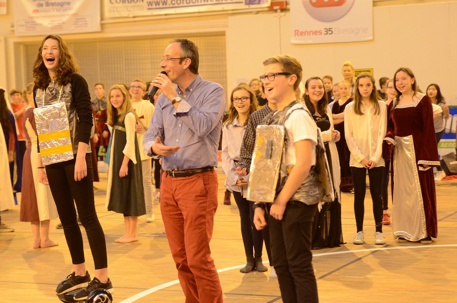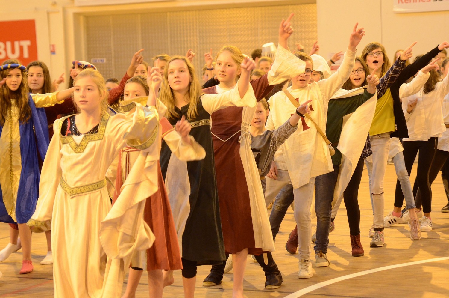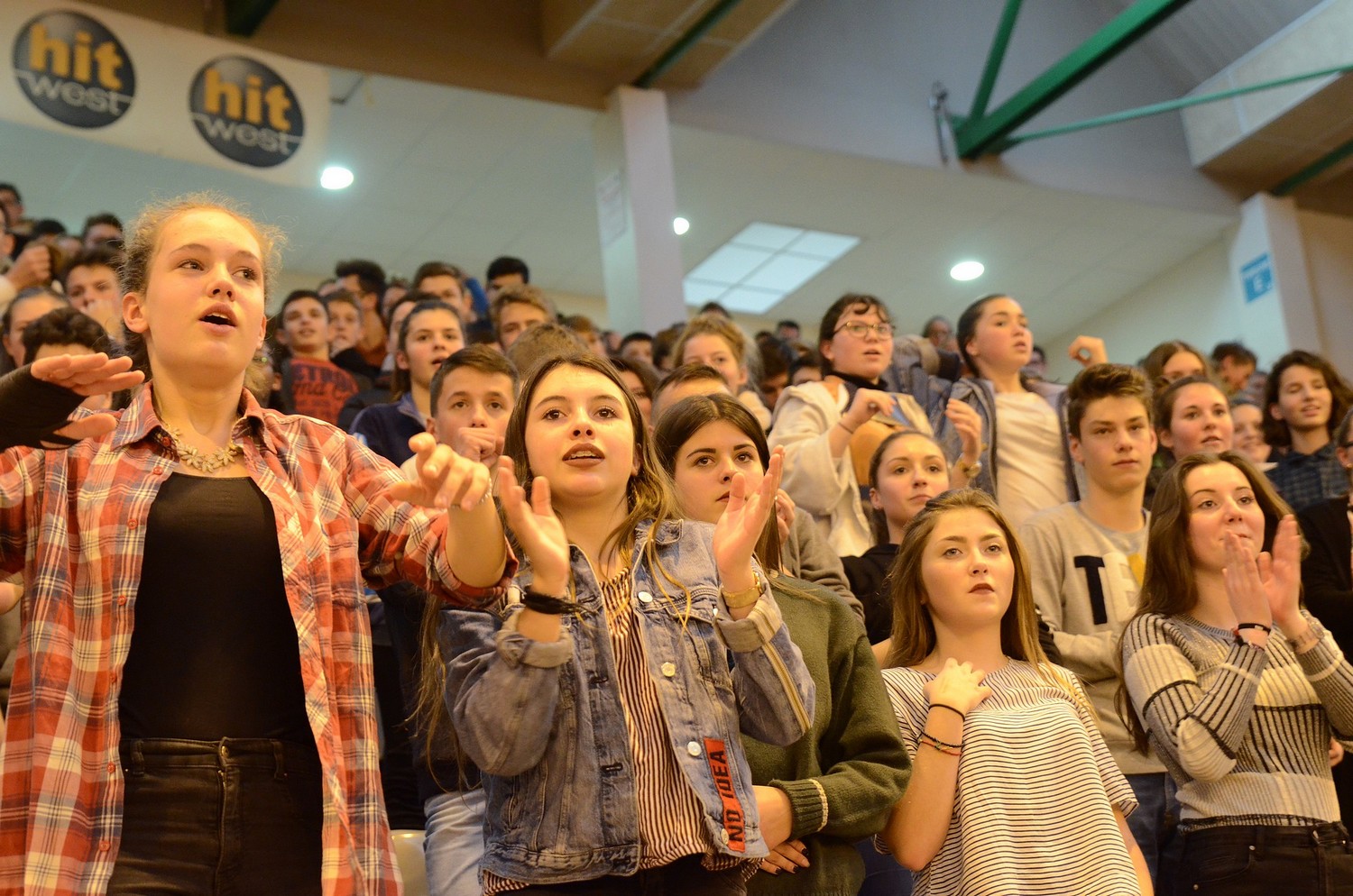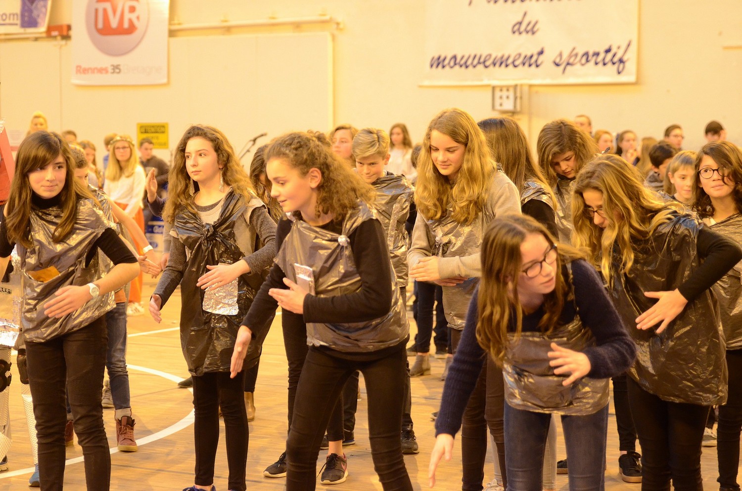 Mille cinq cents élèves se sont réunis dans la salle omnisports de Dinan le vendredi 16 décembre 2016 après-midi juste avant le départ en vacances. C’est tout ce que peut contenir la salle et c’est l’effectif réuni des lycéens et collégiens de l’ensemble scolaire « Les Cordeliers ». Tous ont vibré autour des animations prévues pour la fête de Noël : une tradition pour l’établissement scolaire. Des numéros de danse essentiellement ont été préparés par niveau pendant quelques semaines autour du thème de la « remontée du temps ». Rien de nostalgique dans les interprétations, mais bien une réactualisation des morceaux cultes du répertoire. Les enseignants et personnels se sont aussi mis en scène. Et c’était l’occasion de réaliser un « mannequin challenge ». Soudain, la musique se fige et tout le monde dans la salle en fait autant. Impressionnant. En matinée, les élèves étaient invités à participer à la chapelle à une célébration religieuse autour du mystère de l’attente de Noël.