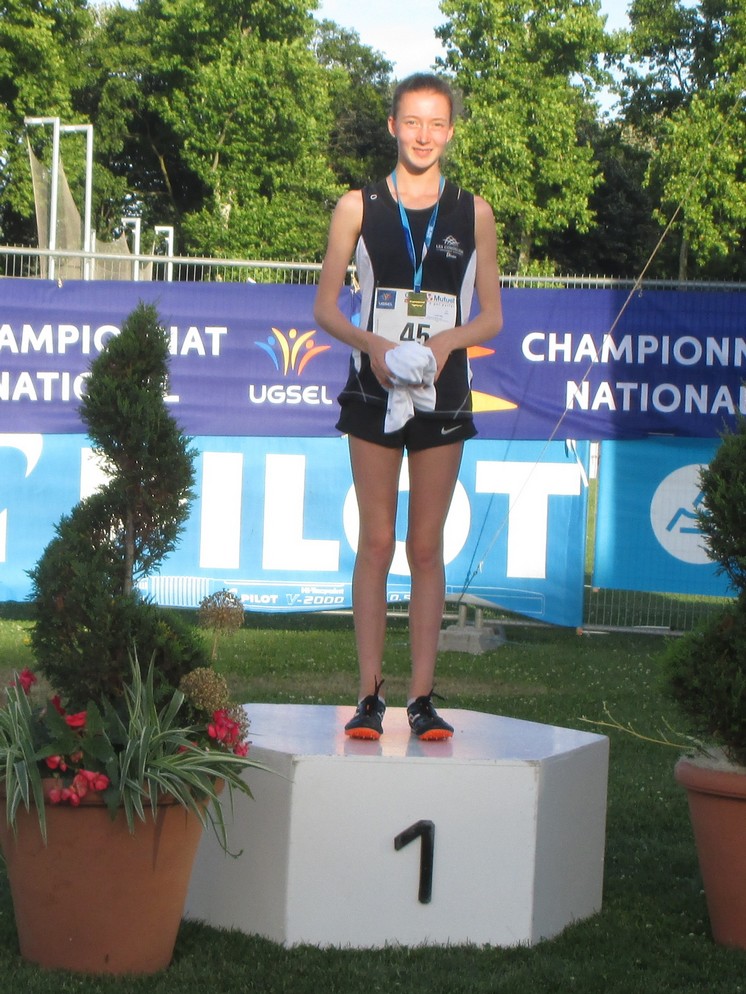 Après deux titres cette année : Championne Départementale et Championne Régionale de Cross UGSEL (pas de national dans cette catégorie), Inès devient donc CHAMPIONNE DE FRANCE UGSEL 2018 au 1000m.