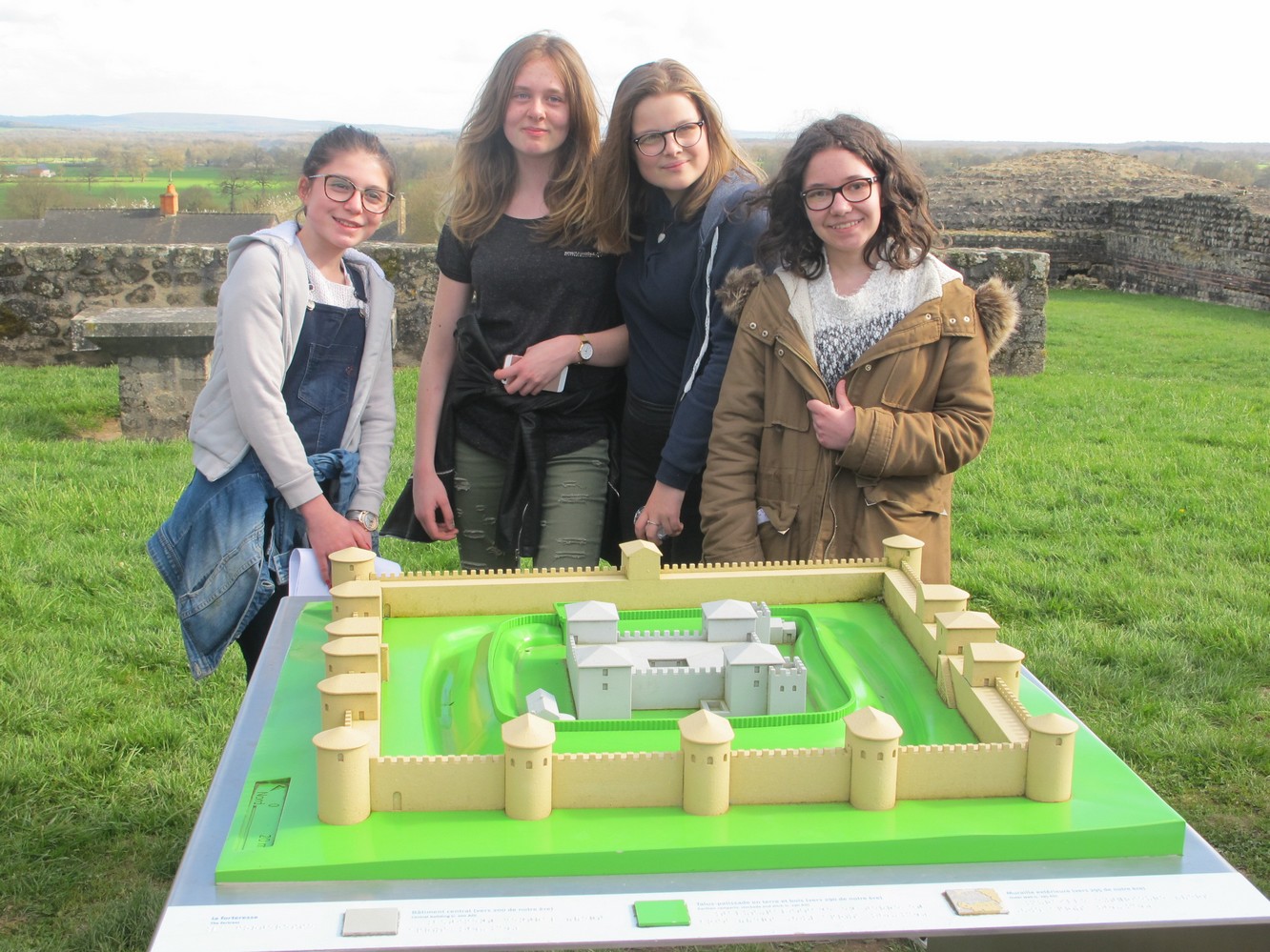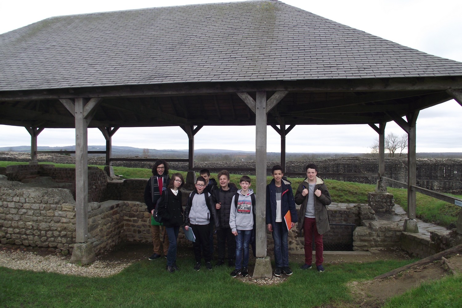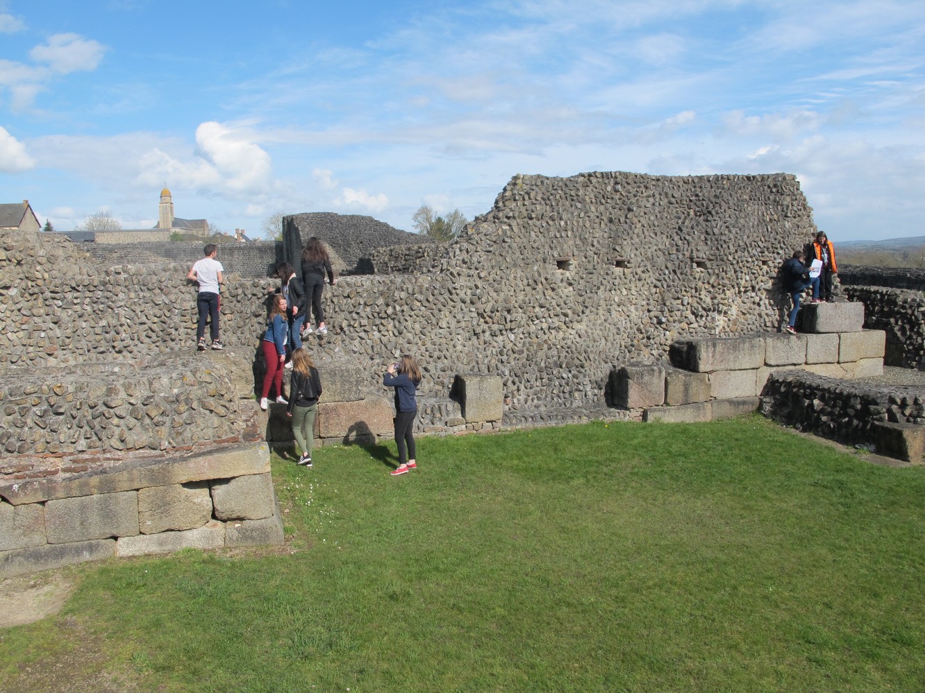 Les mardis 14 et 21 mars 2017, les élèves de 4ème de l'Ensemble scolaire se sont rendus sur le site archéologique de Jublains en Mayenne pour découvrir la ville gallo-romaine de Noviodunum. Lors de ce voyage dans le temps, ils en ont appris davantage sur le mode de vie des habitants grâce à une visite guidée des thermes, du temple, du forum et du théâtre. Ils ont également pu explorer à loisir le musée archéologique et la forteresse gallo-romaine. Les latinistes avaient préparé une petite intervention pour expliquer à leurs camarades les spécificités de la vie sociale de l'époque et les particularités de la forteresse de Jublains. L'EPI Langues et Cultures de l'Antiquité a ainsi pris tout son sens pour les élèves, ils ont pu en effet exploiter leurs connaissances culturelles sur le terrain. Ces journées ensoleillées furent sans conteste un enrichissement pour tous.