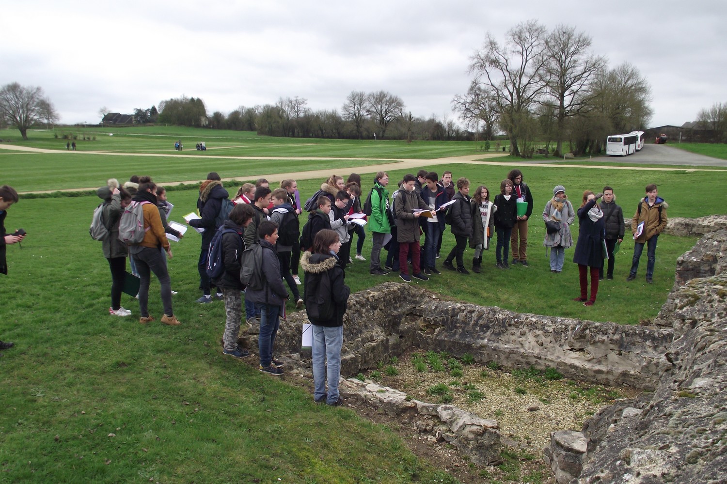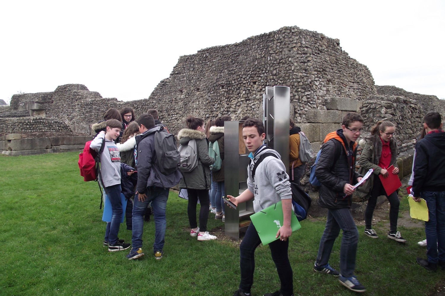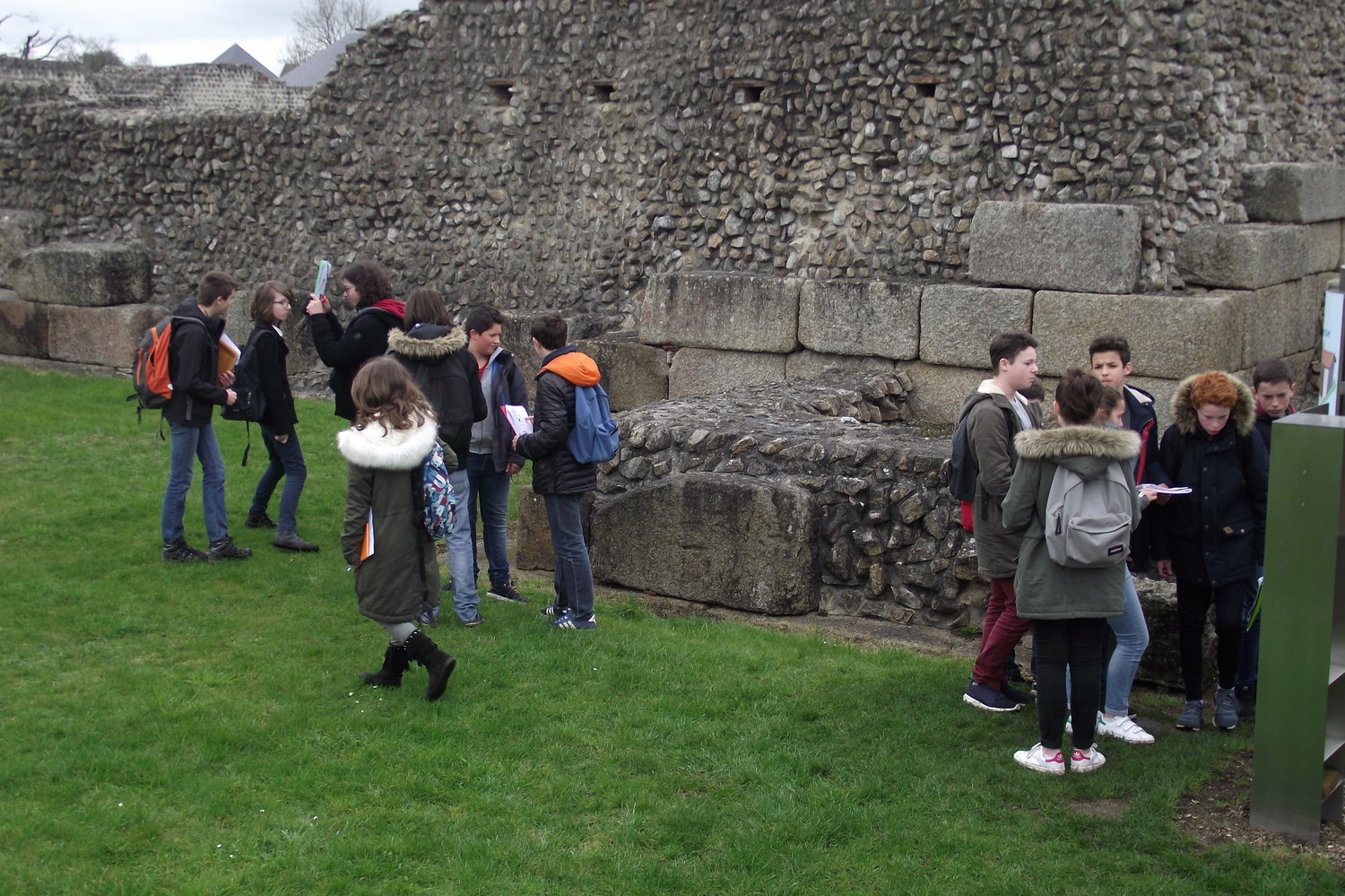 Les mardis 14 et 21 mars 2017, les élèves de 4ème de l'Ensemble scolaire se sont rendus sur le site archéologique de Jublains en Mayenne pour découvrir la ville gallo-romaine de Noviodunum. Lors de ce voyage dans le temps, ils en ont appris davantage sur le mode de vie des habitants grâce à une visite guidée des thermes, du temple, du forum et du théâtre. Ils ont également pu explorer à loisir le musée archéologique et la forteresse gallo-romaine. Les latinistes avaient préparé une petite intervention pour expliquer à leurs camarades les spécificités de la vie sociale de l'époque et les particularités de la forteresse de Jublains. L'EPI Langues et Cultures de l'Antiquité a ainsi pris tout son sens pour les élèves, ils ont pu en effet exploiter leurs connaissances culturelles sur le terrain. Ces journées ensoleillées furent sans conteste un enrichissement pour tous.