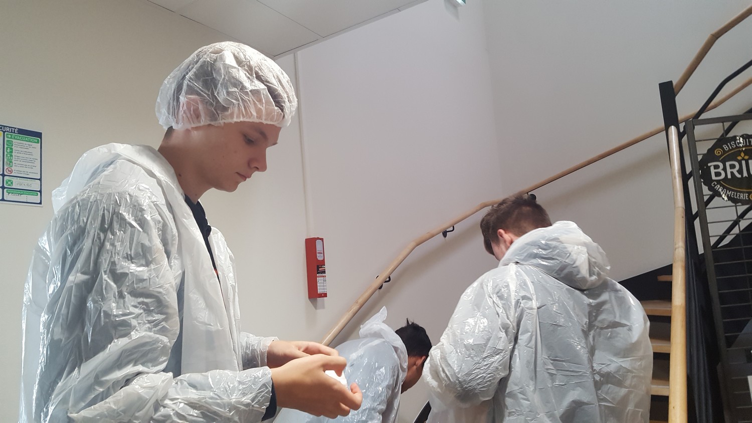 Mardi 22 mai, les élèves de 3ème du site de Dominique Savio ont passé la journée à Saint-Brieuc. Ils ont commencé par visiter la biscuiterie artisanale « Terre et Soleil » qui fabrique des gâteaux, des confitures et des onctueux au caramel et beurre salé. Les élèves ont observé les employés aux différentes étapes de fabrication. La visite s’est clôturée par une dégustation.