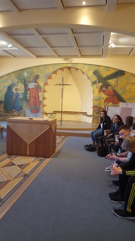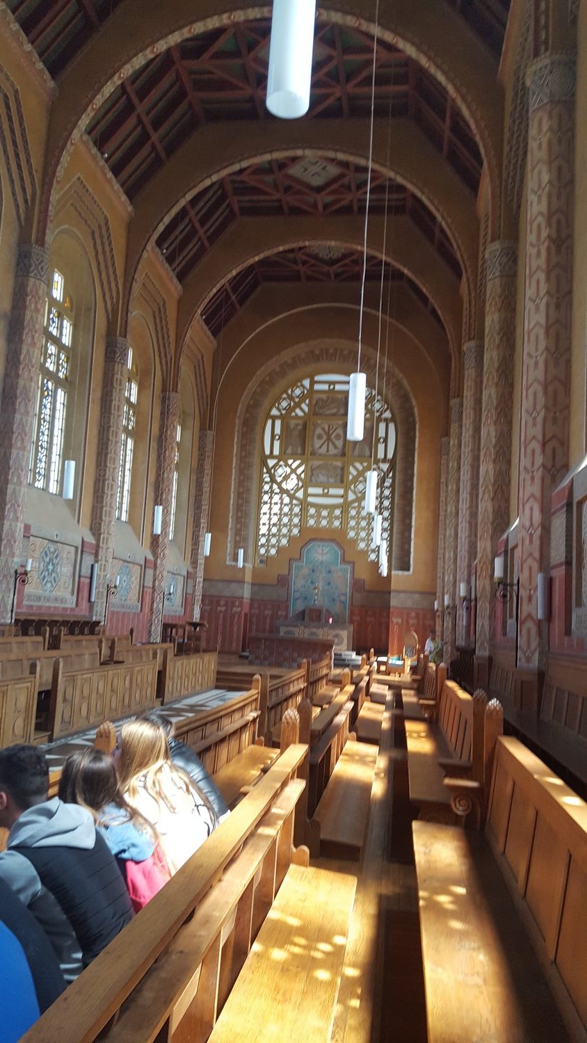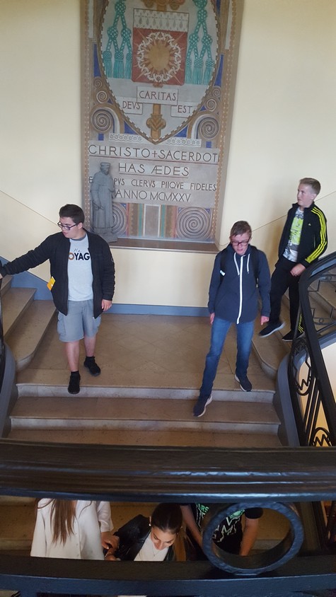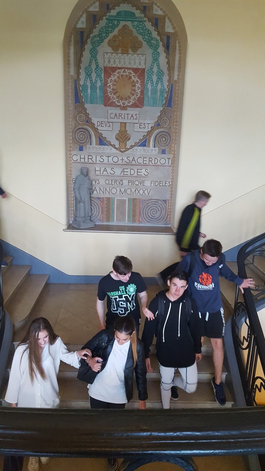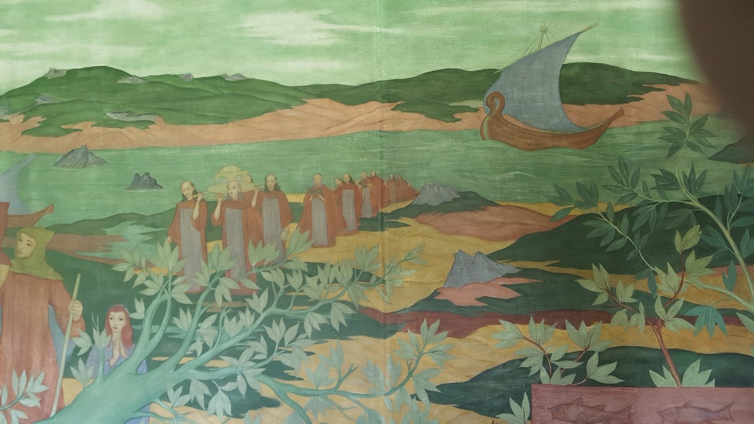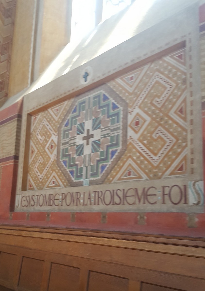 Après avoir pique-niqué sur les grèves de Langueux, nous avons pris la direction de la Maison Saint-Yves. Nous avons été accueillis par Mme CHERDO, responsable d’animation. Elle nous a fait découvrir le cloître à la structure en béton typique du début du XXème siècle qui abrite une magnifique fresque, la chapelle au style art déco avec des mosaïques d’Odorico ainsi que sa crypte. Les élèves ont également été impressionnés par le passage à la médiathèque où ils ont admiré des livres très anciens.