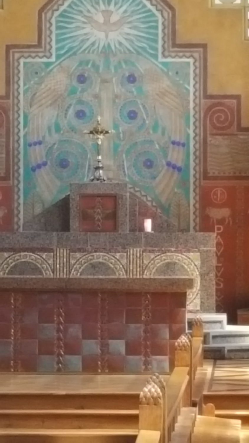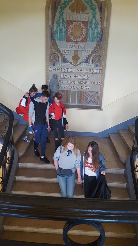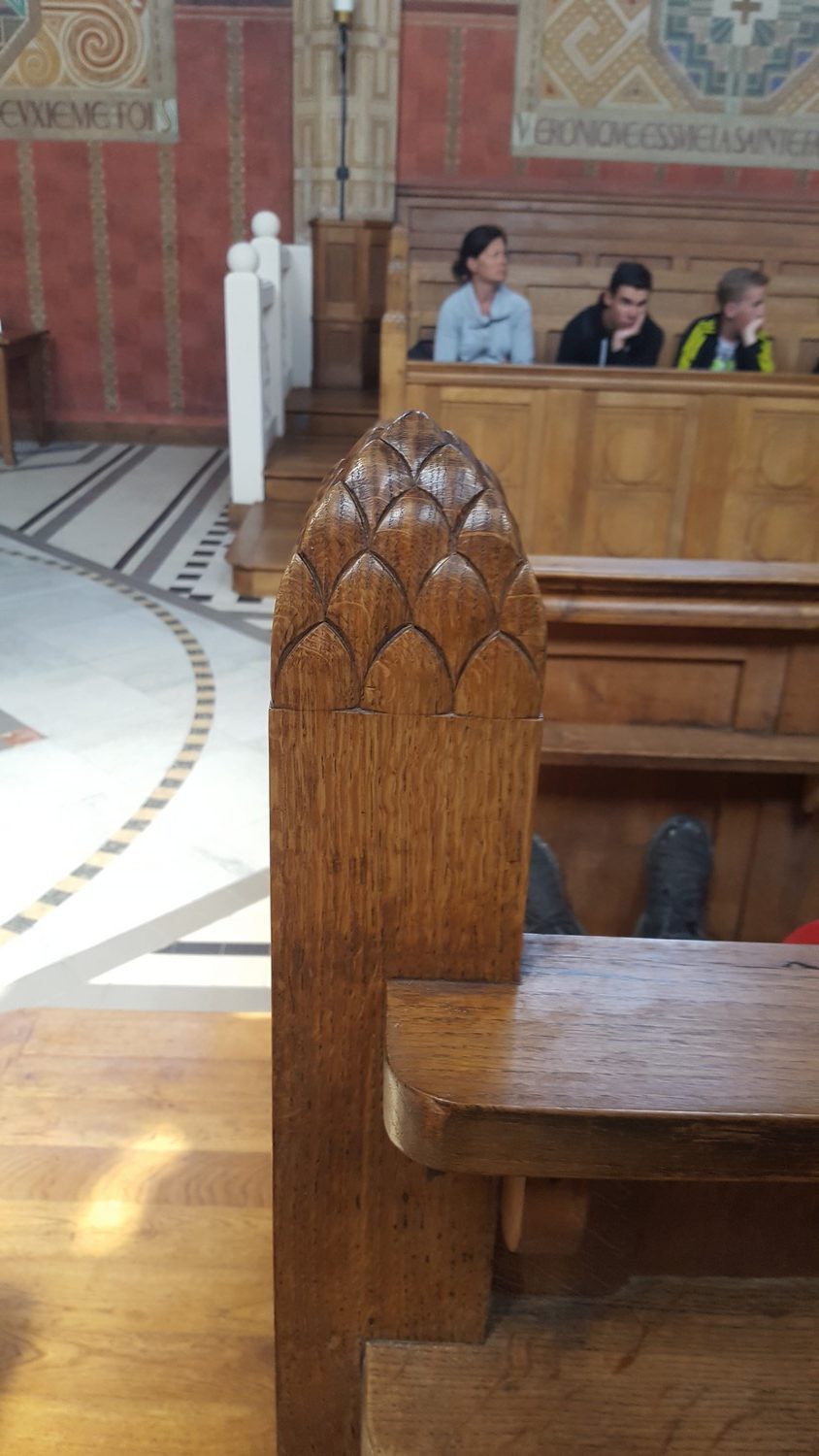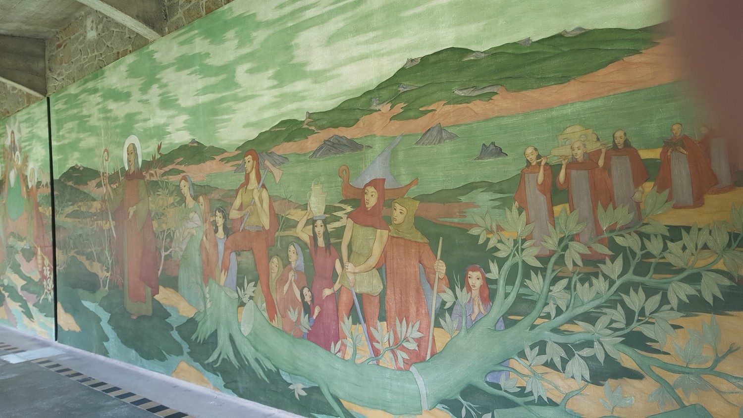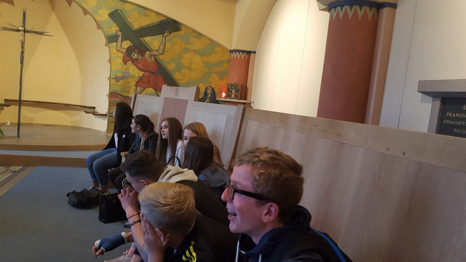 Après avoir pique-niqué sur les grèves de Langueux, nous avons pris la direction de la Maison Saint-Yves. Nous avons été accueillis par Mme CHERDO, responsable d’animation. Elle nous a fait découvrir le cloître à la structure en béton typique du début du XXème siècle qui abrite une magnifique fresque, la chapelle au style art déco avec des mosaïques d’Odorico ainsi que sa crypte. Les élèves ont également été impressionnés par le passage à la médiathèque où ils ont admiré des livres très anciens.