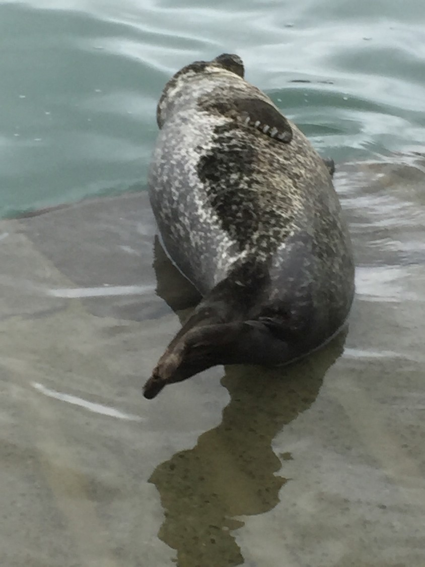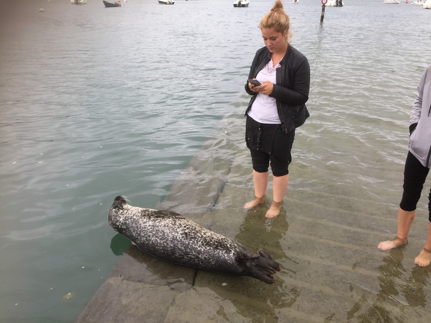 La visite s’est clôturée dans la bonne humeur autour de la dégustation appréciée d’une crêpe et jus de pomme de la ferme. Puis d’un pique-nique très attendu à la cale de Mordreuc pour voir un nouveau phoque, plus jeune que L9 ou Joséphine. Cette dernière n’était pas présente et devait sillonner la Rance…