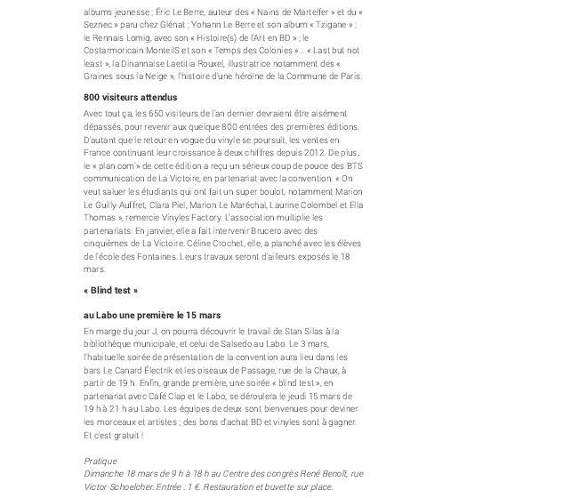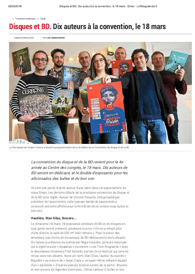 Nos étudiants en BTS Communication ont travaillé en partenariat avec la convention disques et BD. Voici l'article paru dans le journal Le Télégramme.
