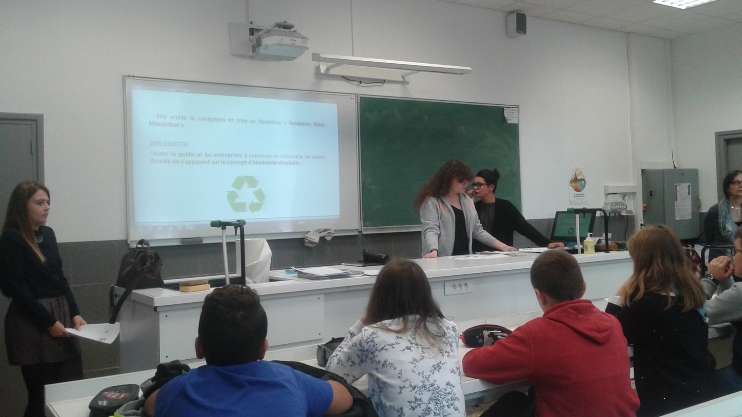 Lundi 21 novembre 2016, dans le cadre du projet « jardin », trois élèves de la classe de première STMG de Mme Coconnier, Cassandra, Marion et Nina, sont venues nous présenter l’économie circulaire et l’économie linéaire.