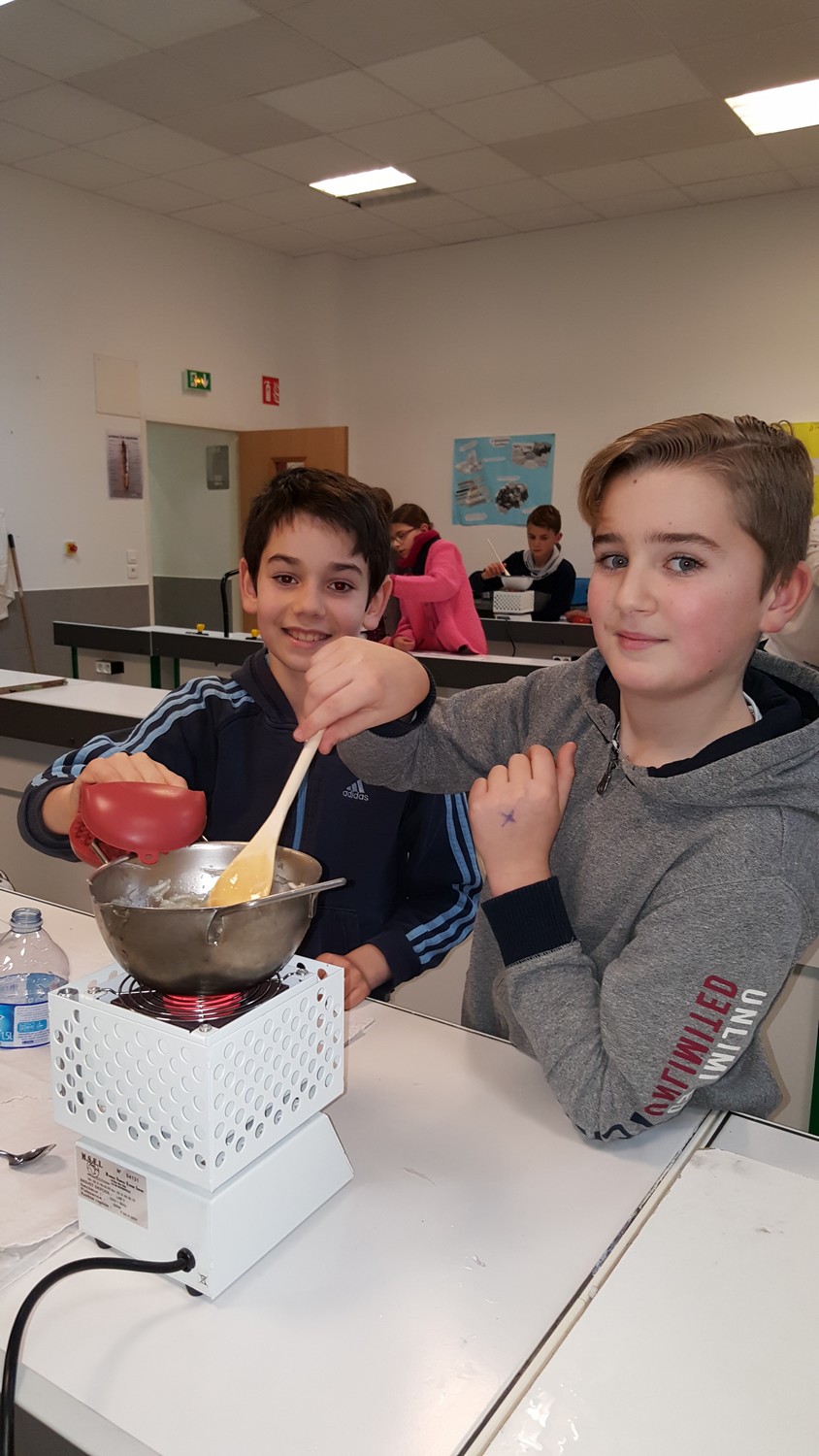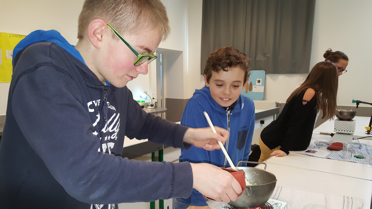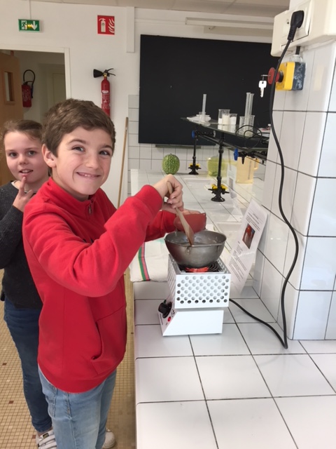 Lundi 18 décembre et mercredi 20 décembre 2017, dans le cadre du projet jardin, les élèves de sixième ont réalisé des confitures particulières sur le site de Notre Dame de la Victoire ! Afin de répondre au programme de SVT, ils ont cherché à comprendre ce qui permet la conservation des aliments. Pour répondre à ce problème, chacun a apporté sa recette de confiture préférée au laboratoire. Après avoir discuté sur les éléments indispensables à la conservation (sucre, stérilisation…) et pris les mesures d’hygiène nécessaires (désinfection des mains…), des petits groupes de deux ou trois élèves ont réalisé leur pot de confiture de melon d’eau. Cette cucurbitacée d’antan avait été semée, l’an passé dans le jardin des Cordeliers, par les élèves de cinquième actuels. Nous avons conservé des graines pour à nouveau en semer au printemps. Après avoir macéré 24 heures avec du sucre et du citron, le melon d’eau a été cuit par les cuisiniers en herbe. Les pots étiquetés du logo « projet jardin » seront vendus aux portes ouvertes pour acheter du matériel et des graines, indispensables pour jardiner…