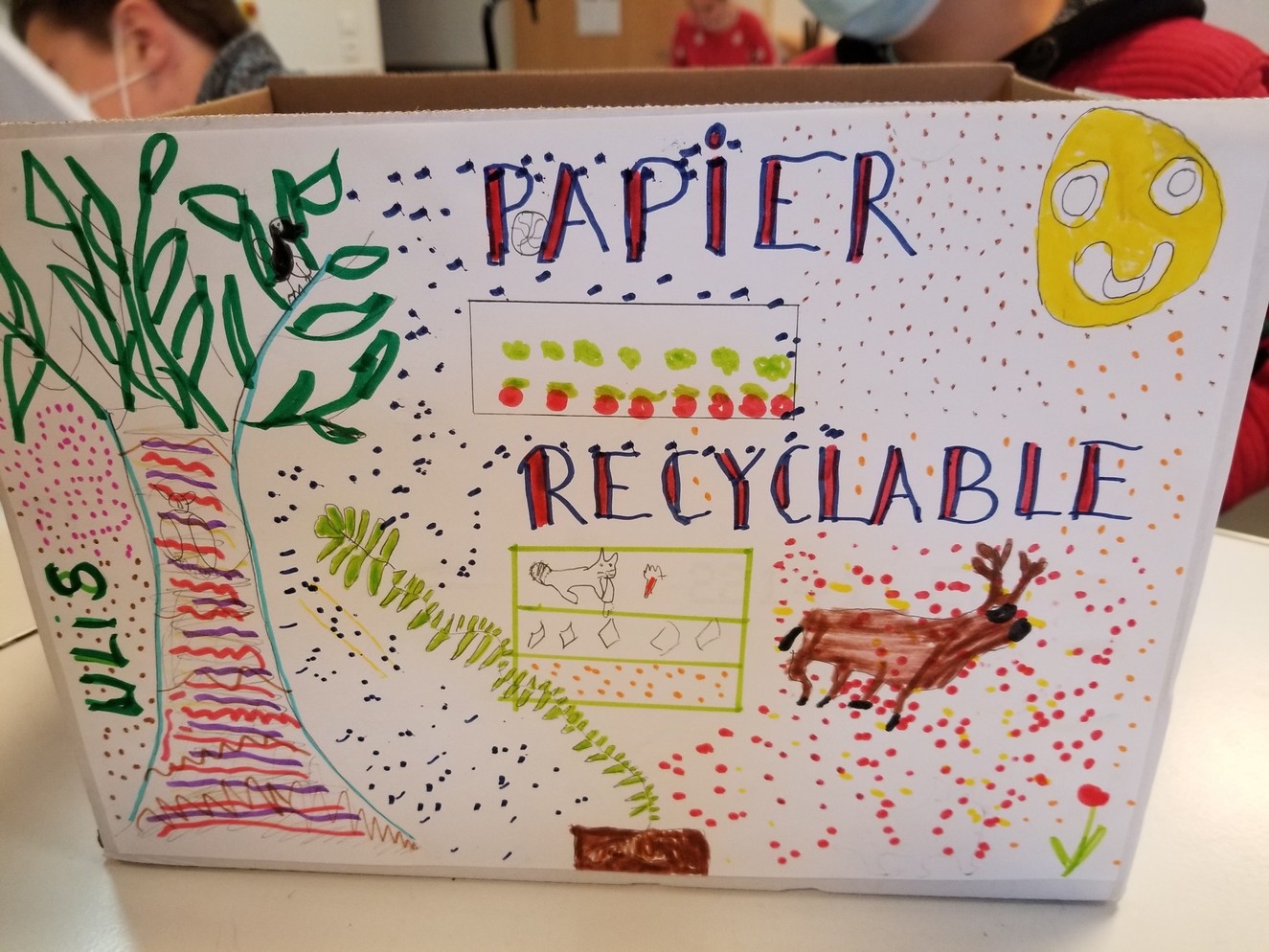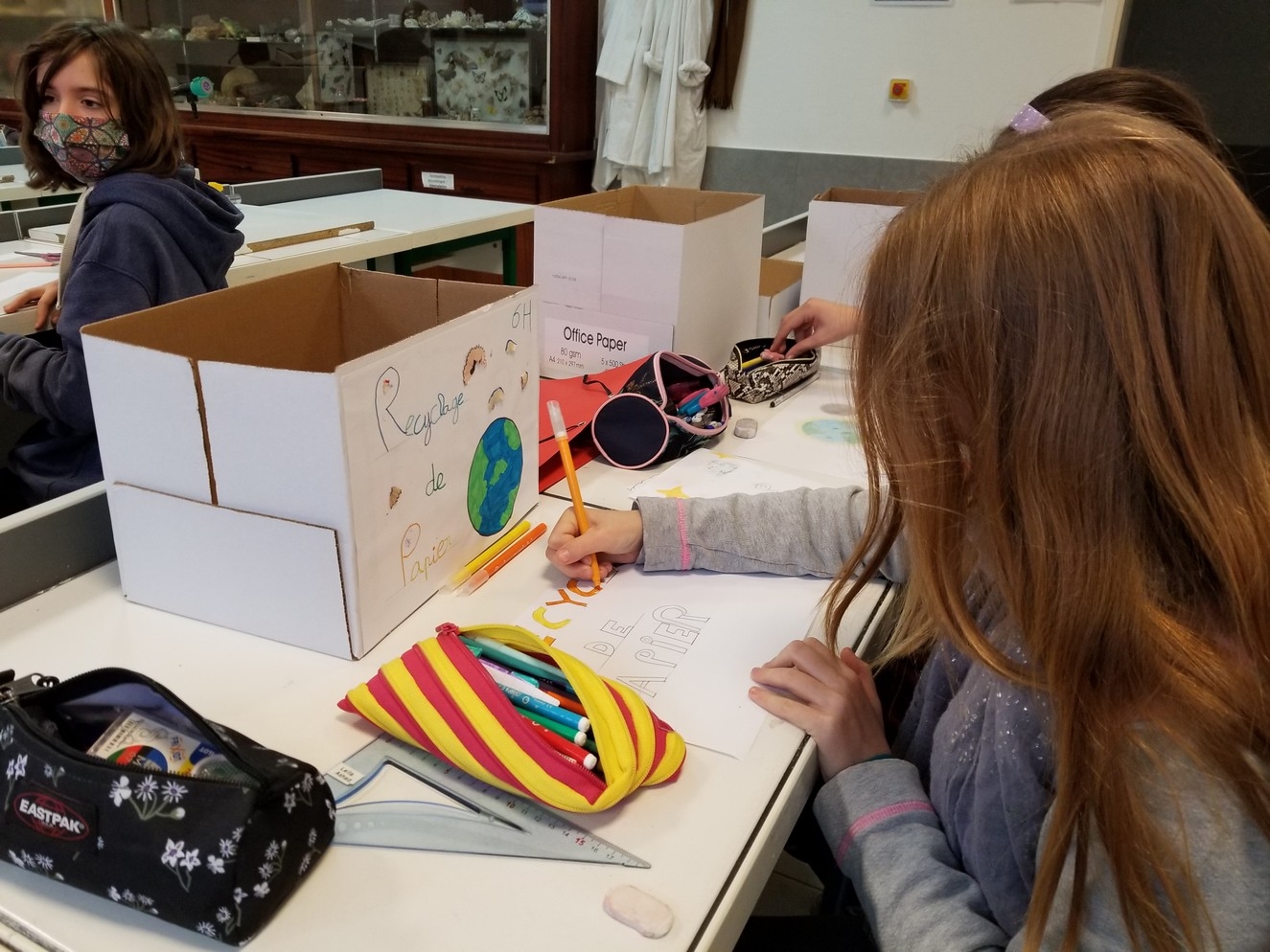 Chaque salle de classe sera ainsi équipée : d'une boîte pour le recyclage du papier et d'un couvercle pour le brouillon.