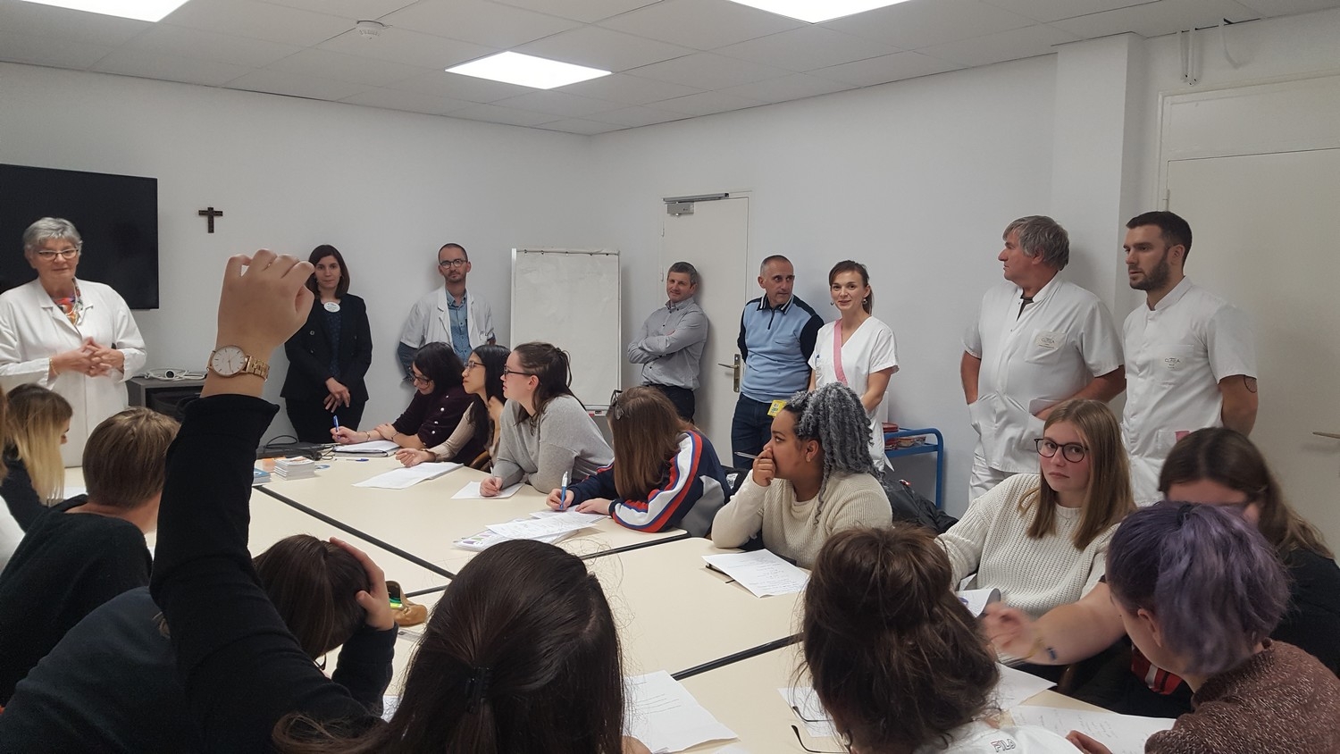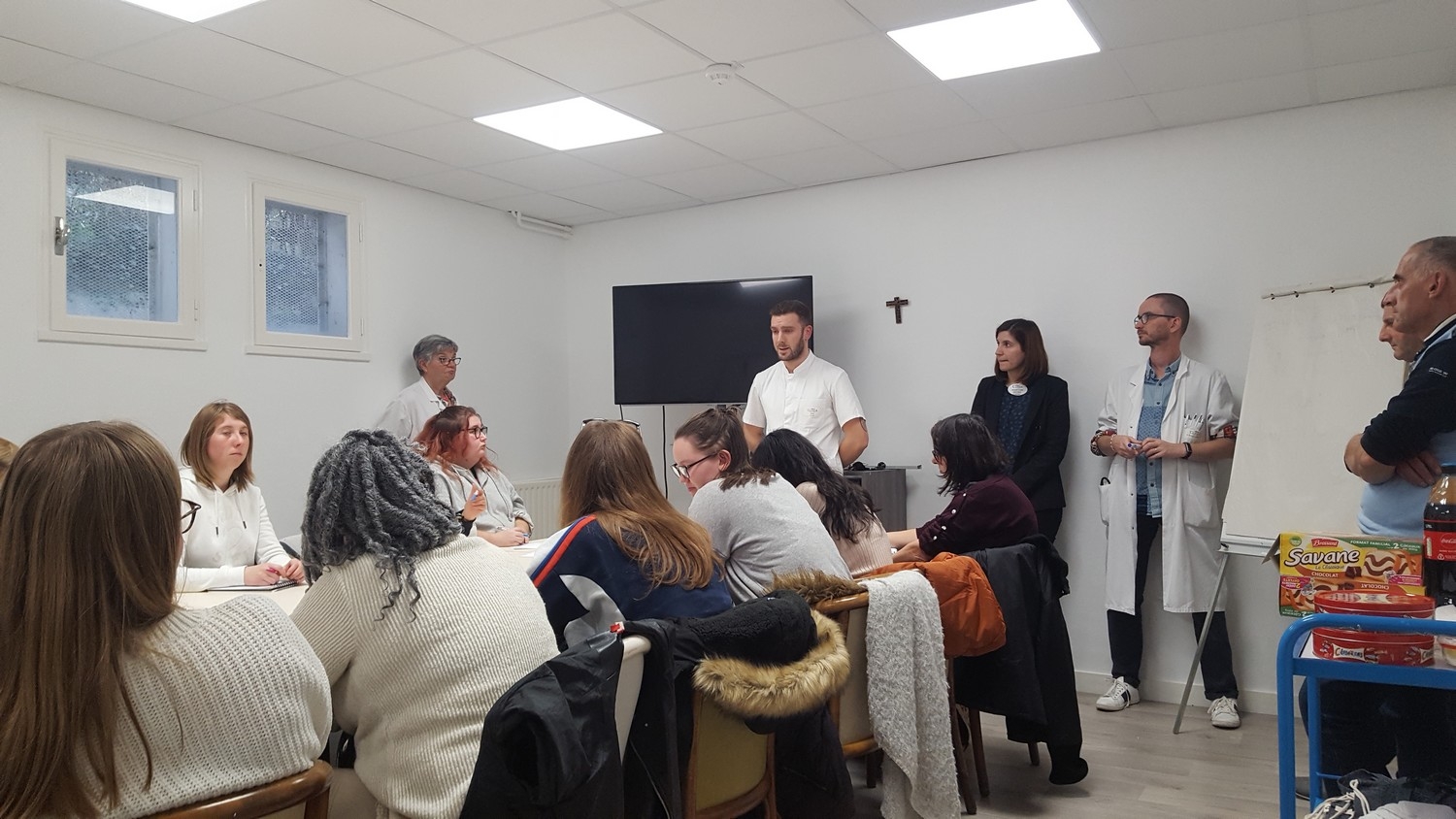 Ils ont été accueillis par Mme Natacha YVARD, directrice de l’établissement et Mme Valérie JACQ, cadre de santé pour une présentation de la structure et notamment la construction d’une nouvelle clinique dans le centre-ville de Plancoët pour 2021. Puis, plusieurs professionnels ont témoigné de leur expérience : aide-soignante, infirmière, kinésithérapeute, ergothérapeute, enseignant activités physiques adaptées et médecin. Le Dr FONTAINE a insisté sur l’intérêt du travail pluridisciplinaire pour la bonne prise en charge du patient.