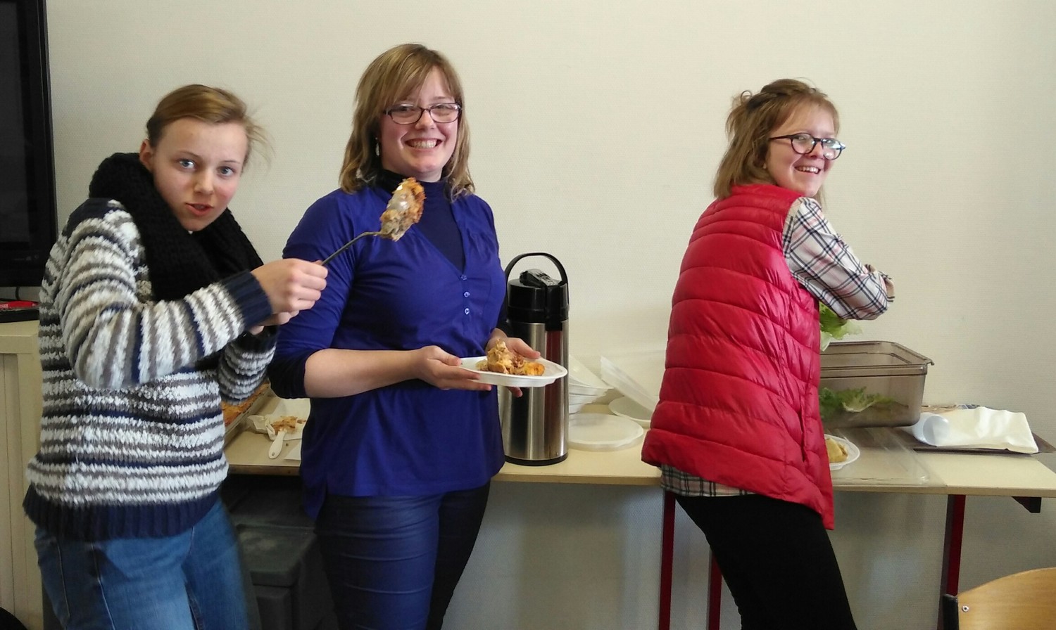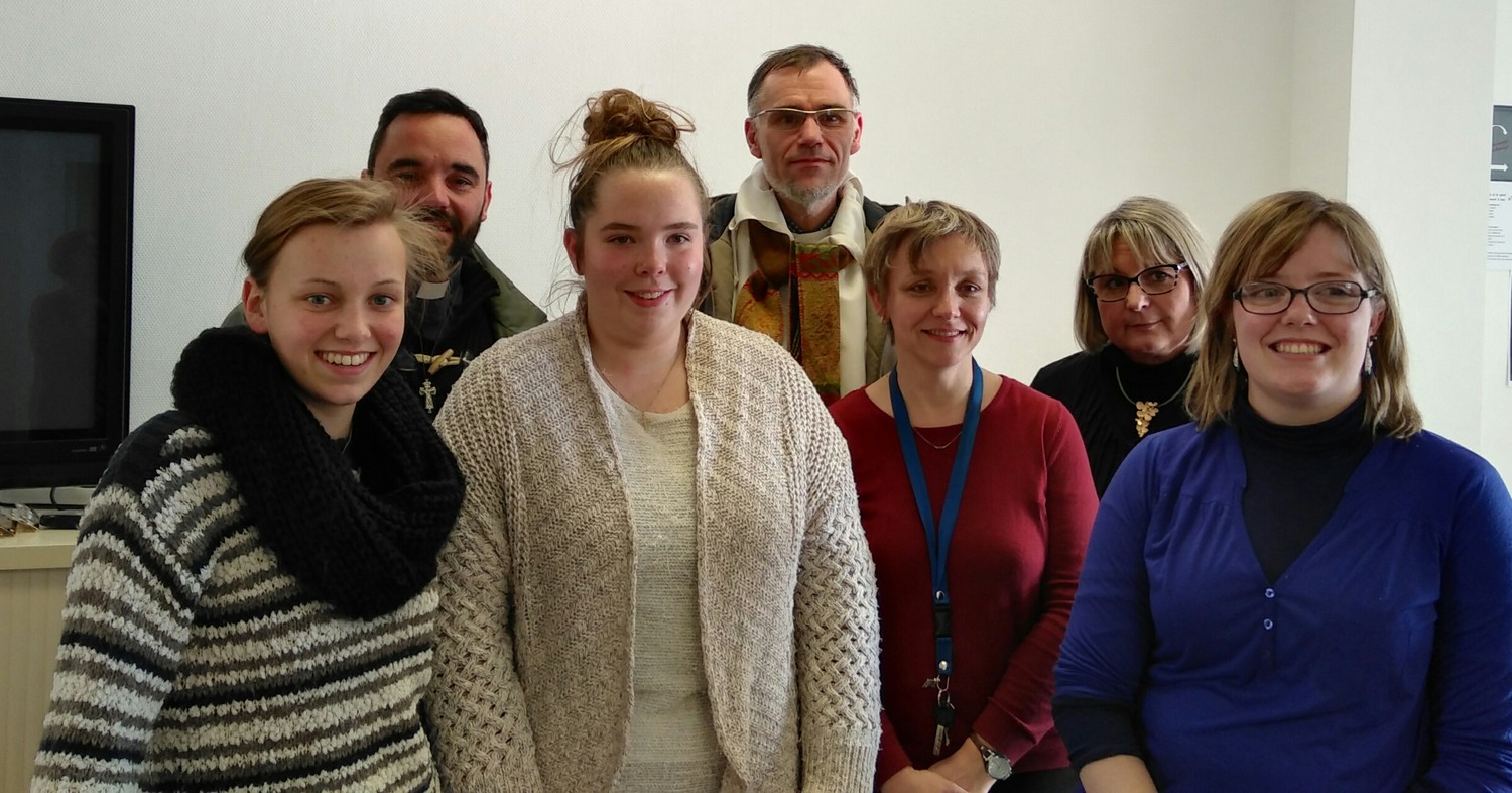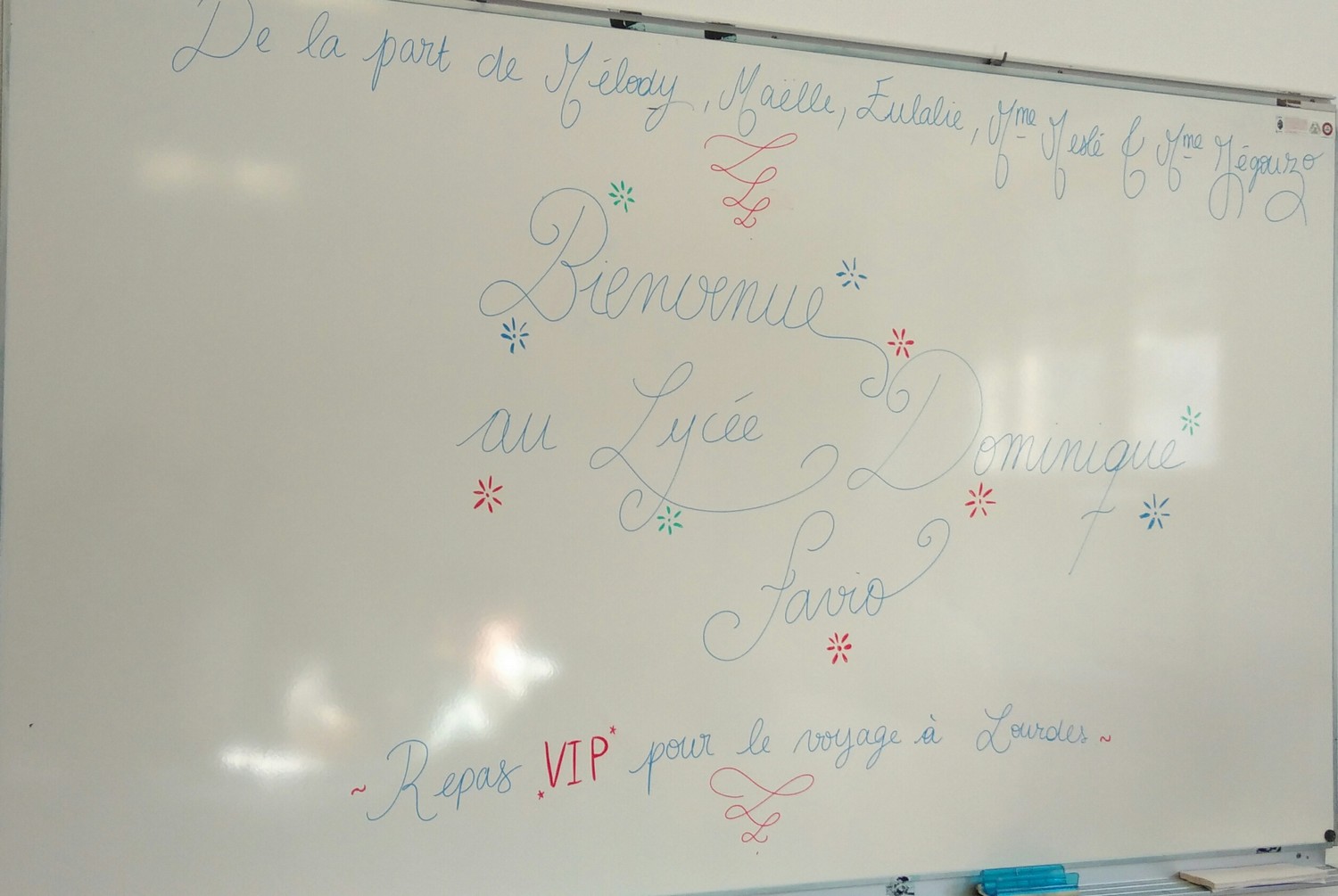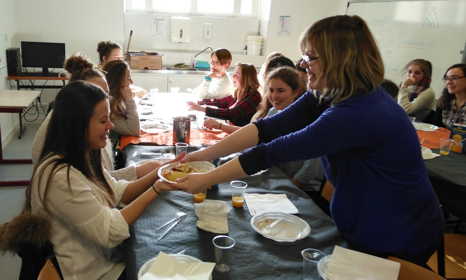 Retrouvailles des trente-et-un élèves de première présents à Lourdes comme hospitalier en octobre. Déjeuner organisé sur le site de Dominique Savio en présence entre autre du Père Guillaume et du Frère Ferrant.