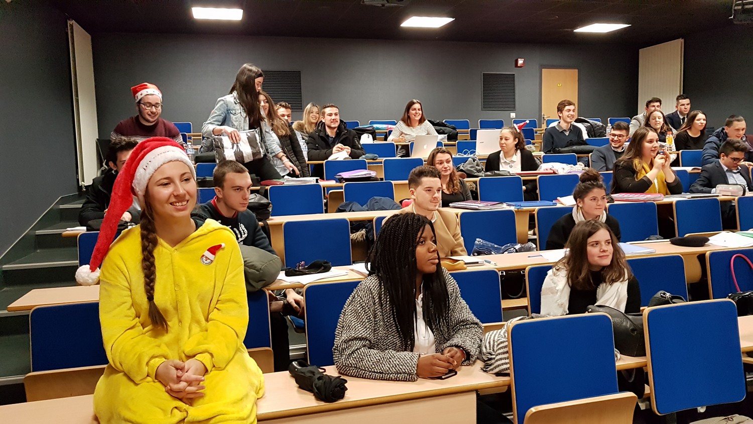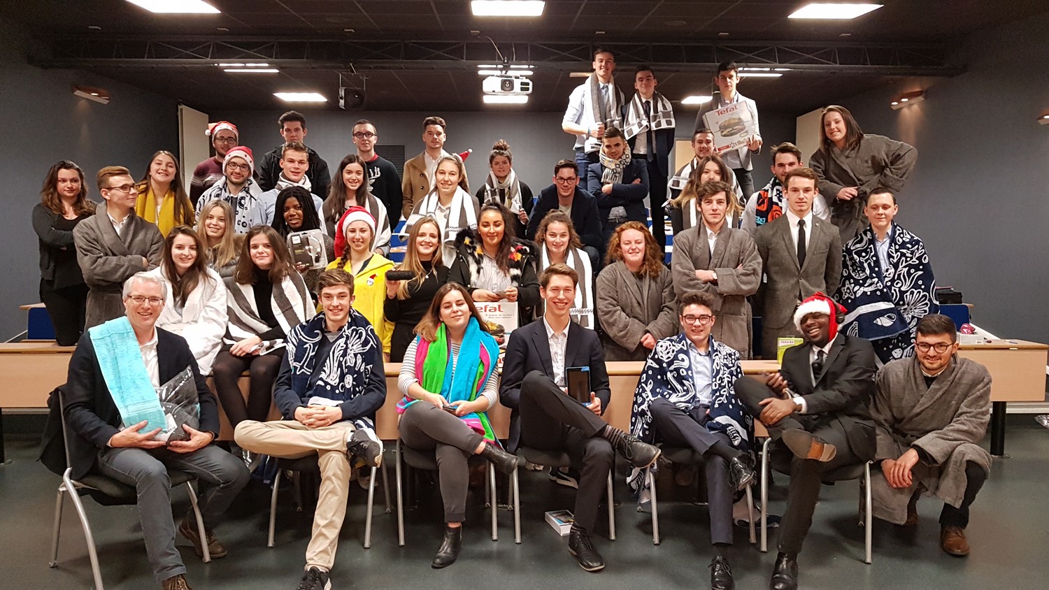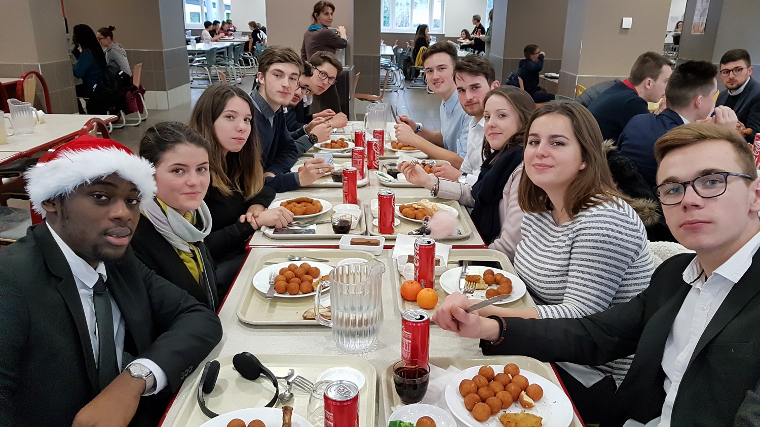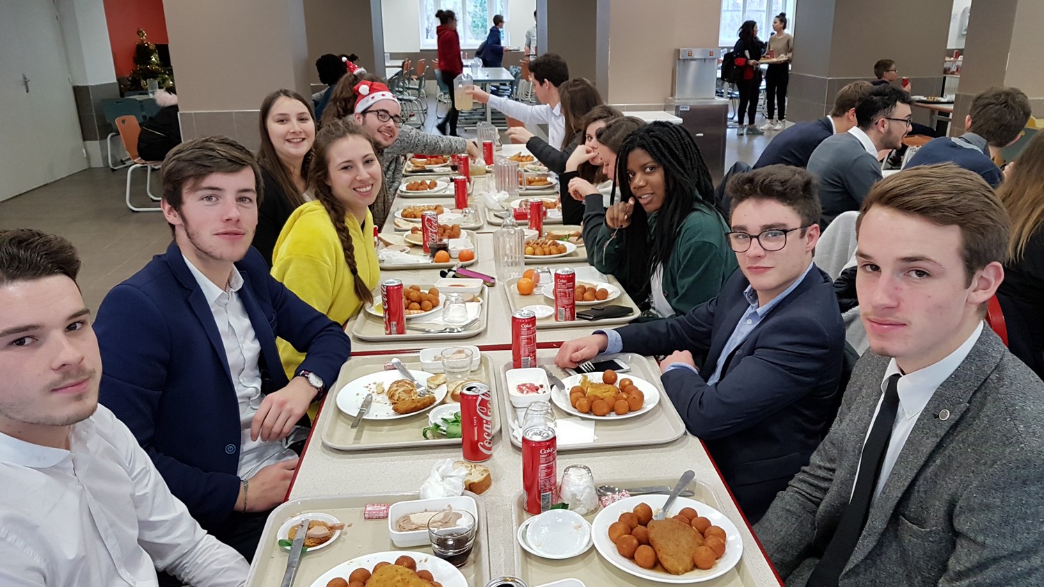 Juste avant les vacances de Noël, nos étudiants de COM1 et NRC1 ont partagé un repas commun avec les professeurs. Moment convivial, animé aussi par une remise de cadeau en récompense à l’action vente des produits textiles de la société DIVAM, partenaire historique de la formation du BTS.