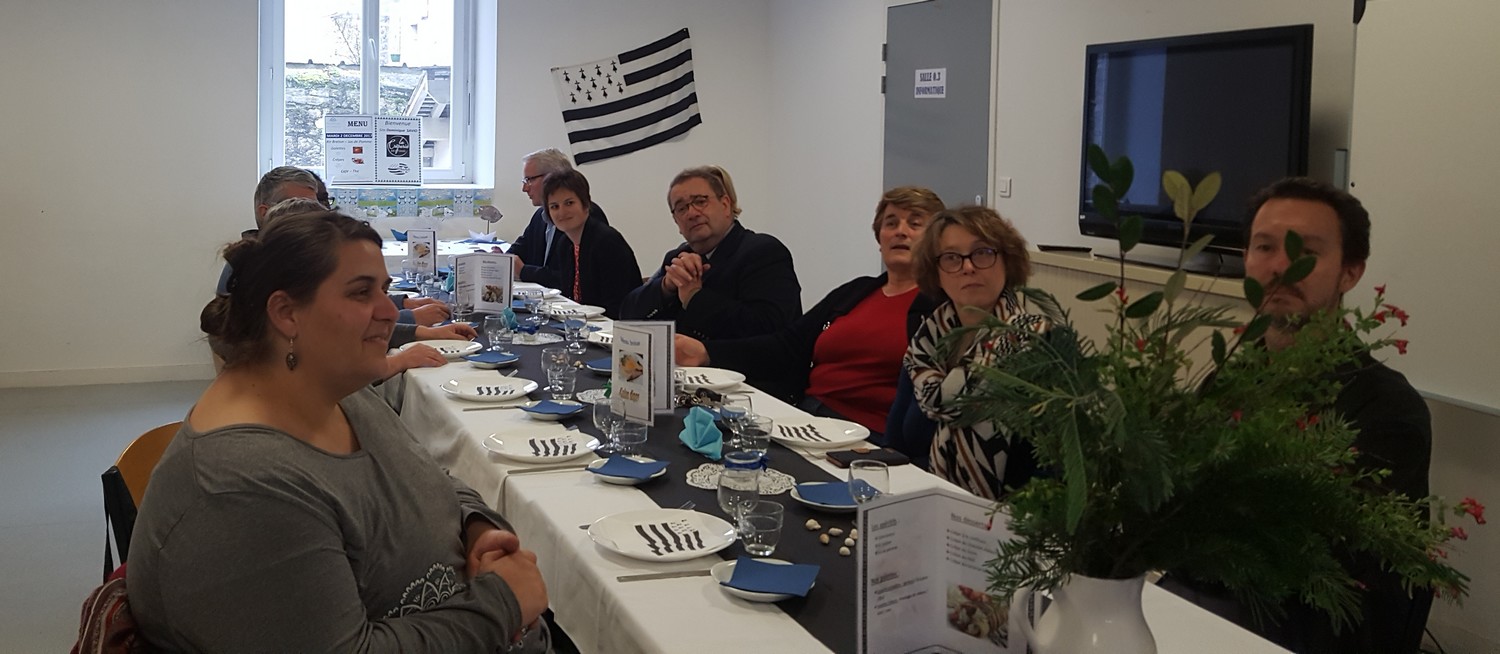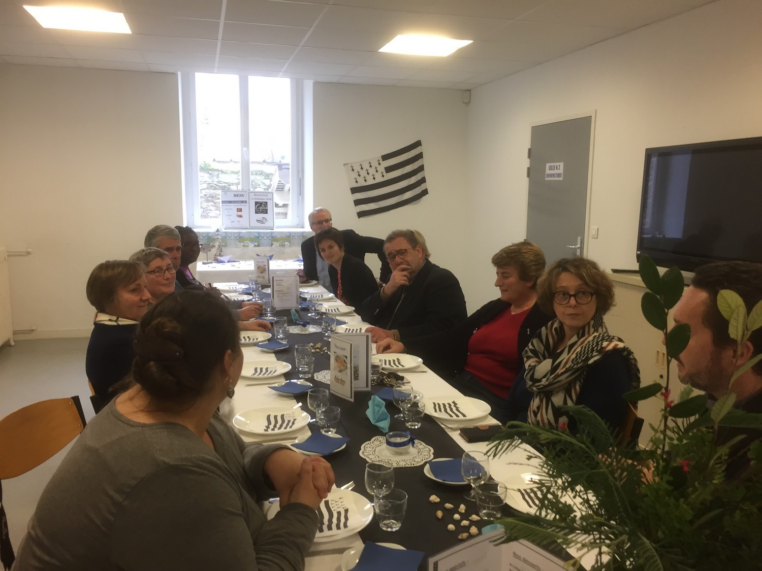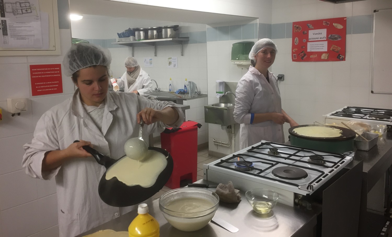Dans le cadre de la visite de tutelle qui a eu lieu le 5 décembre dernier au sein de l’ensemble scolaire, des élèves du site de Dominique Savio ont préparé un repas breton. La décoration de la salle et la mise en place de la table ont été réalisées par les élèves de terminale CAPA SAPVER. Gwennola, Océane G, Océane P, Gwladys et Céline scolarisées en 2nde Bac Pro SAPAT ont réalisé la pâte à galettes ainsi que la pâte à crêpes et ont également assuré le service à table. Elles ont acquis ces savoir-faire l’an dernier dans un module professionnel. Le repas a été apprécié par l’ensemble des convives.