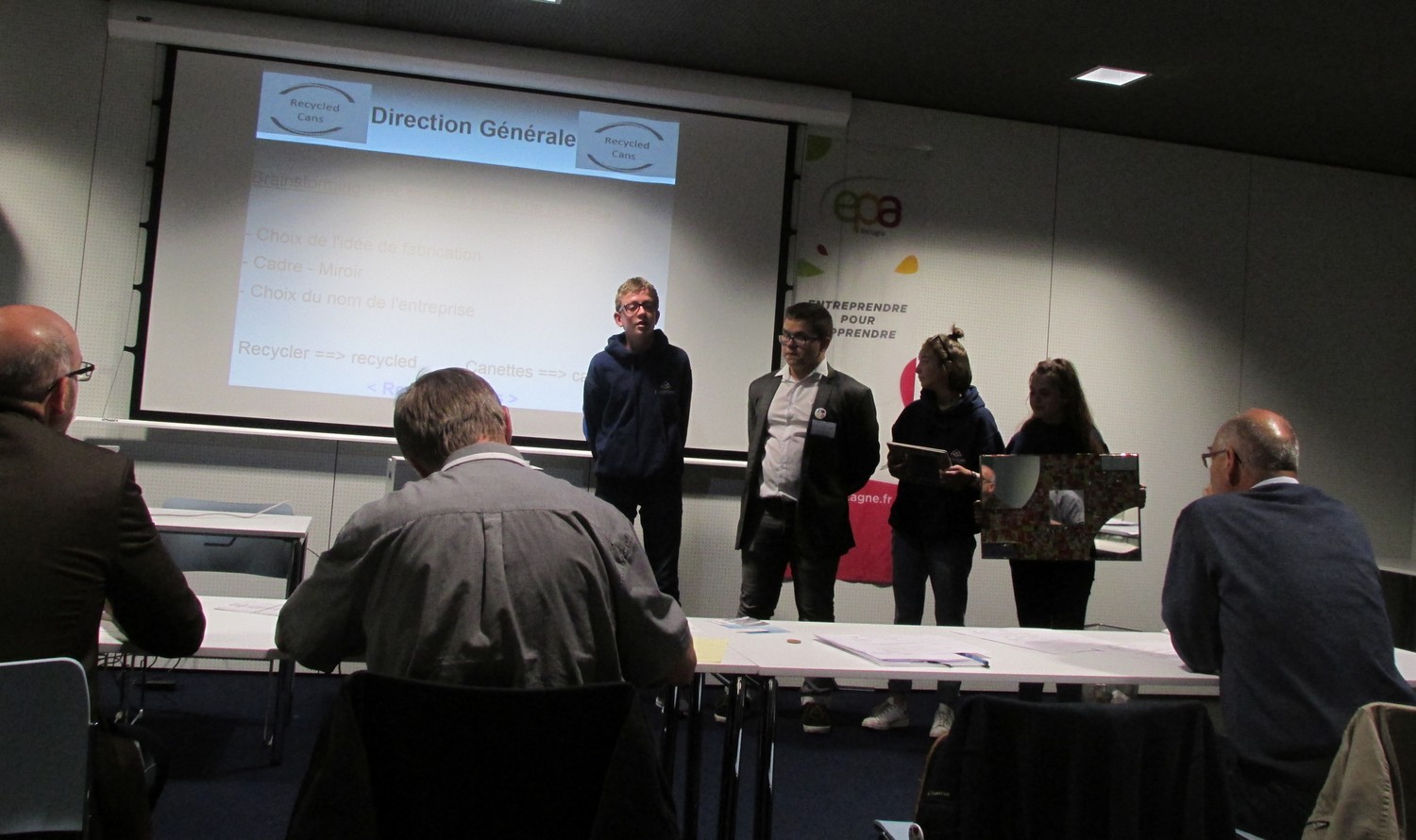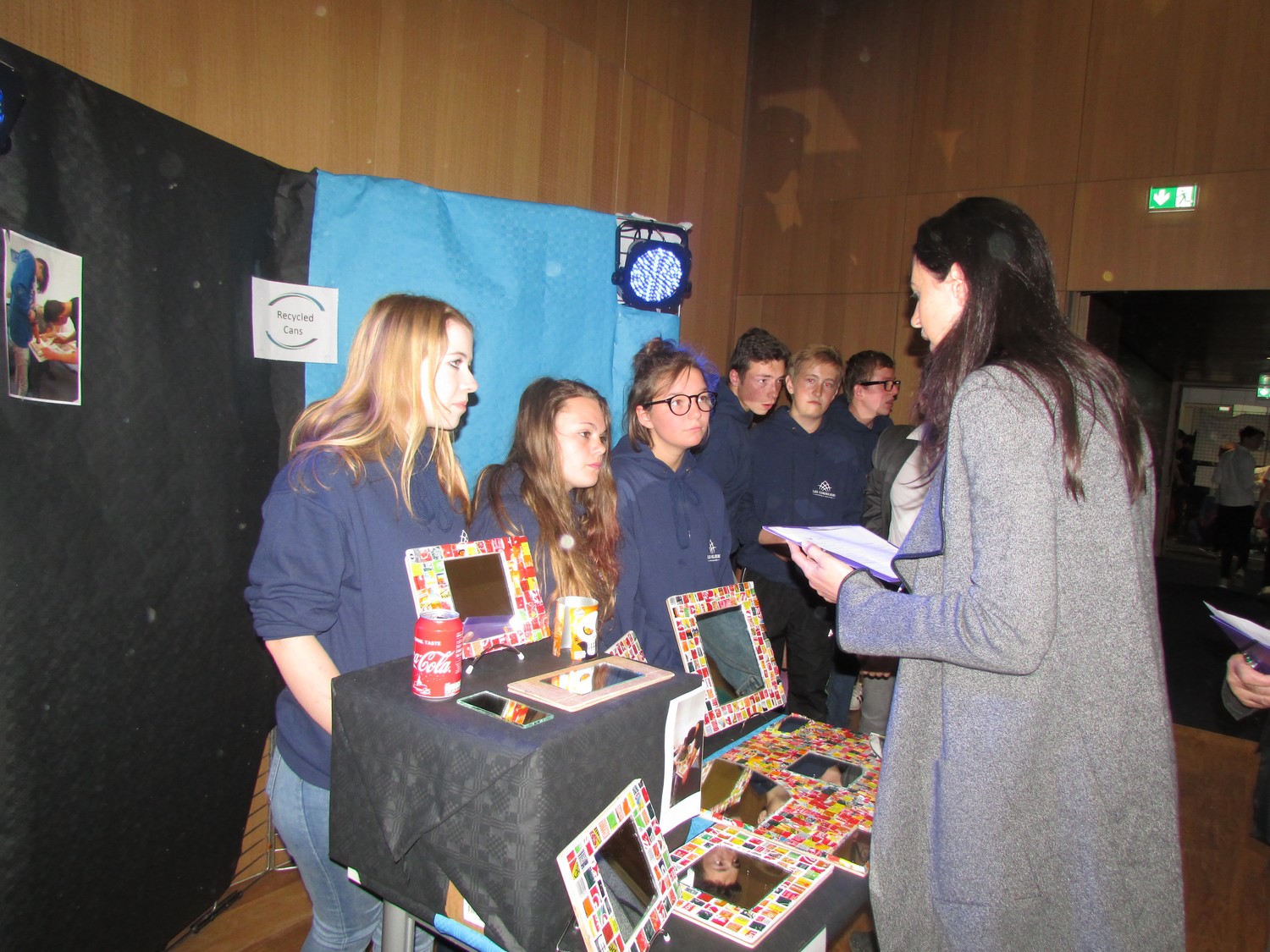 Après la cérémonie d’ouverture, les collégiens ont regagné leur stand pour être présents lors du passage des différents jurys qui sont venus évaluer le travail effectué au sein des différents services de la mini-entreprise « Recycled Cans » : la direction, les services administratif et financier, communication/marketing, relations clients et production.