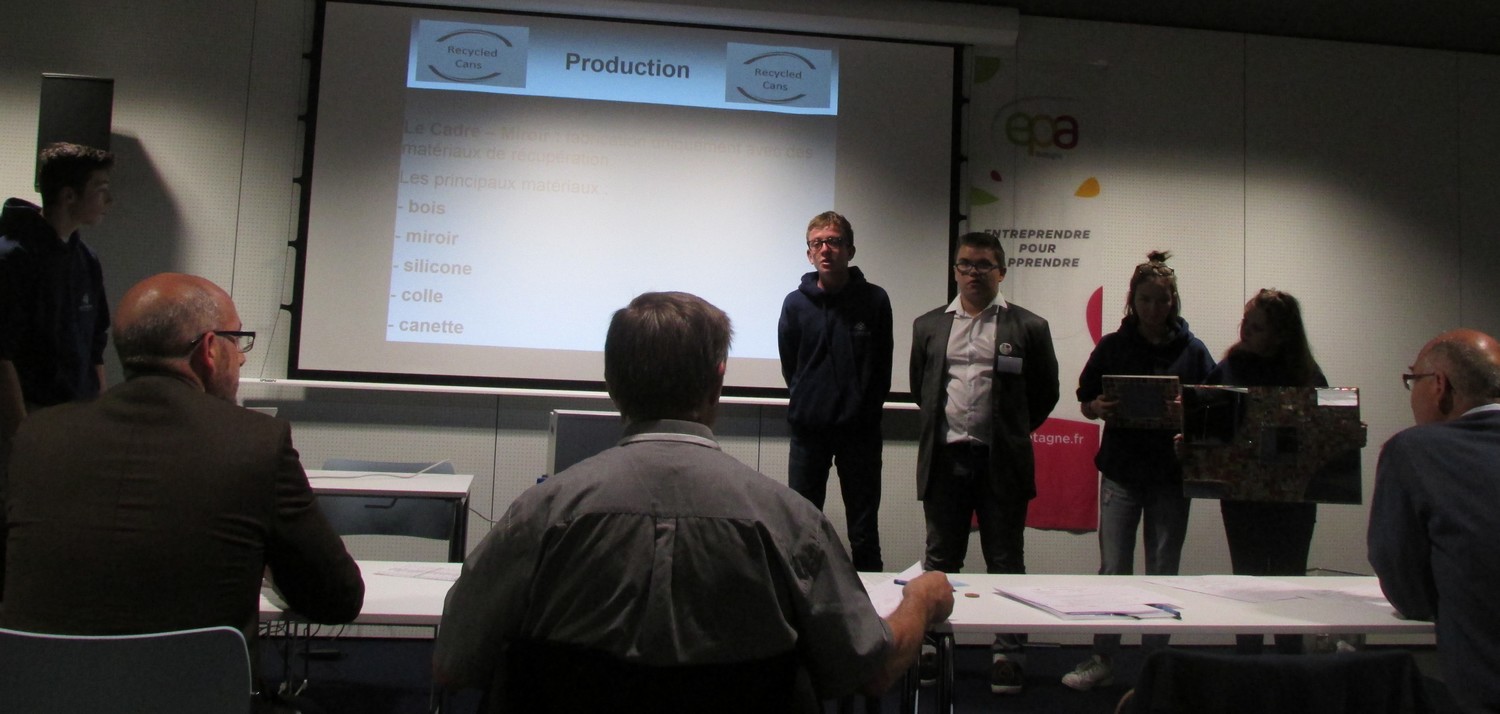 Vendredi 18 mai 2018, les élèves de 3ème du site de Dominique Savio ont participé au salon régional des mini-entreprises organisé par l’association « Entreprendre pour Apprendre ». Dès leur arrivée au Couvent des Jacobins à Rennes, les mini-entrepreneurs se sont activés pour installer leur stand de façon à présenter et mettre valeur les produits qu’ils ont réalisés « des Cadres Miroir » à partir de matières récupérées : bois, chutes de miroir, canettes…