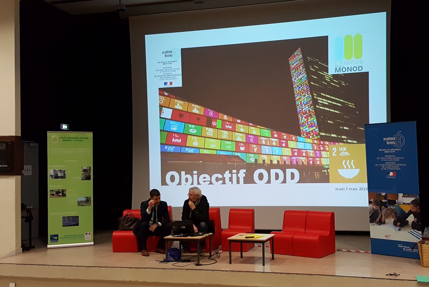 Le jeudi 7 mars 2019, les élèves de la classe de seconde E sont allés au lycée Théodore Monod, au Rheu accompagnés par Mme Fromont et Mme Georgeault, pour poursuivre leur projet sur le développement durable. Ce projet concerne le 2ème objectif du développement durable à savoir « éliminer la faim dans le monde, assurer la sécurité alimentaire, améliorer la nutrition et promouvoir une agriculture durable ».