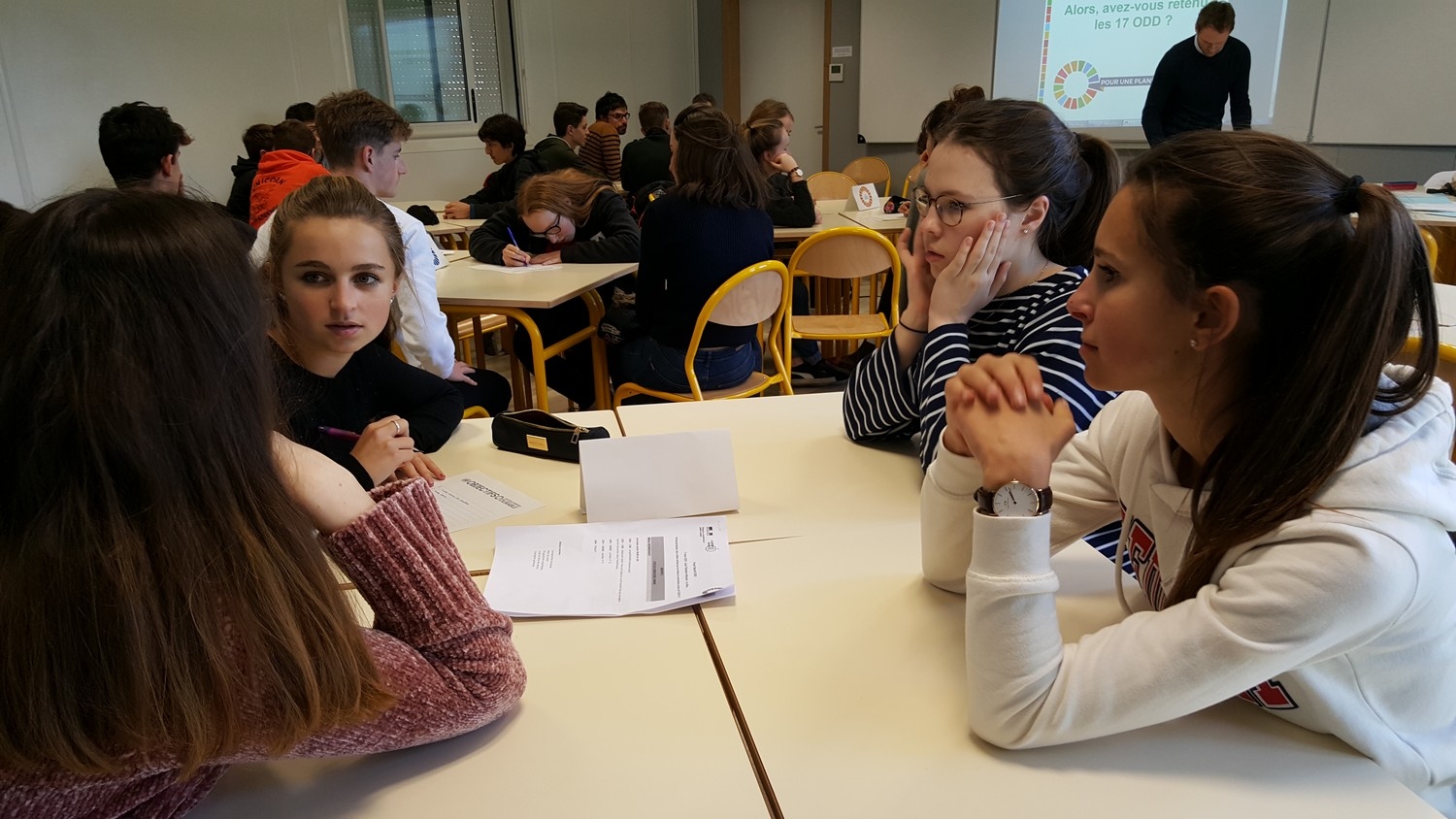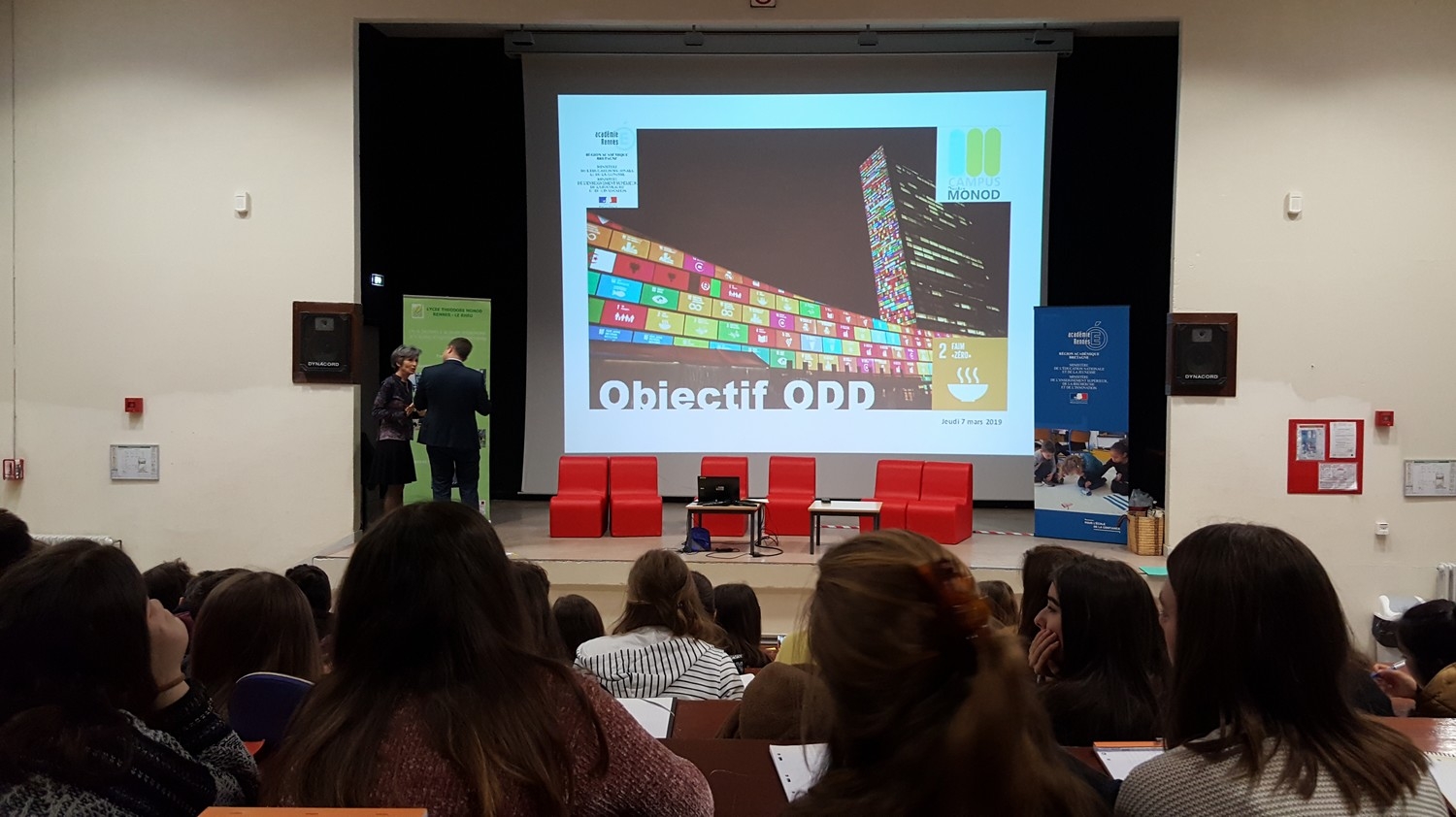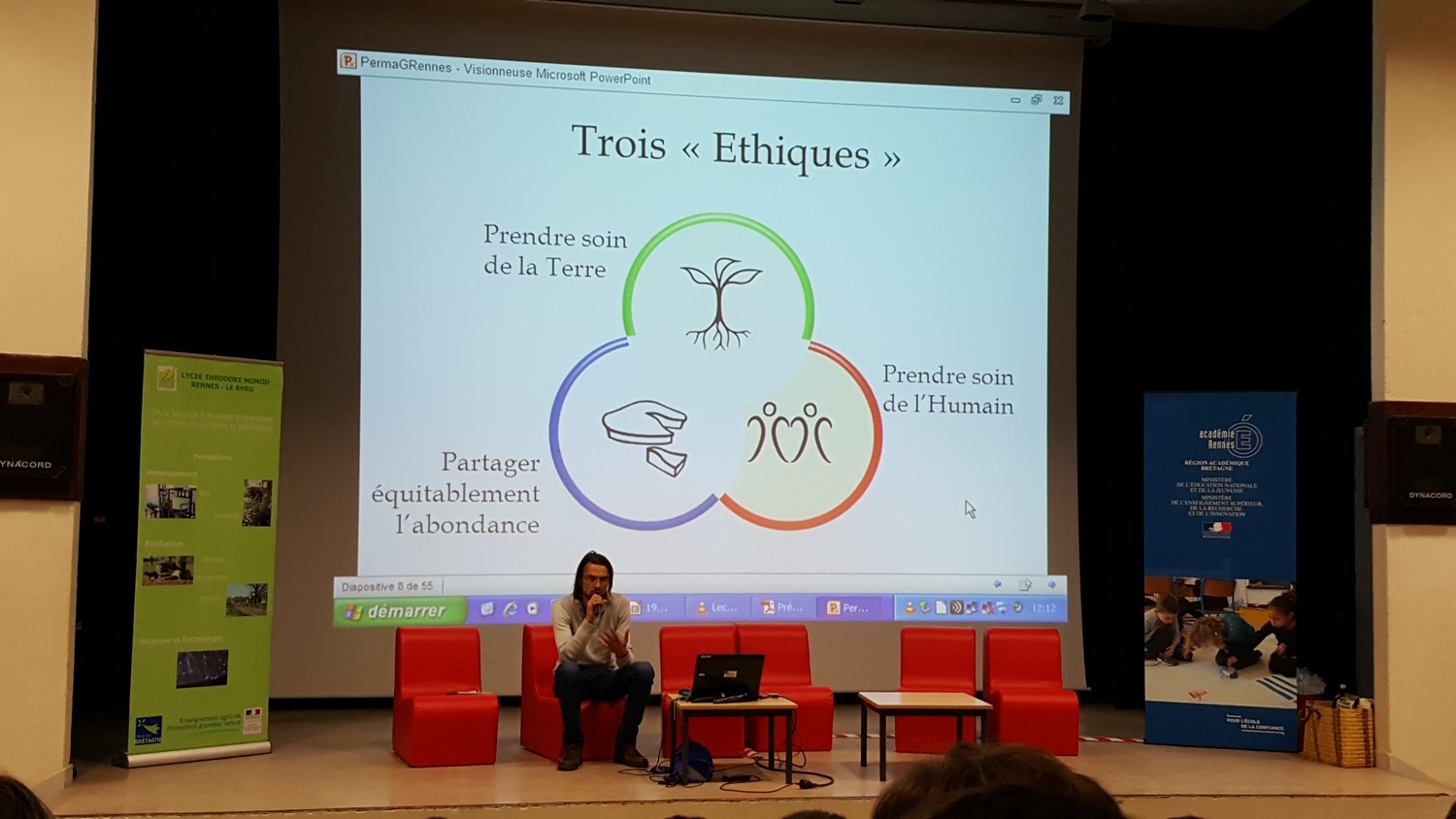 Afin de pouvoir rédiger une résolution onusienne qu’ils présenteront en avril au parlement de Bretagne, ils ont assisté à deux conférences le matin. La première conférence portait sur les enjeux de la biodiversité, présentée par Jean-Luc Toullec, président de la fédération Bretagne Environnement et la seconde sur la permaculture, présentée par Michael Hardy de PERMA G’RENNES. Ils ont pu également visionner les vidéos, réalisées par les différents établissements présents (500 élèves) représentant les différents pays, dont celle des Cordeliers pour la France.