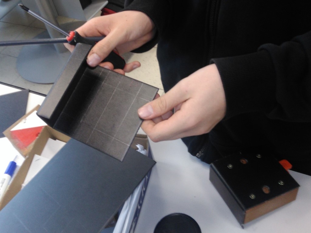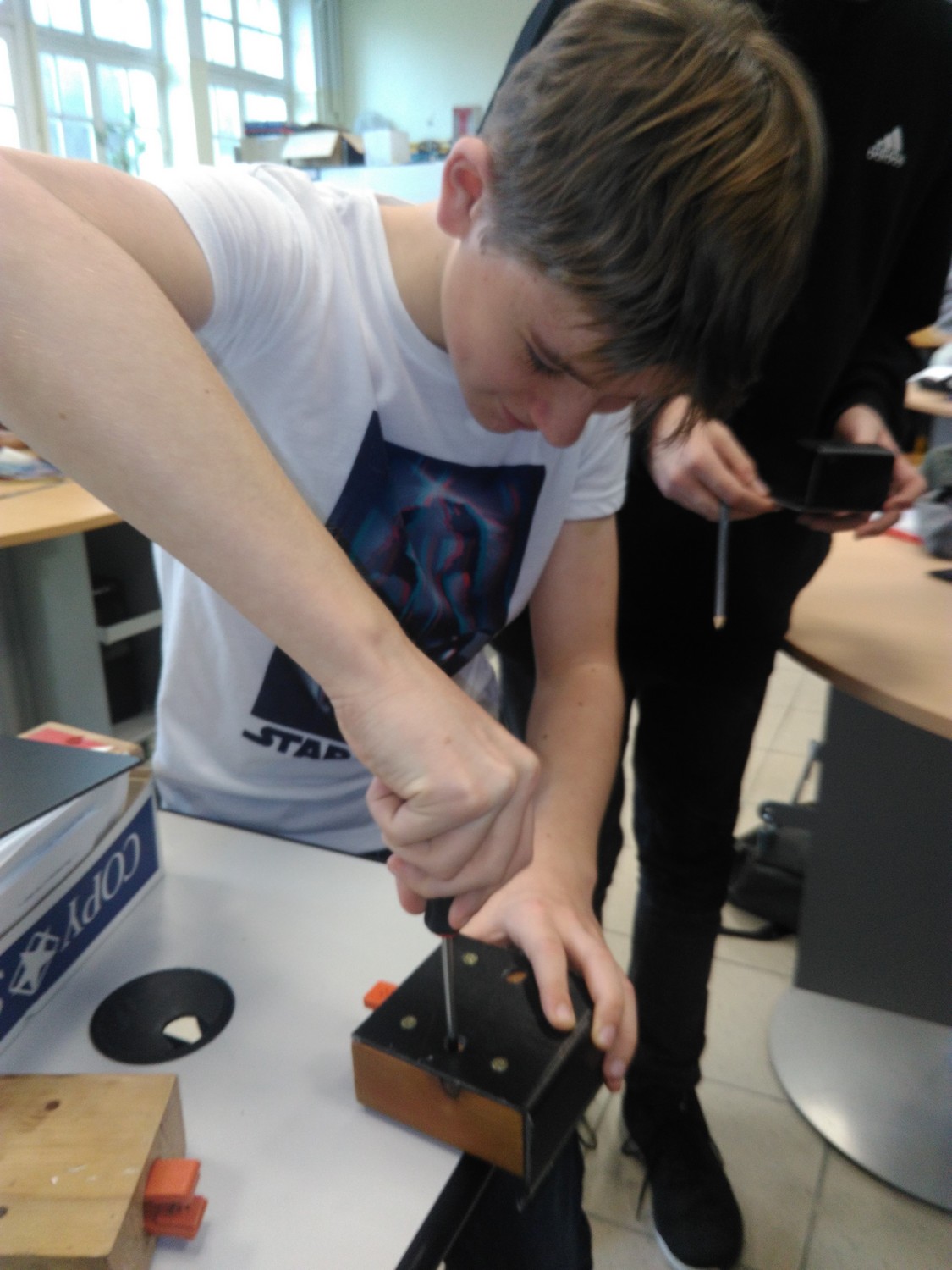 Cette activité a permis aux élèves de s’initier aux opérations techniques telles que : le traçage pour préparer la fabrication, le cisaillage, le perçage, le poinçonnage, le thermo-pliage, l’ébavurage pour finaliser et l’assemblage par vissage.