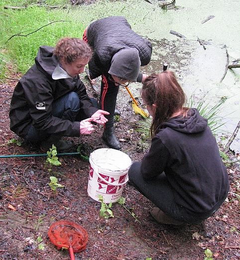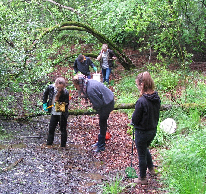" On a découvert différentes espèces aquatiques comme des têtards de salamandre, des tritons, des larves de libellules, des dytiques... c'était une journée pleines de découvertes malgré la météo pluvieuse. "On n'oublie pas la magnifique chute de Noémie dans la mare !!!" Marie, Océane, Kylian