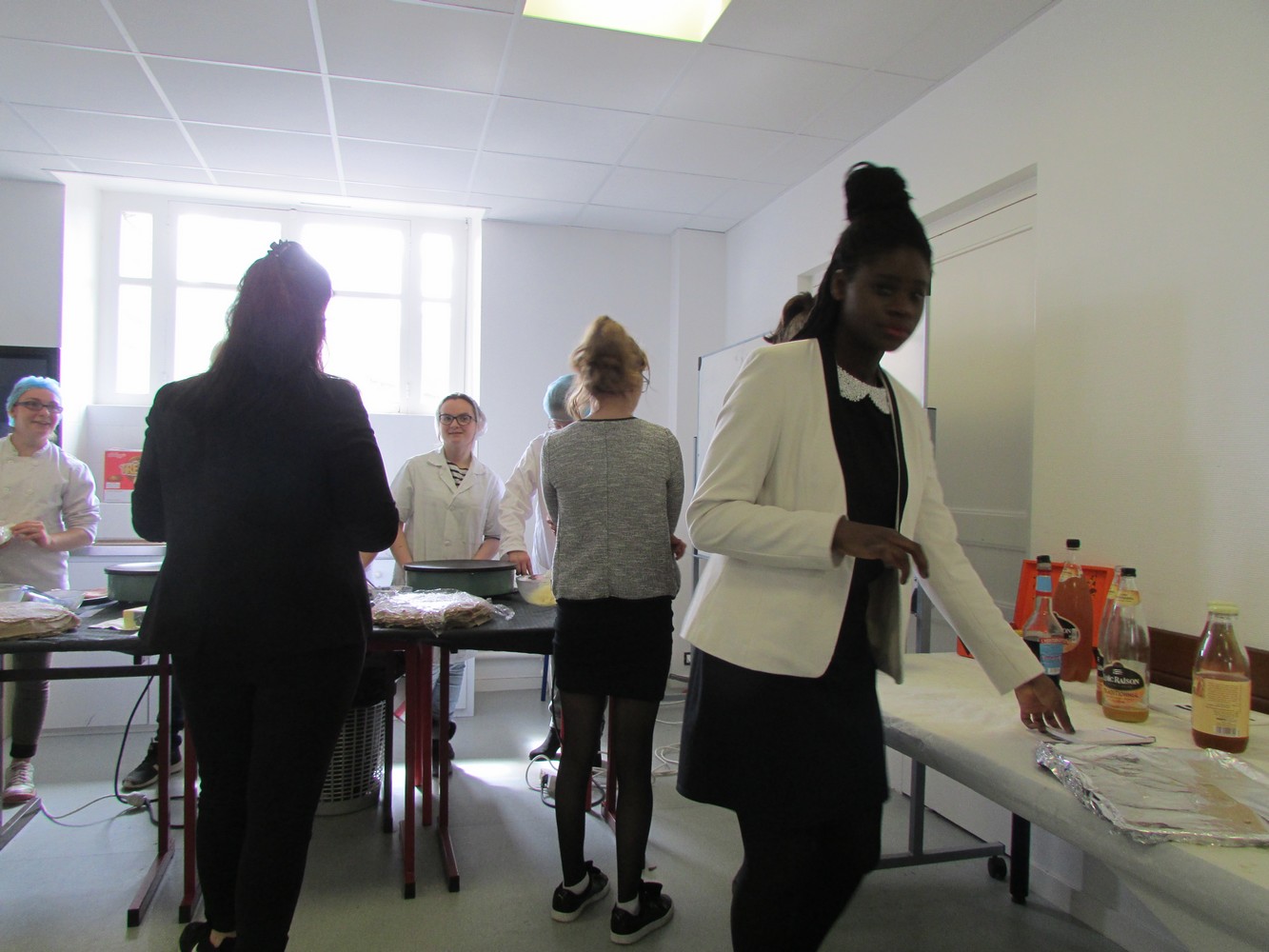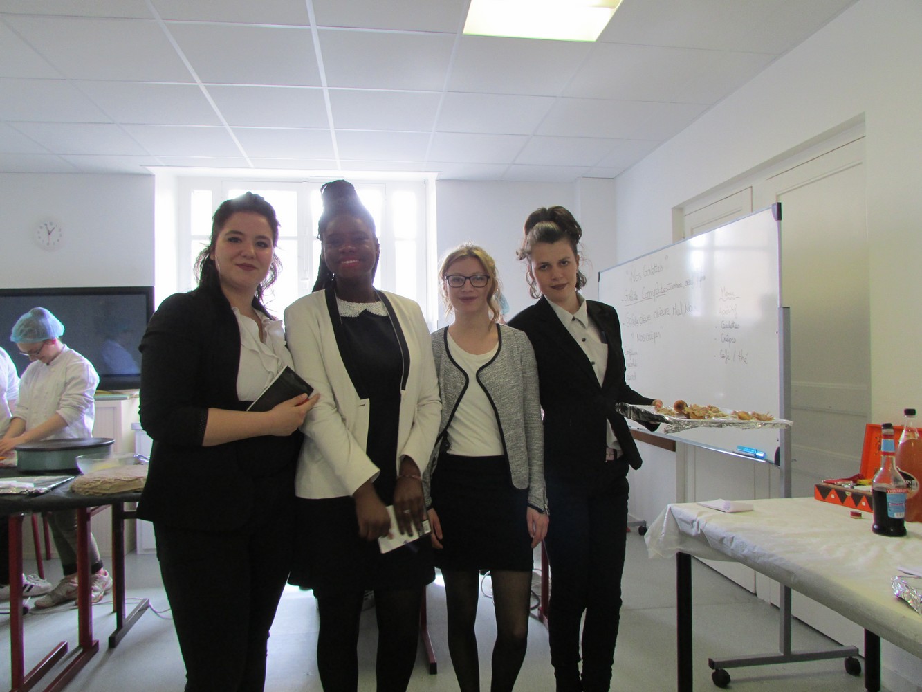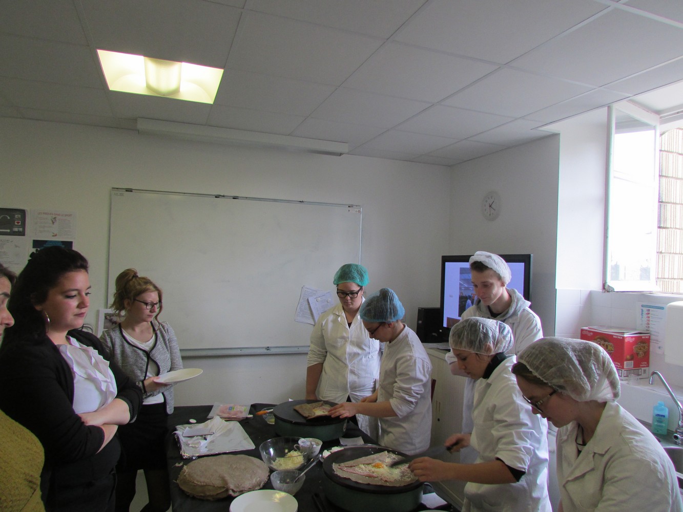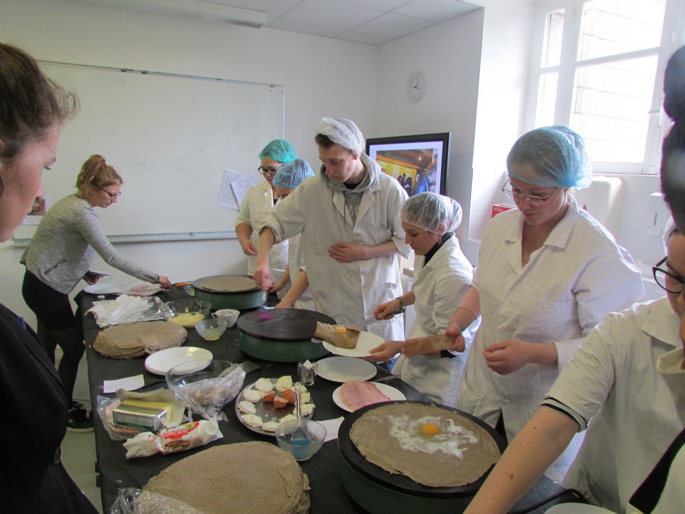Les élèves de Terminale CAPa SAPVER (Services Aux Personnes et Vente en Espace Rural) du site Dominique Savio, dans le cadre de leur formation en MIP (Module d’initiative professionnelle) « la crêpe, notre patrimoine gastronomique », ont mis en pratique leur savoir acquis cette année par un stage d’une semaine en crêperie, la première semaine d’avril. Ensuite, les élèves ont été évalués par une épreuve certificative comptant pour leur examen final lors de la mise en place d’un repas pour le Conseil d’Administration de l’ensemble Scolaire les Cordeliers le 16 avril 2018. Les convives semblent avoir appréciés ce repas breton par leurs remarques à l’oral ou sur le livre d’or. Les élèves ont été évalués sur leur prestation en fonction de leur poste : Préparation en cuisine, préparation de la salle et de la décoration, la garniture finale des galettes et crêpes, le rangement. La journée s'est clôturée par un oral individuel afin d'établir un bilan de leurs activités.