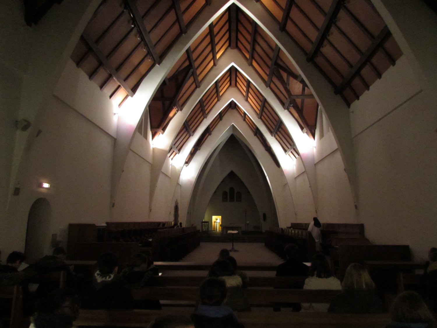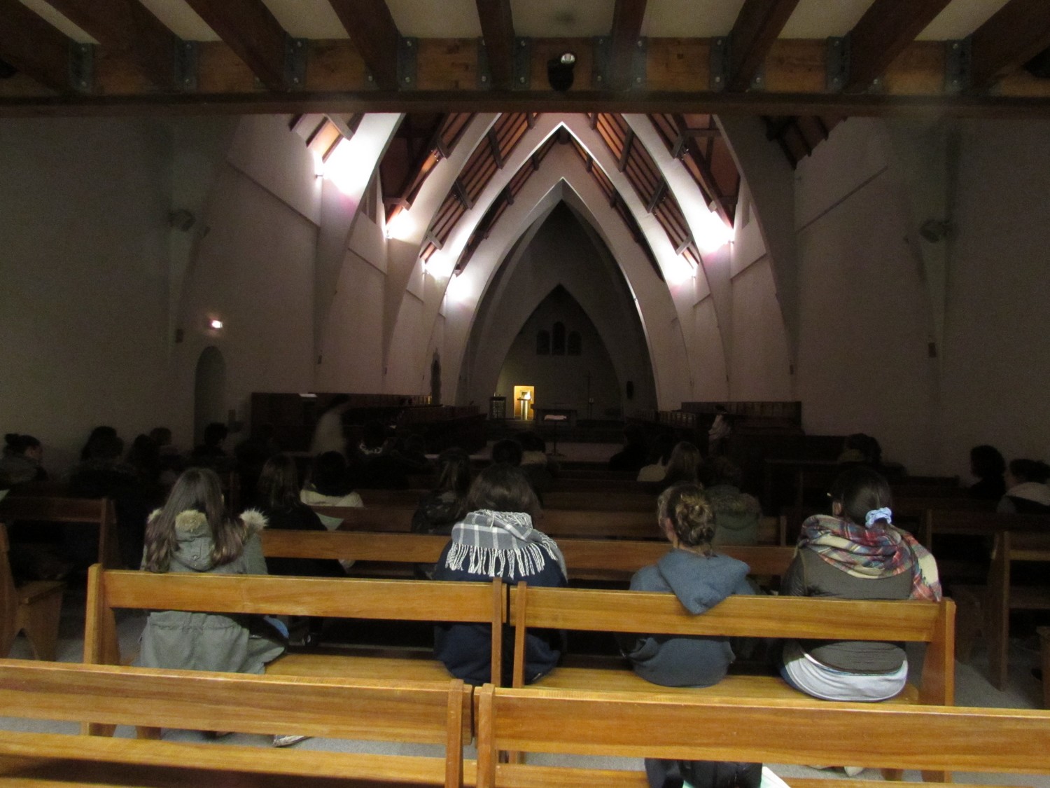 Puis en fin d’après-midi, emmitouflés dans nos manteaux et les bottes aux pieds, nous sommes allés arpenter les chemins qui traversent la forêt de Brocéliande. Dans la soirée, sur invitation des sœurs, nous avons assisté aux complies à la chapelle : temps de prière pour les uns ou temps de relecture de la journée pour les autres, simplement bercé par le chant des sœurs.