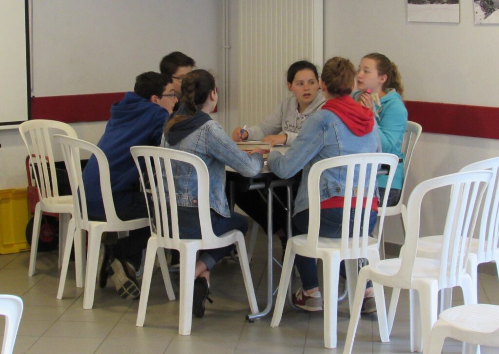 Une fois les sacs posés, le thème était lancé : « Super-héros, une vie qui engage » ! Ainsi à partir des héros bien connus de leur univers (Batman, Capitaine America, Black Widow … ), ils ont pu réfléchir aux vocations de ces différents personnages : RENONCEMENT – ENGAGEMENT – RESPONSABILITE – CA LUI TOMBE DESSUS. Par le biais de jeux, par l’échange en petits groupes, mais aussi par de courtes vidéos sur des jeunes engagés dans notre société, ils ont pu réfléchir à l’engagement de leur propre vie maintenant et future.
