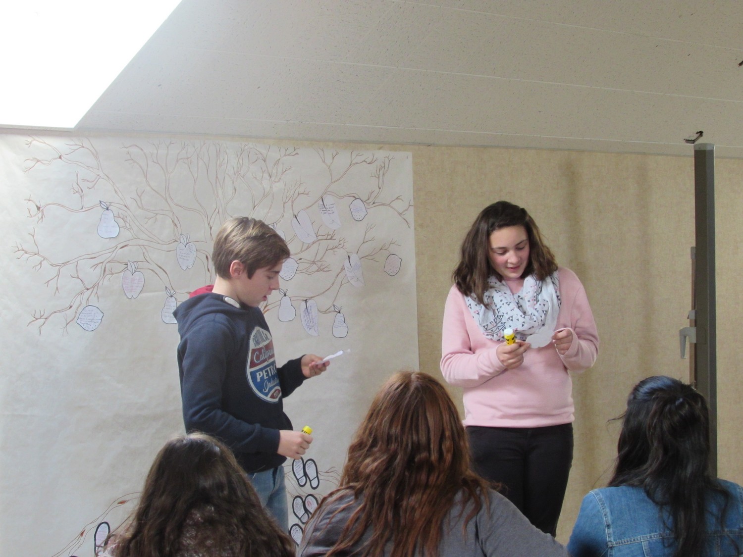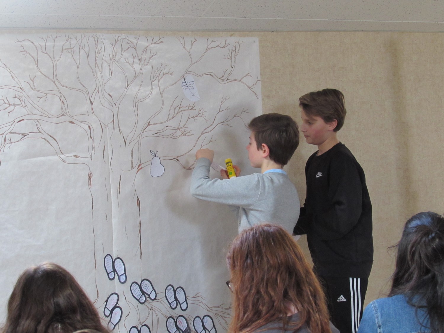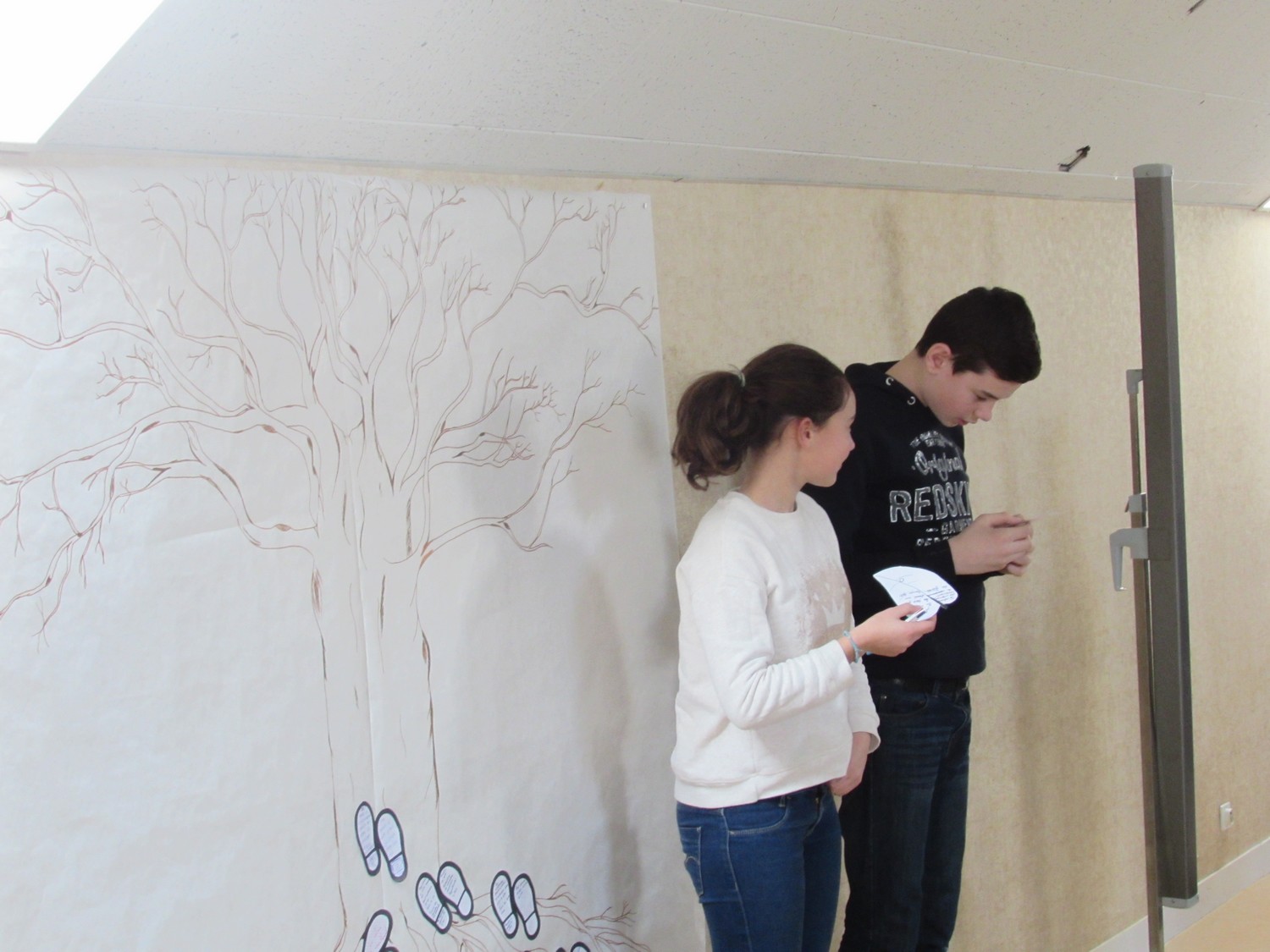 Ils ont réfléchi dans un premier temps en petits groupes sur leur vie de collégien, leurs attentes et espoirs, mais aussi sur la responsabilité face à l'autre, dans leur vie de tous les jours.