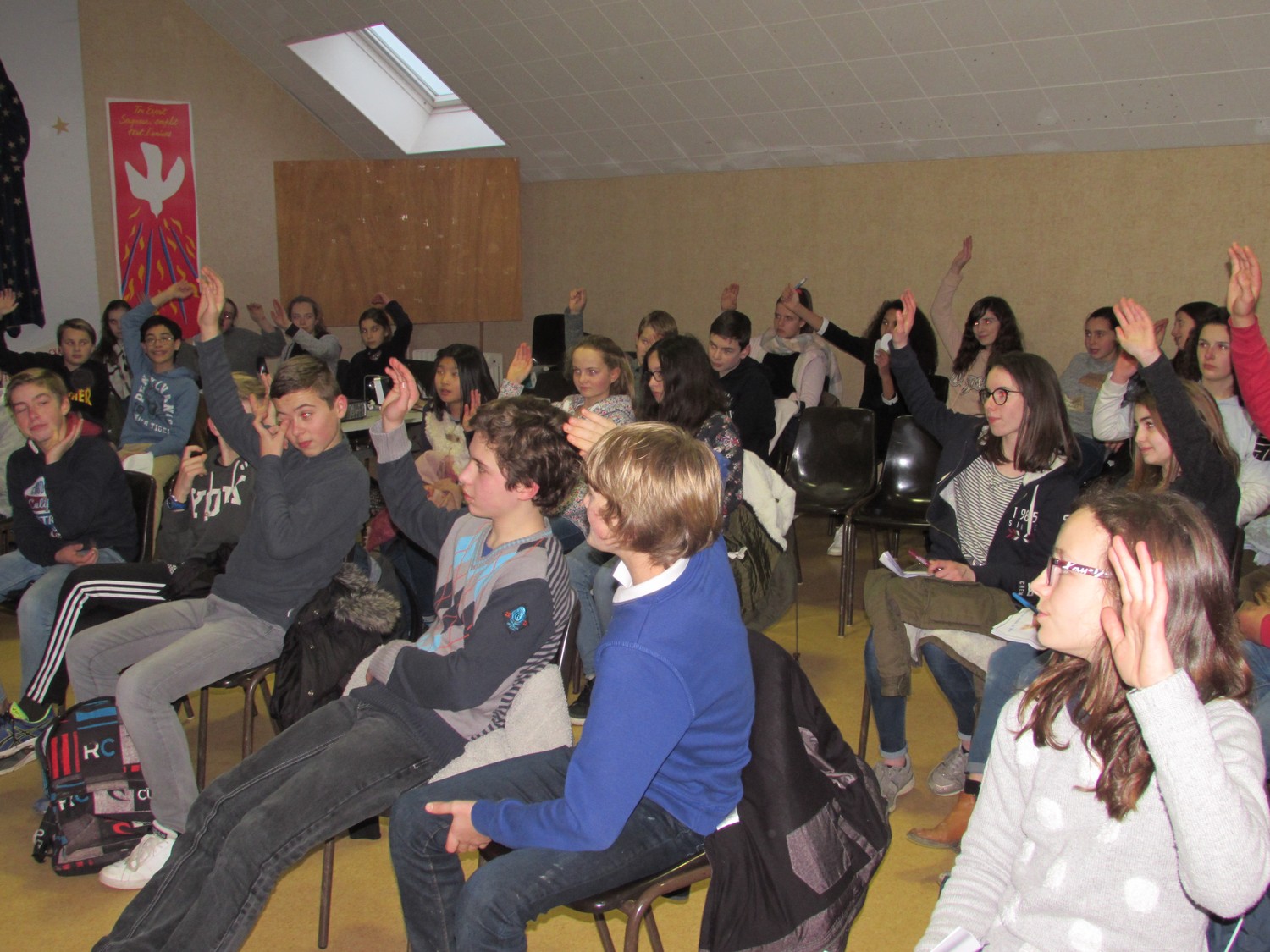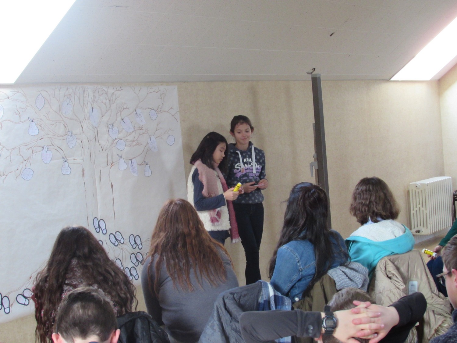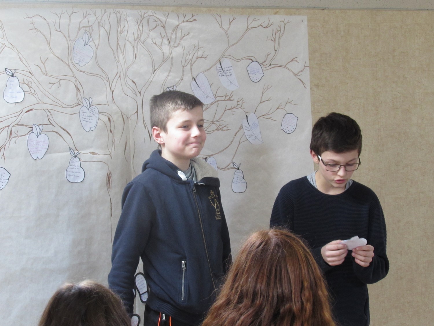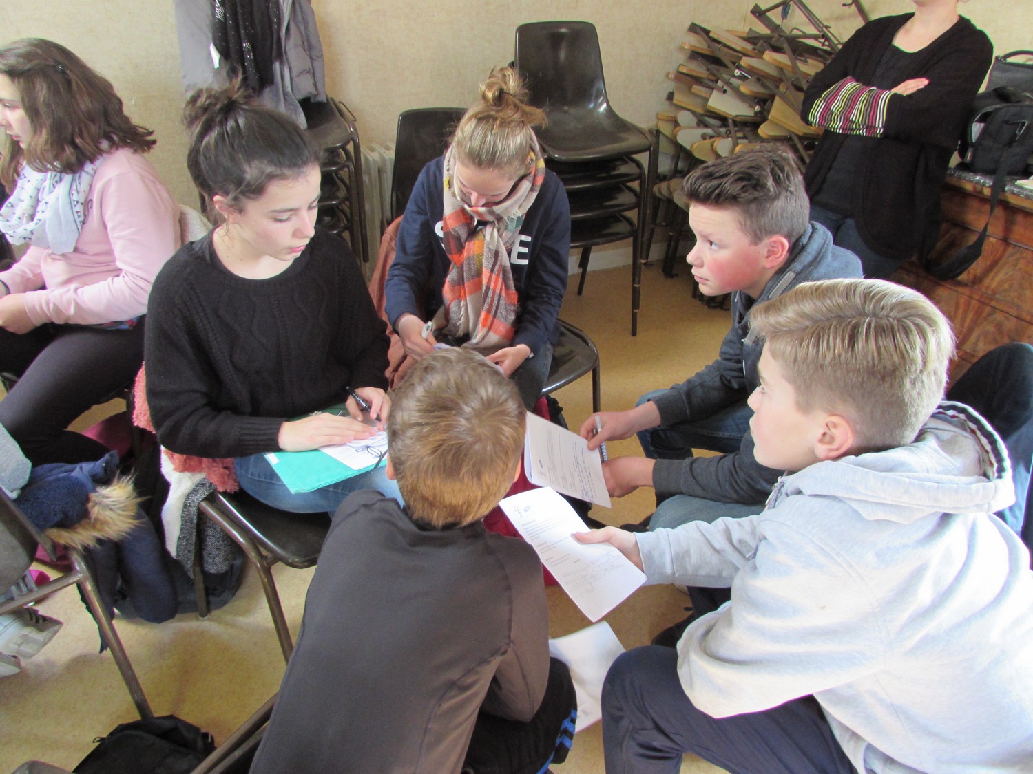Ils ont réfléchi dans un premier temps en petits groupes sur leur vie de collégien, leurs attentes et espoirs, mais aussi sur la responsabilité face à l'autre, dans leur vie de tous les jours.