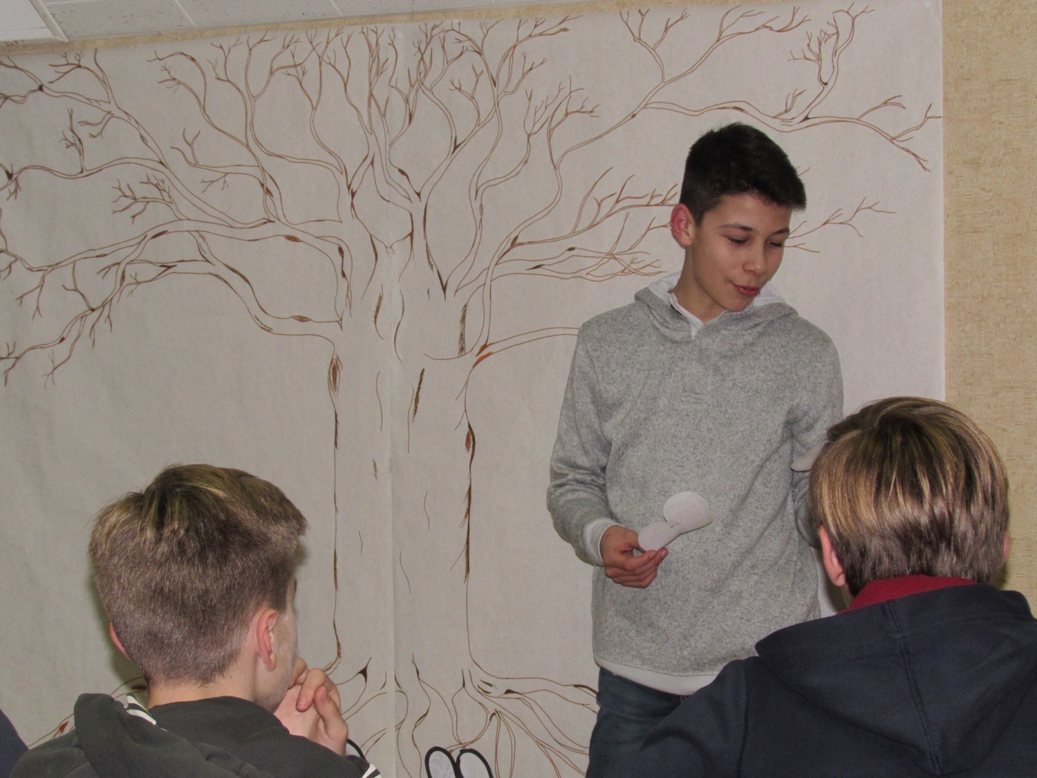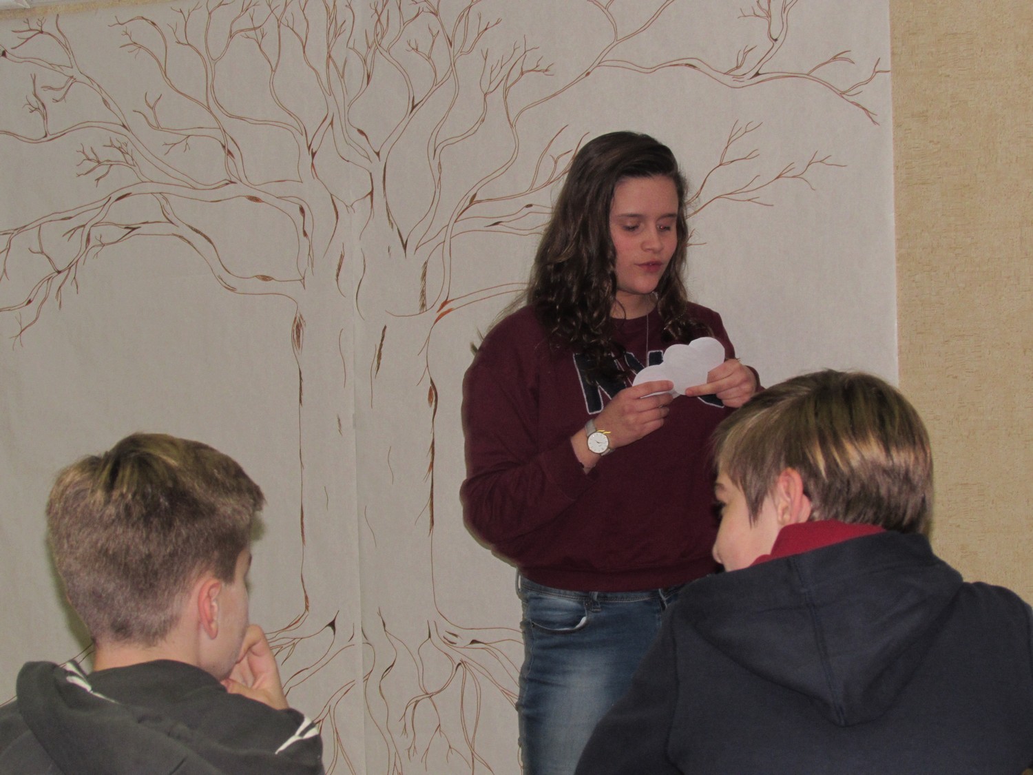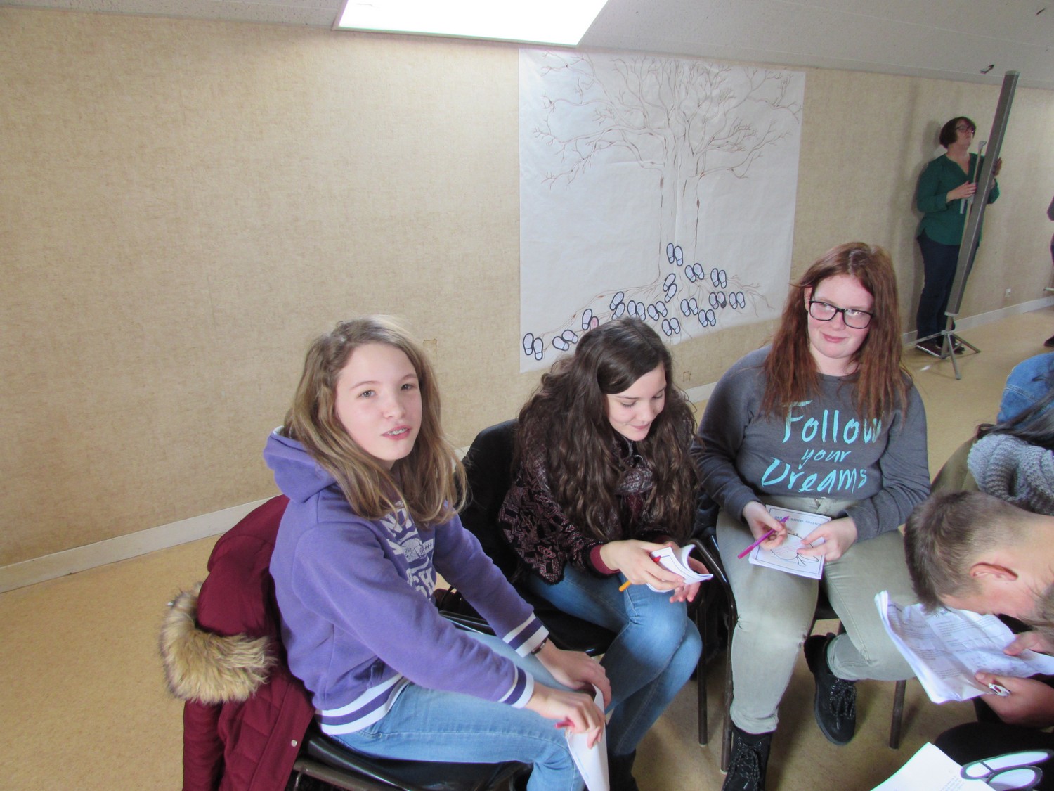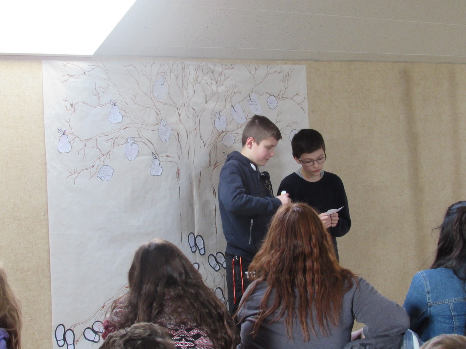 Le dernier moment de la journée fut consacré à la relecture en petits groupes et ensuite tous ensemble, ils ont partagé ce qu'ils ont vécu pendant ce temps fort, et ce qu'ils souhaitent par la suite, symbolisé par les fruits sur l'arbre.