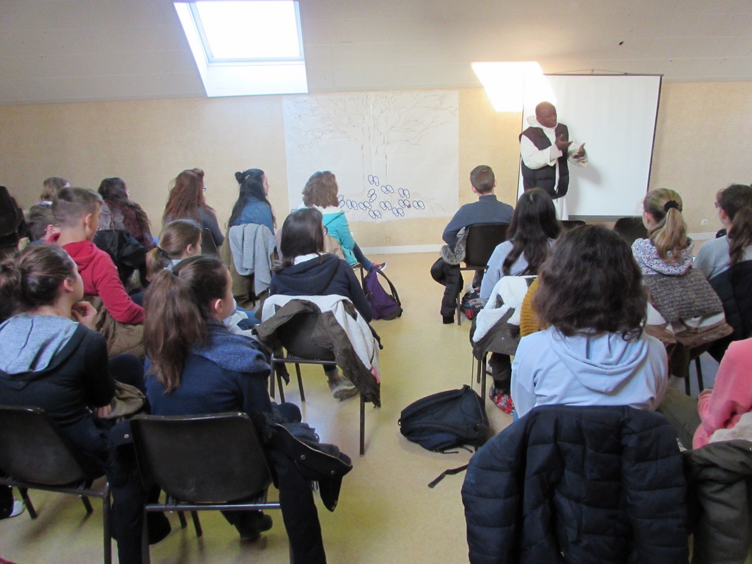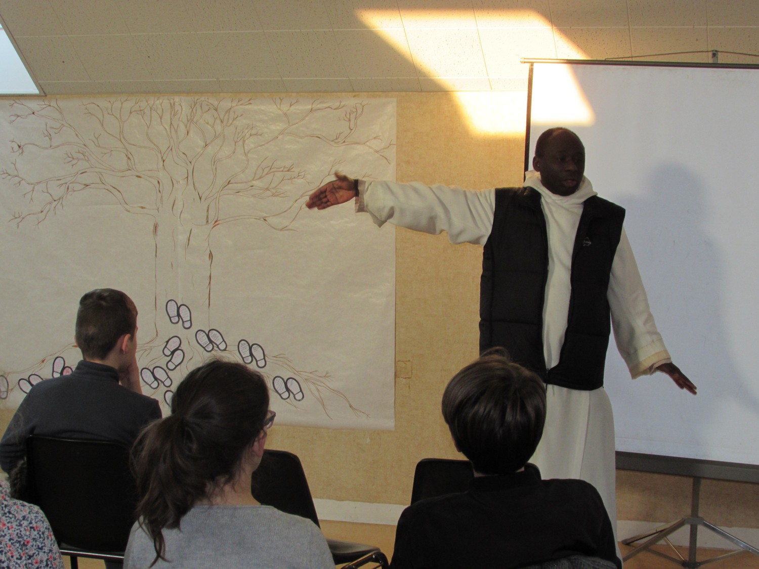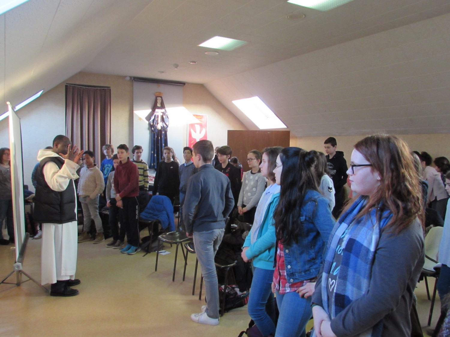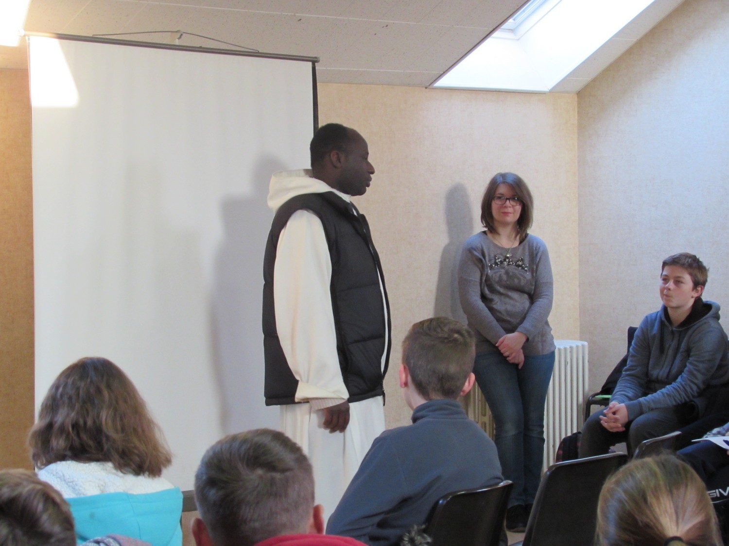 Le deuxième jour nous avons rencontré Frère Omer originaire de côte d'ivoire, il évoqua sa vie, ses coutumes, sa culture. Les élèves, très intéressés lui ont posé beaucoup de questions sur sa vie en communauté. Frère Omer a terminé en faisant chanter et danser tout le groupe, au plus grand plaisir de chacun.