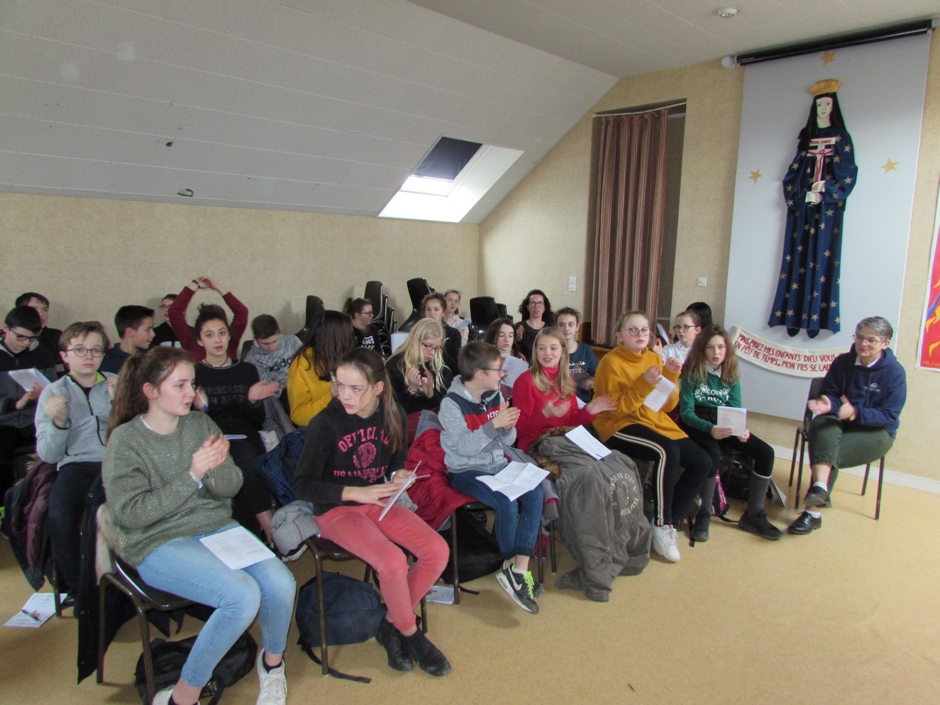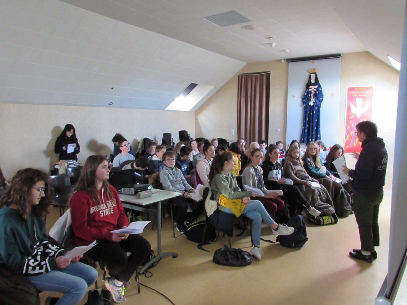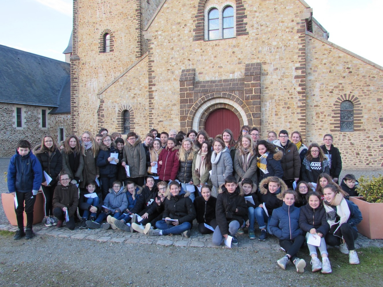 Les mercredi 23 et jeudi 24 janvier, c'est sous un beau soleil que cinquante-trois élèves volontaires de 5ème sont partis en temps fort à l'abbaye Le Prieuré la Cotellerie de Bazougers sur le thème "Entrer dans la Vie".