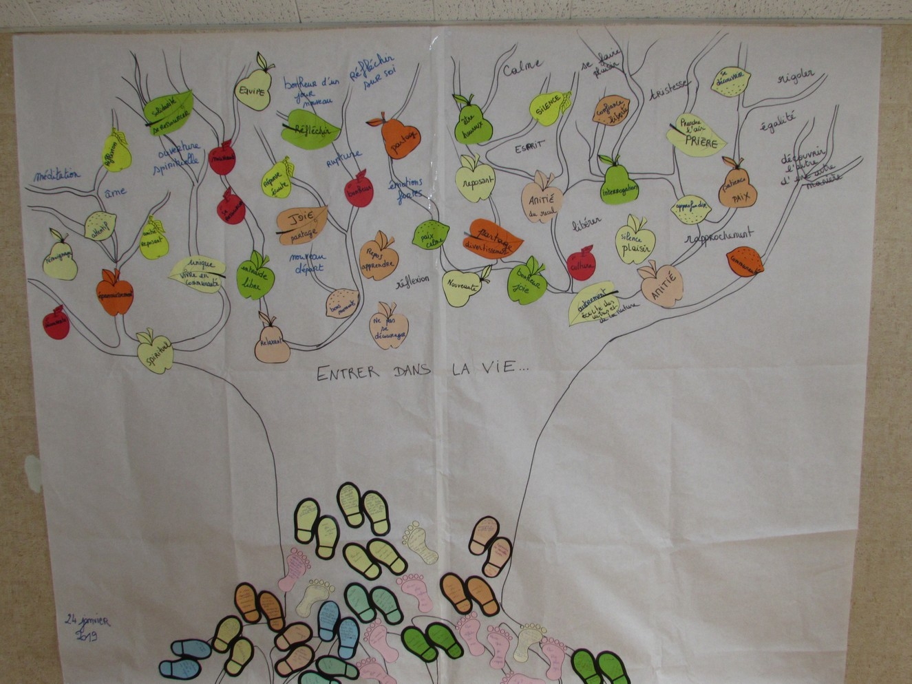 Après avoir assisté à la messe et partagé un dernier repas, il a été temps de récolter les réflexions qui ont fructifiées durant ces deux journées. L'arbre s'est ainsi étoffé de ses fruits.