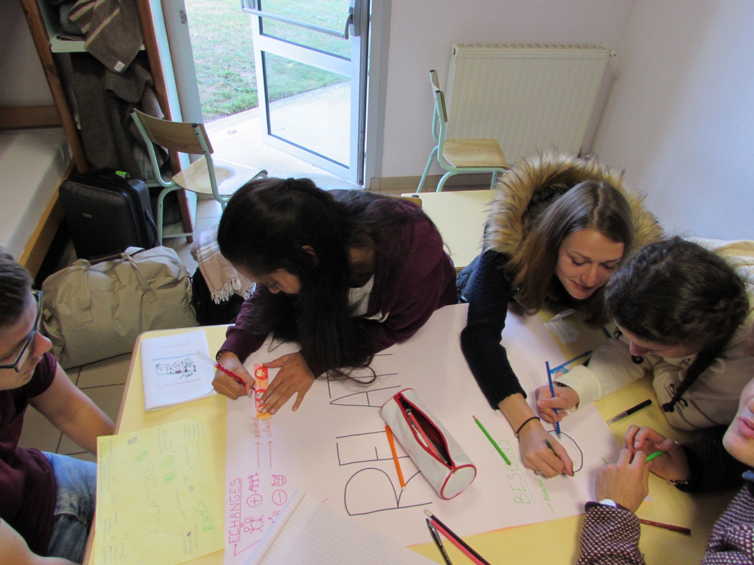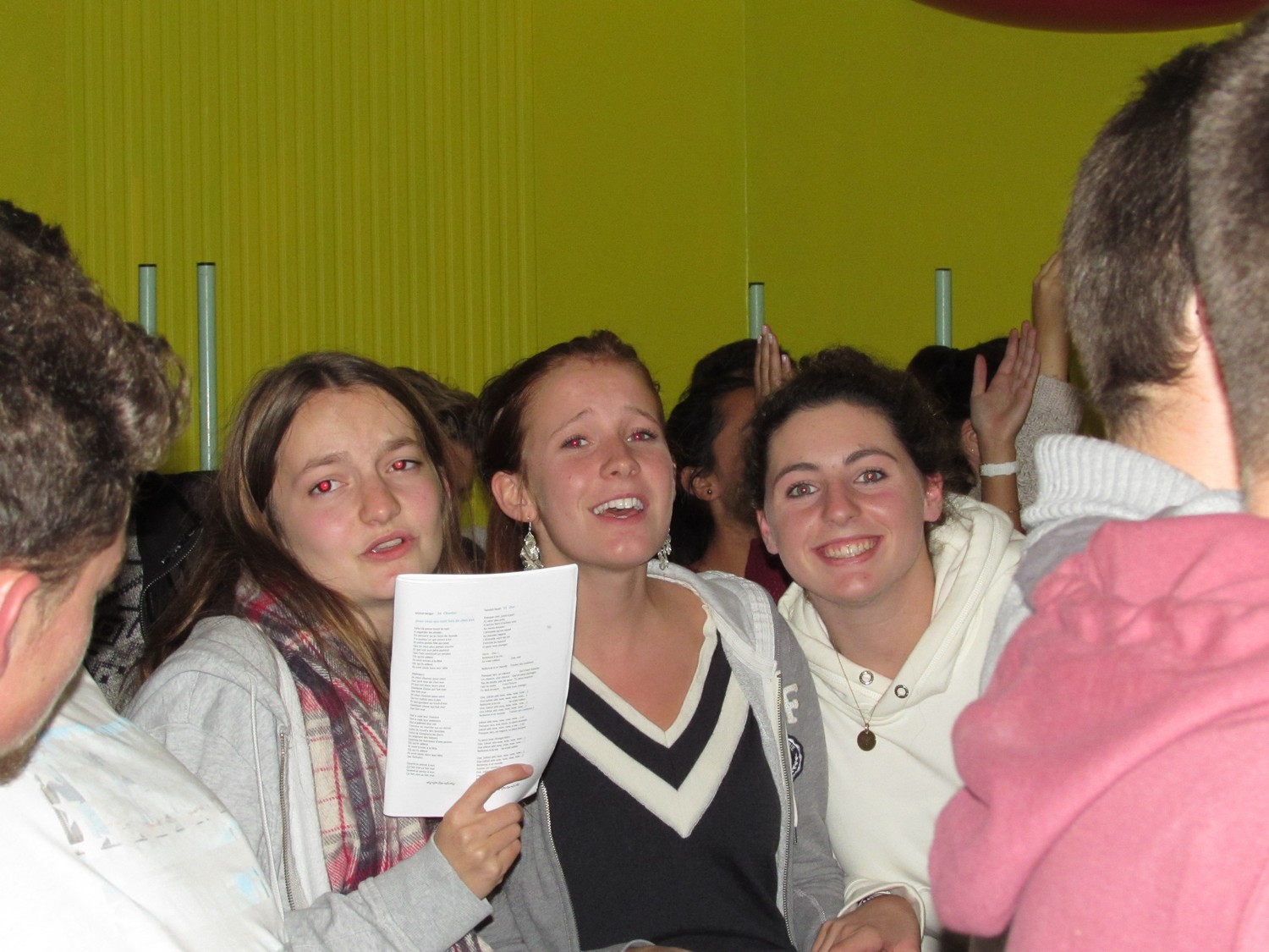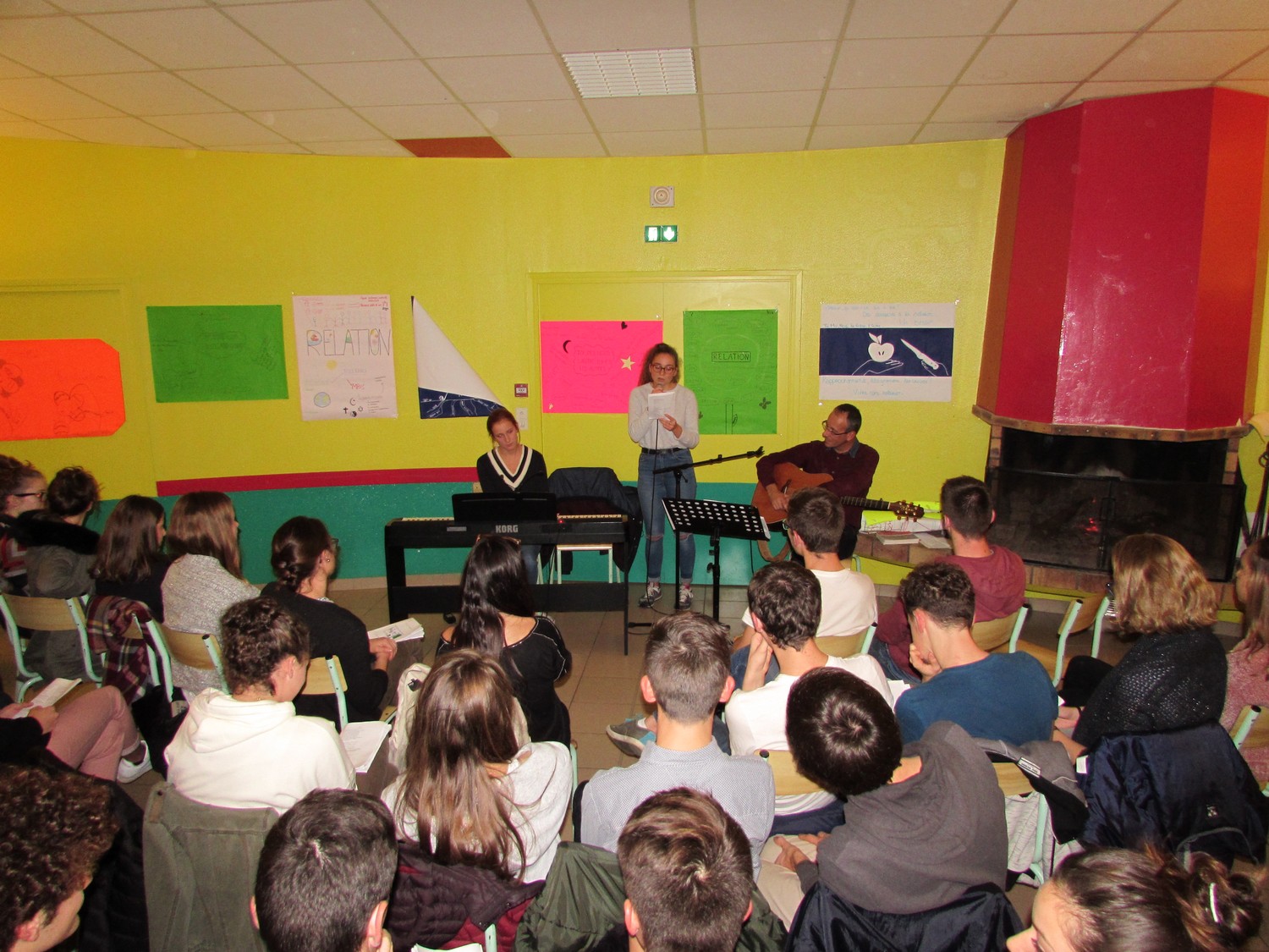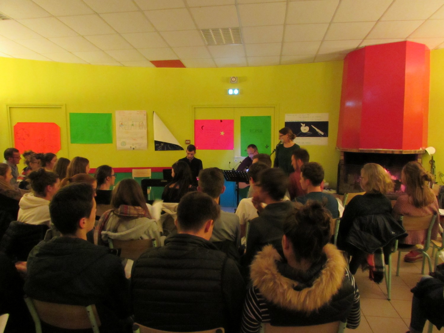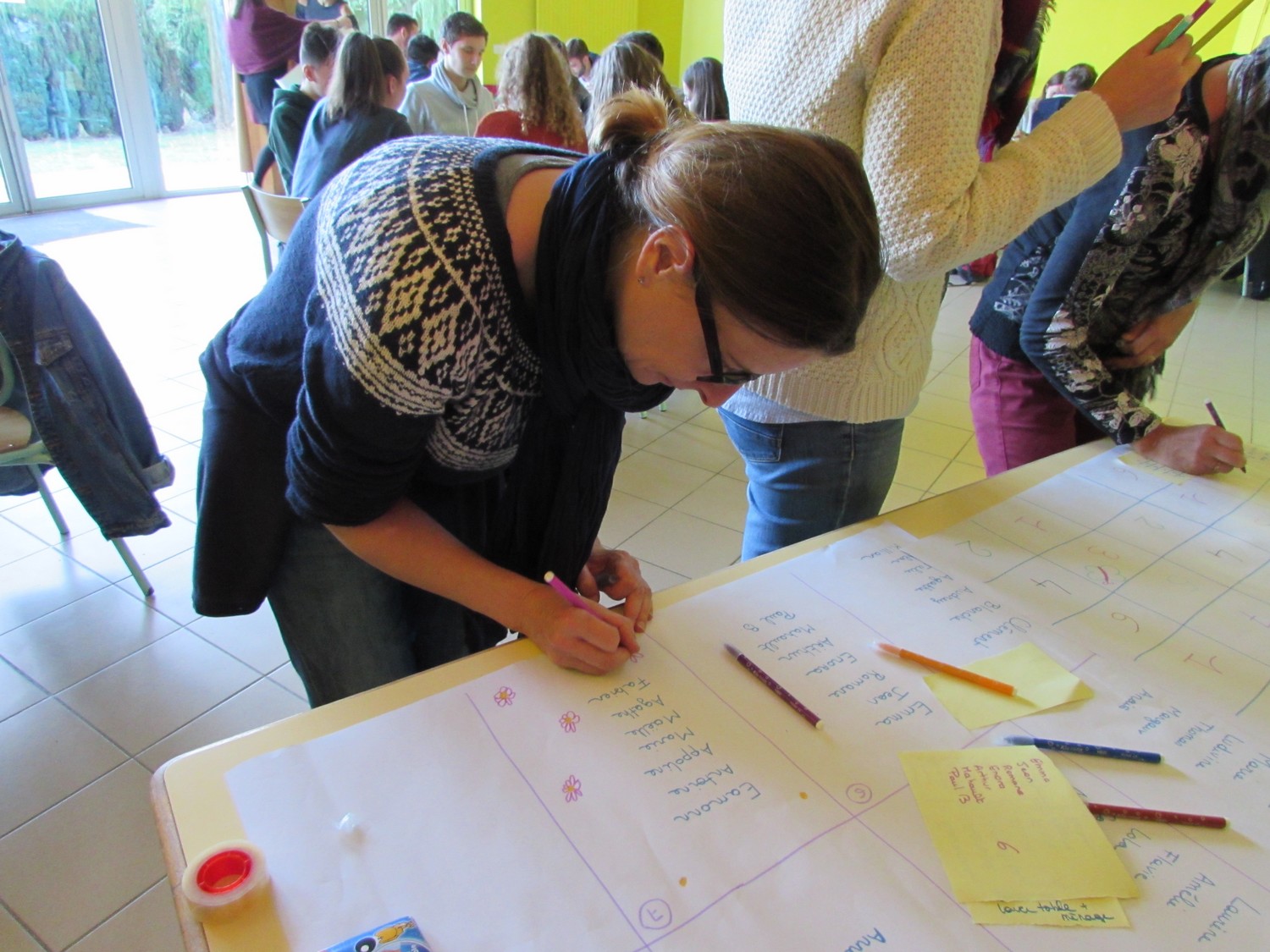 Les élèves ont réfléchi sur ce thème : « vivre les relations ». Ils étaient par équipe de 6 et ont ainsi élaboré un panneau. Suite au repas, à 19h30, ils ont pu assister aux complies des moines de Timadeuc. Impressionnant et impressionnés, les élèves se sont installés les uns après les autres au fond de l'église, en silence. Quant aux moines, ils sont arrivés dans le noir dans une ambiance « monacale ». Les chants retentissaient de manière profonde avec une puissance des mots qui l'était tout autant.