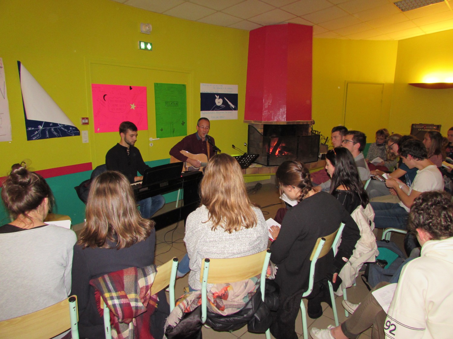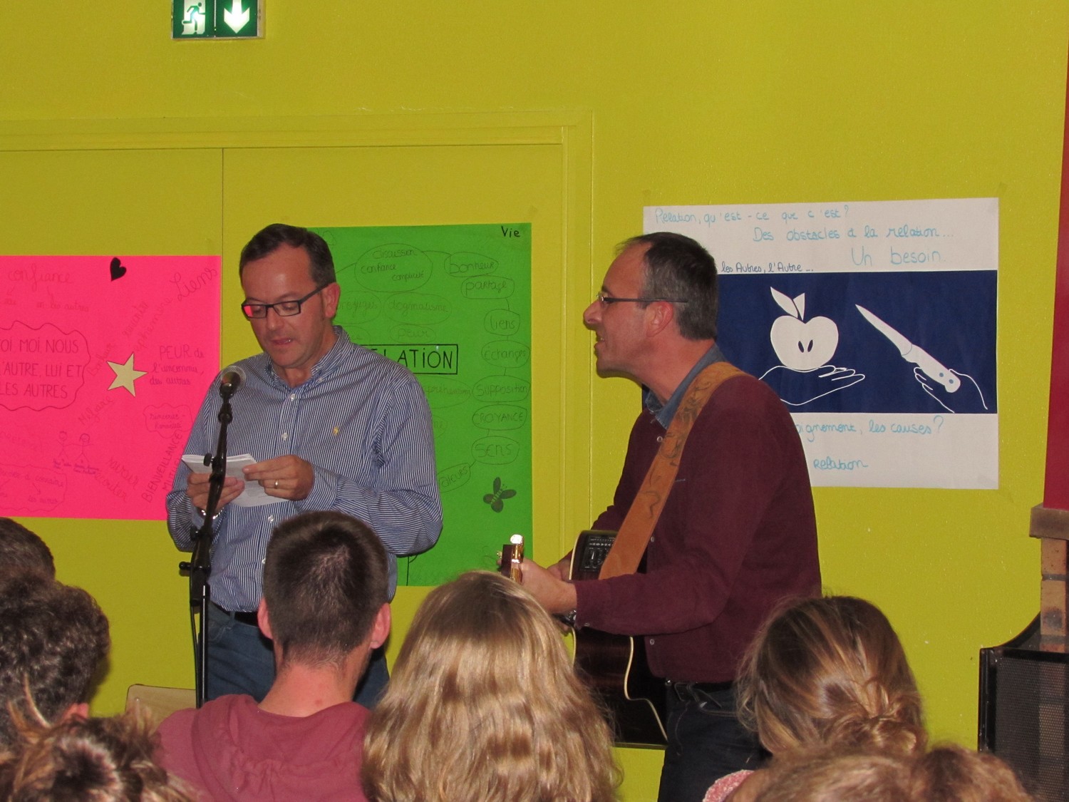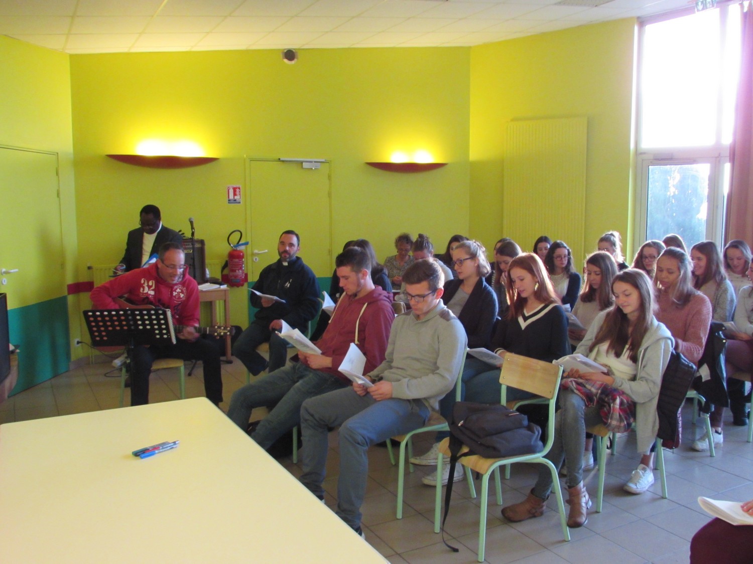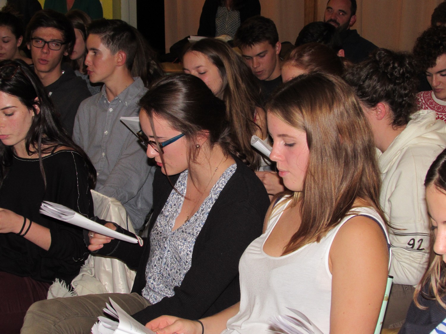Les élèves ont présenté en fin de soirée les panneaux propres à chaque équipe récapitulant leurs idées. Les messages étaient forts, les expressions très différentes mais chaque groupe avait déjà trouvé sa propre identité. François les a interrogé sur le sens des mots choisis par chaque groupe, les idées véhiculées, le « sens » propre à chacun, le « pourquoi » de tel ou tel mot... Le Père Jean est quant à lui intervenu en reprenant le sens de la vie, de leur vie, le sens de la prière, de l'engagement, de la jeunesse...