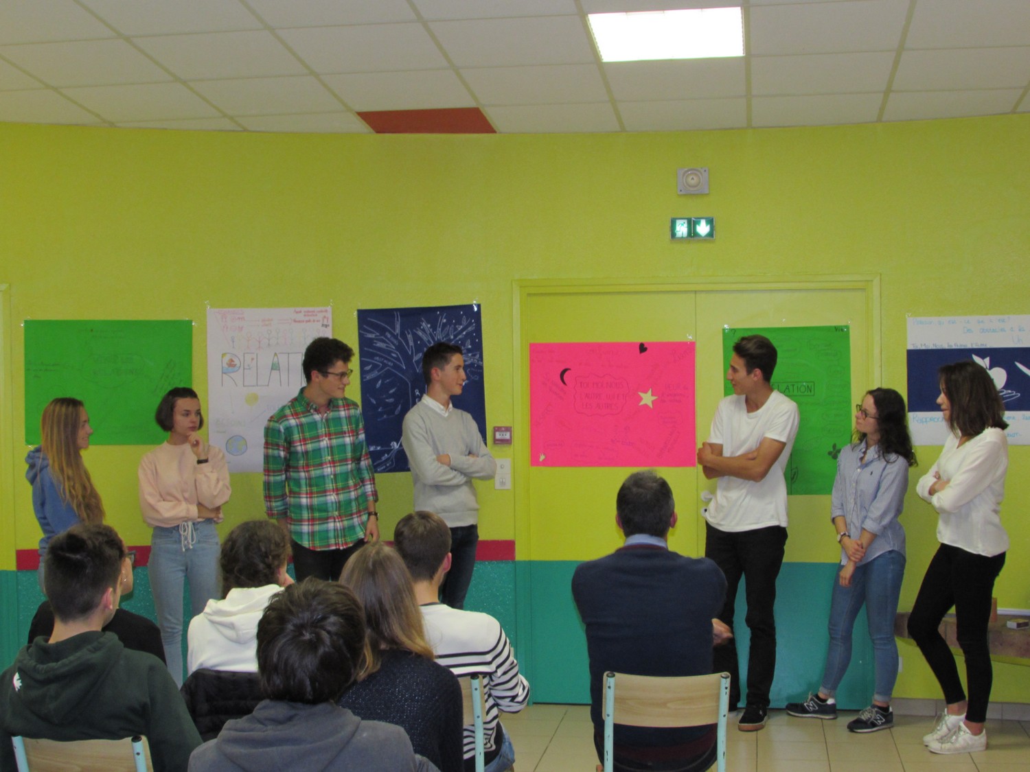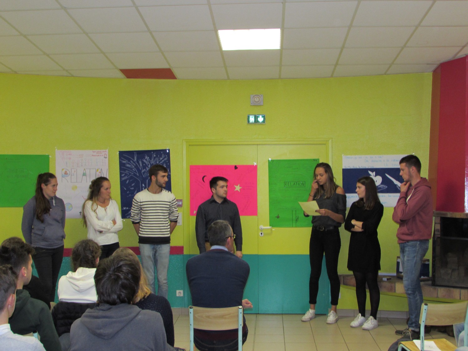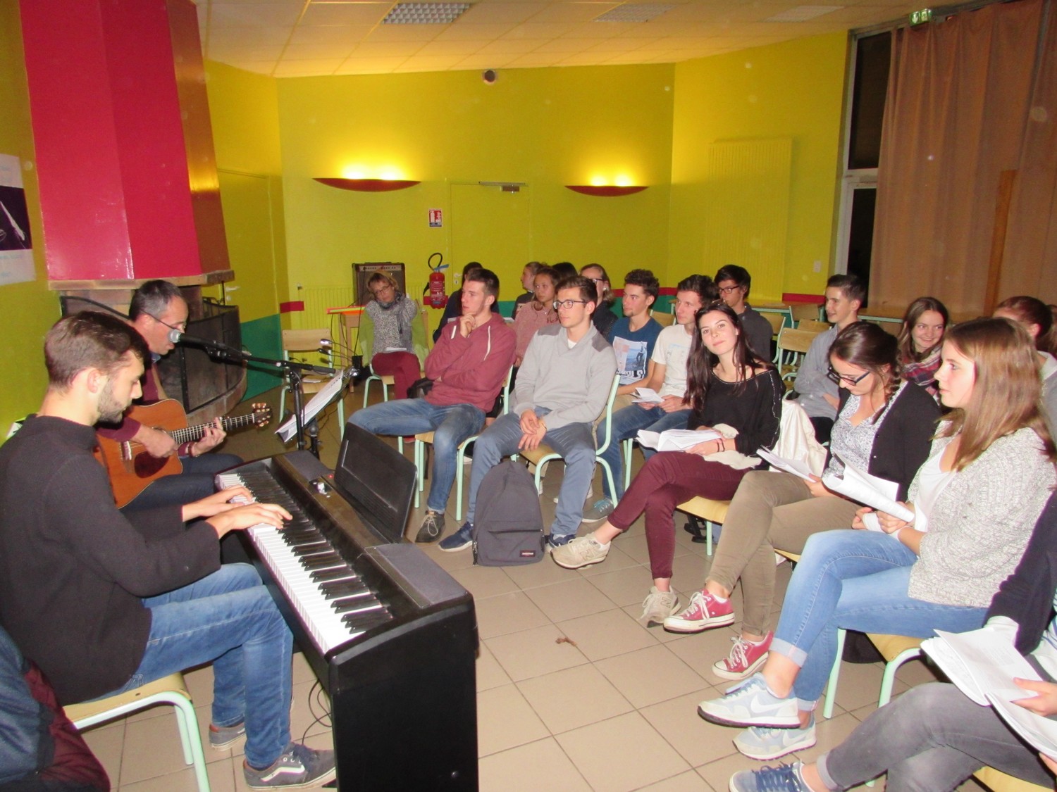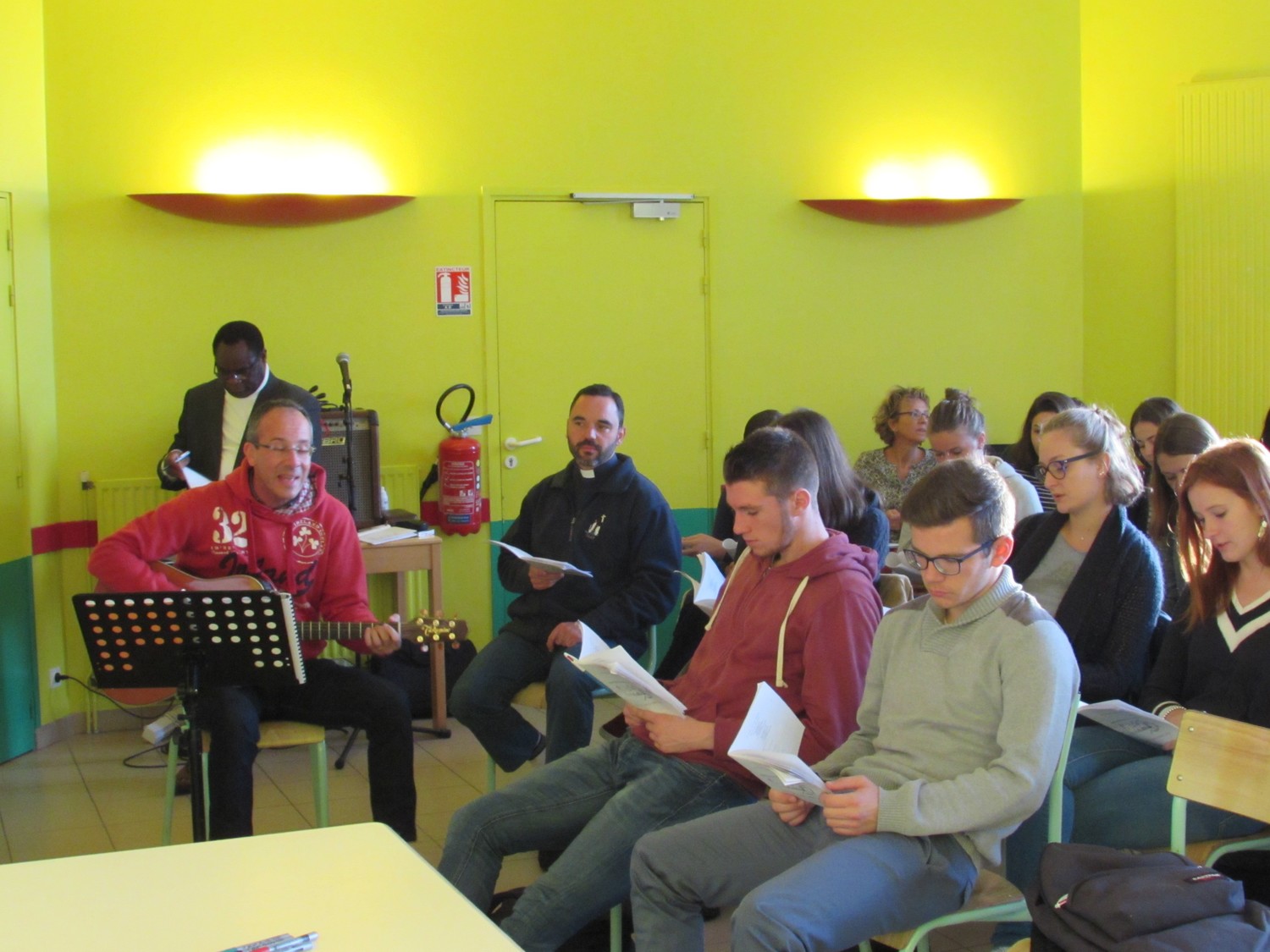 Les élèves ont présenté en fin de soirée les panneaux propres à chaque équipe récapitulant leurs idées. Les messages étaient forts, les expressions très différentes mais chaque groupe avait déjà trouvé sa propre identité. François les a interrogé sur le sens des mots choisis par chaque groupe, les idées véhiculées, le « sens » propre à chacun, le « pourquoi » de tel ou tel mot... Le Père Jean est quant à lui intervenu en reprenant le sens de la vie, de leur vie, le sens de la prière, de l'engagement, de la jeunesse...