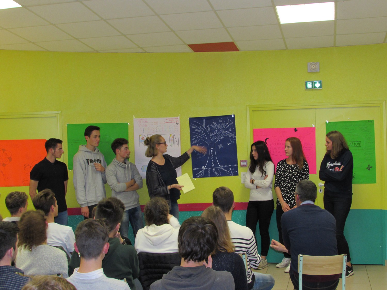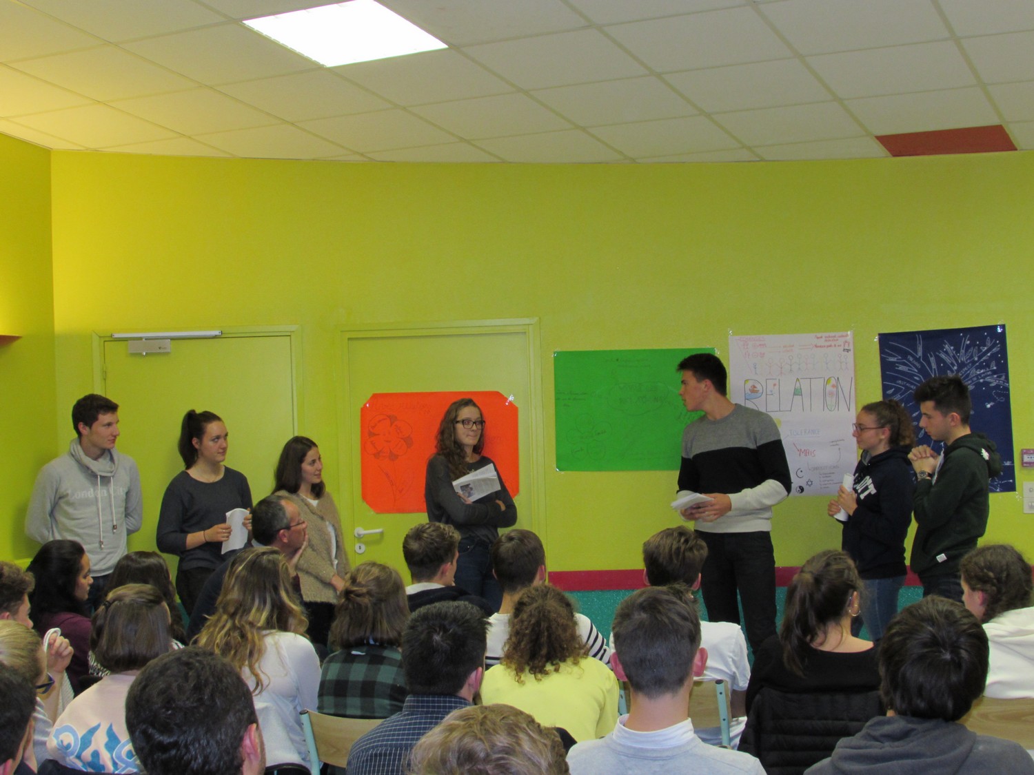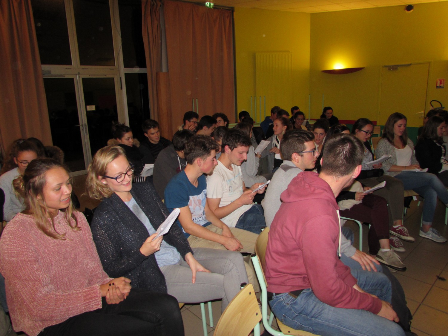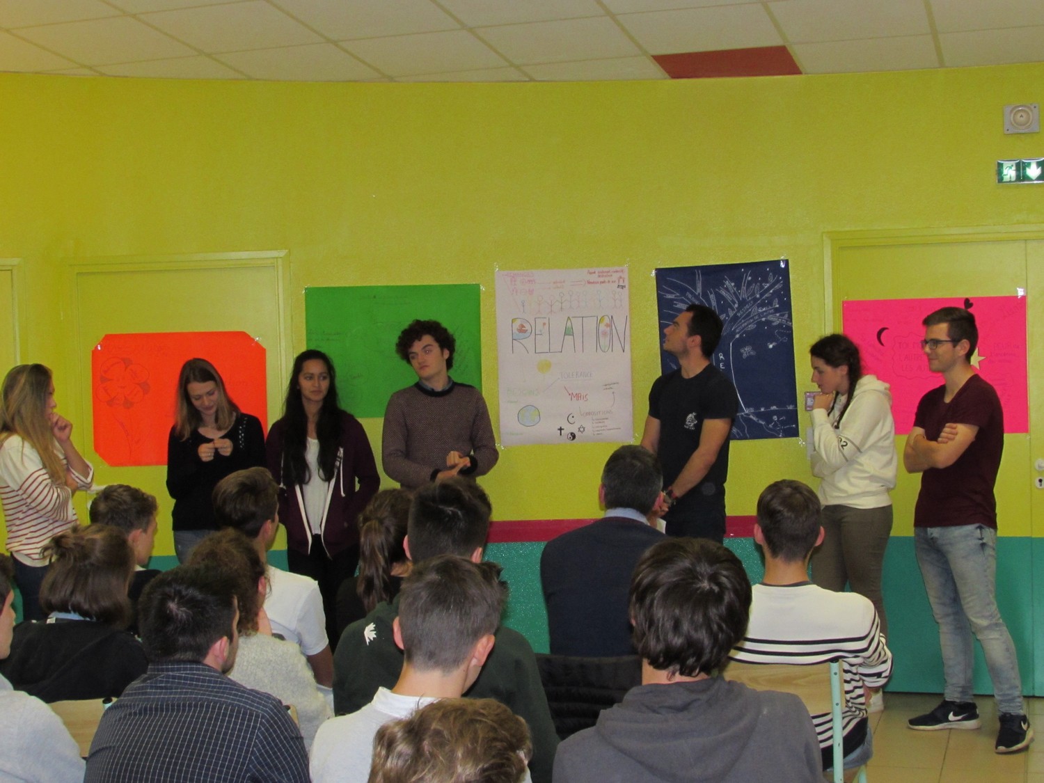 Les élèves ont présenté en fin de soirée les panneaux propres à chaque équipe récapitulant leurs idées. Les messages étaient forts, les expressions très différentes mais chaque groupe avait déjà trouvé sa propre identité. François les a interrogé sur le sens des mots choisis par chaque groupe, les idées véhiculées, le « sens » propre à chacun, le « pourquoi » de tel ou tel mot... Le Père Jean est quant à lui intervenu en reprenant le sens de la vie, de leur vie, le sens de la prière, de l'engagement, de la jeunesse...