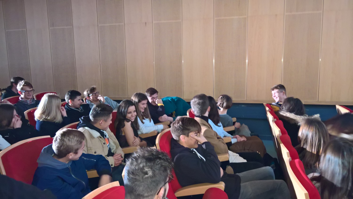 Le jeudi 30 novembre, les élèves de 1ères L/S/ES et STMG ont assisté à une pièce de théâtre en anglais aux Cordeliers. Cette année encore, la troupe Irlandaise Pickles company est venue pour jouer devant les élèves. Six élèves ont même pu se joindre aux acteurs et se produire sur scène. Nos lycéens ont apprécié la dimension interactive du spectacle proposé et en ont savouré également l’humour très britannique.