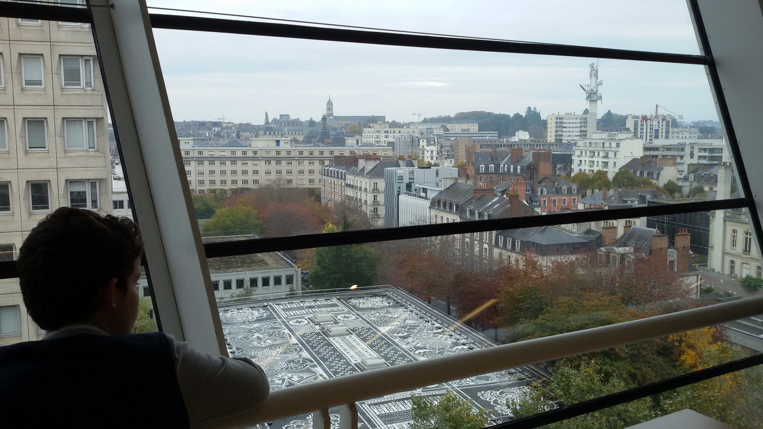 Pendant le temps du déjeuner, nous avons pique-niqué face aux Champs Libres. Nous avons eu le temps de monter au troisième étage découvrir « L'Armoire aux secrets » puis, au sixième étage, le musée des écrivains et des lettres dédié à Henri POLES. La vue sur la ville de Rennes était magnifique !